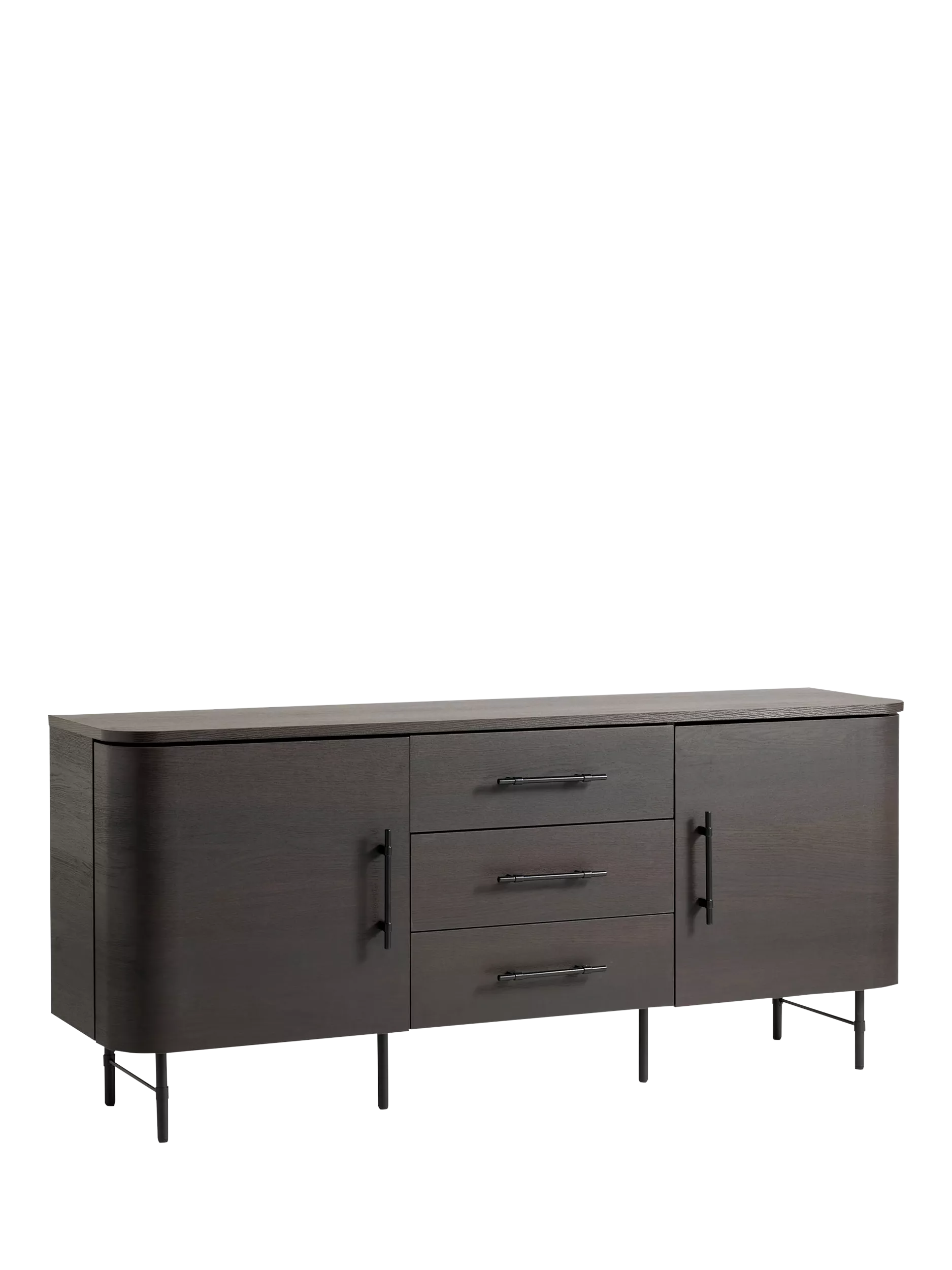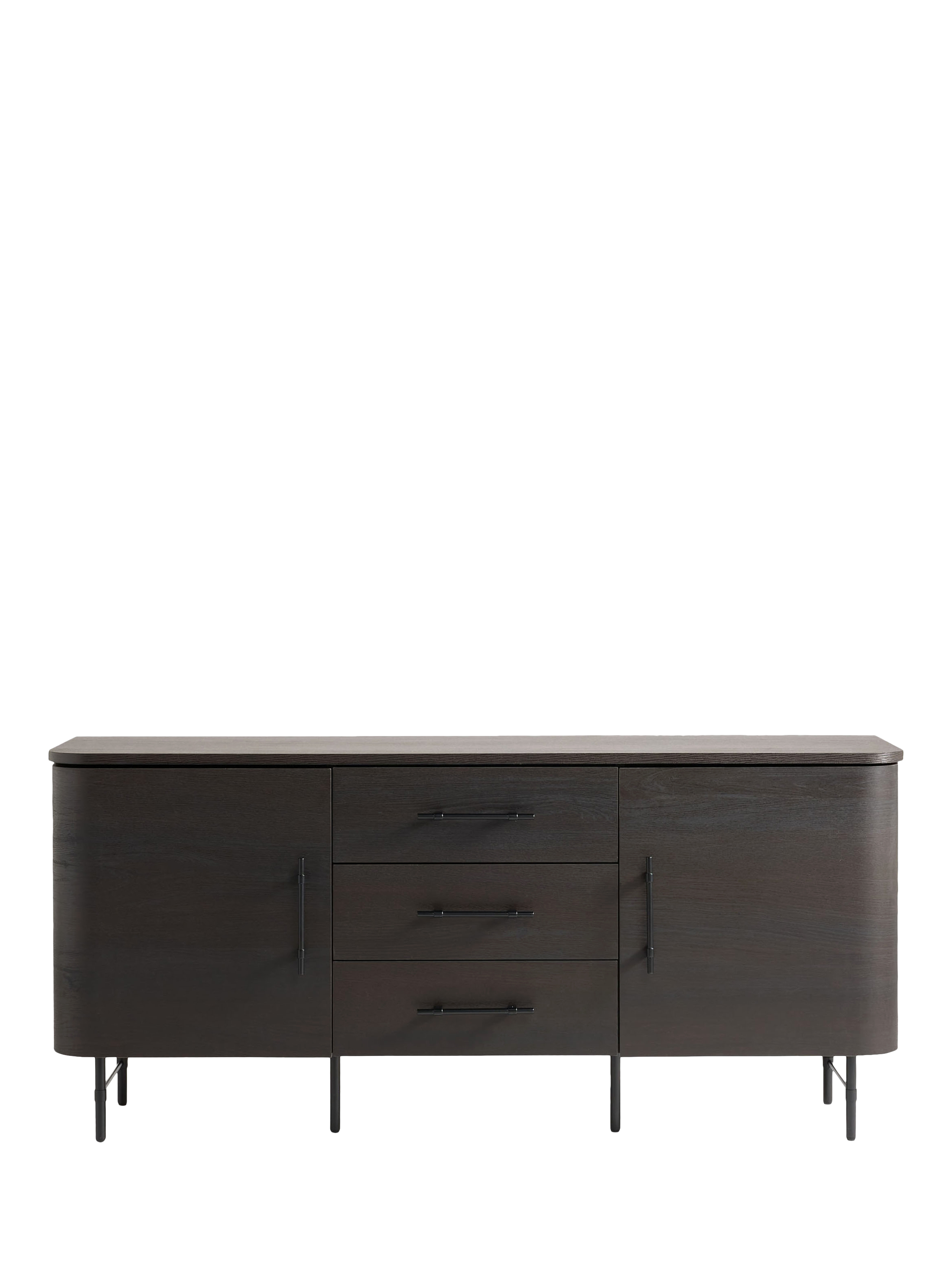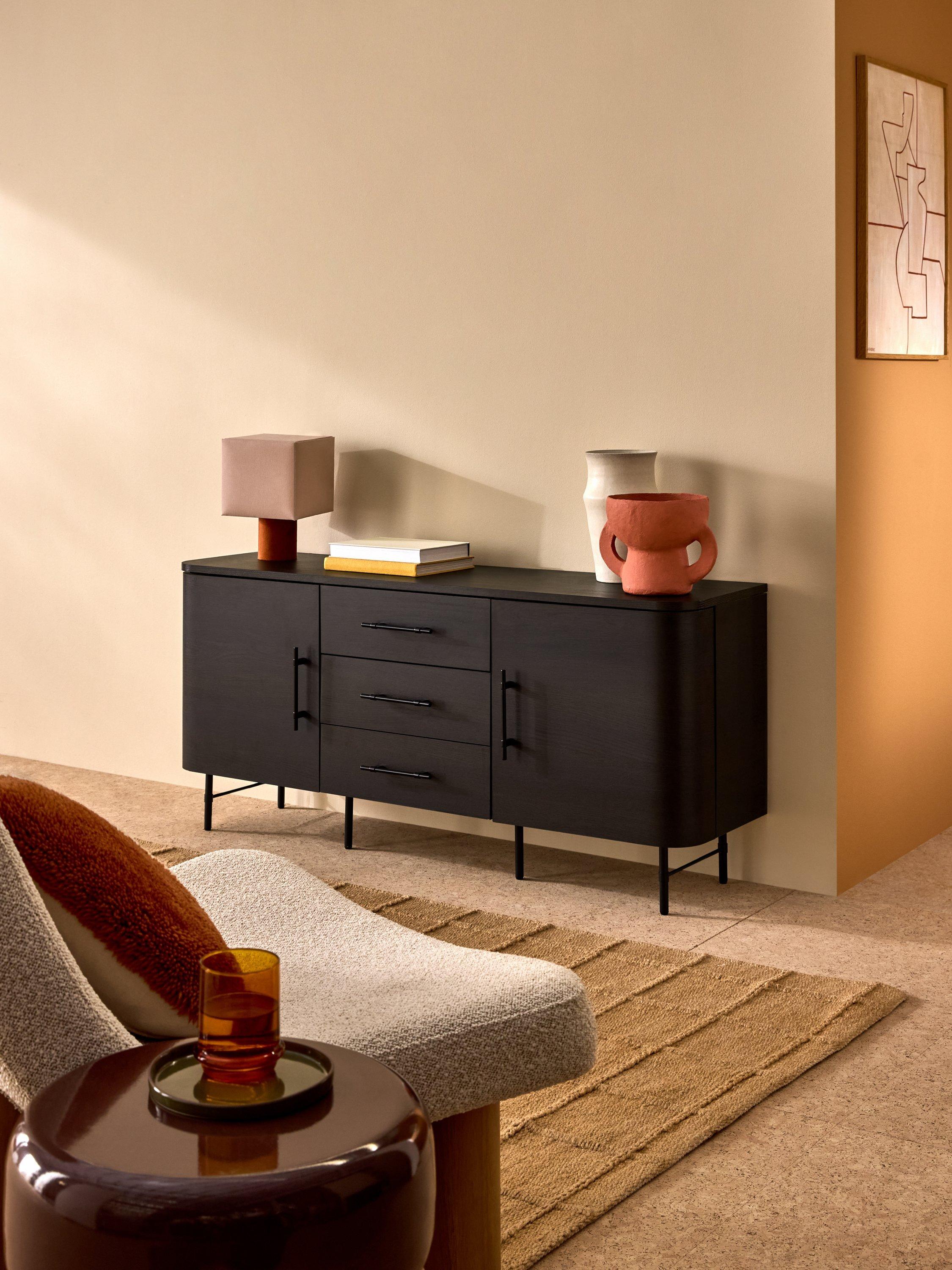 Clean lines, subtle curves and an oak finish nail this season's trends. This modern design features 3 drawers 2 doors sideboard in dark oak.