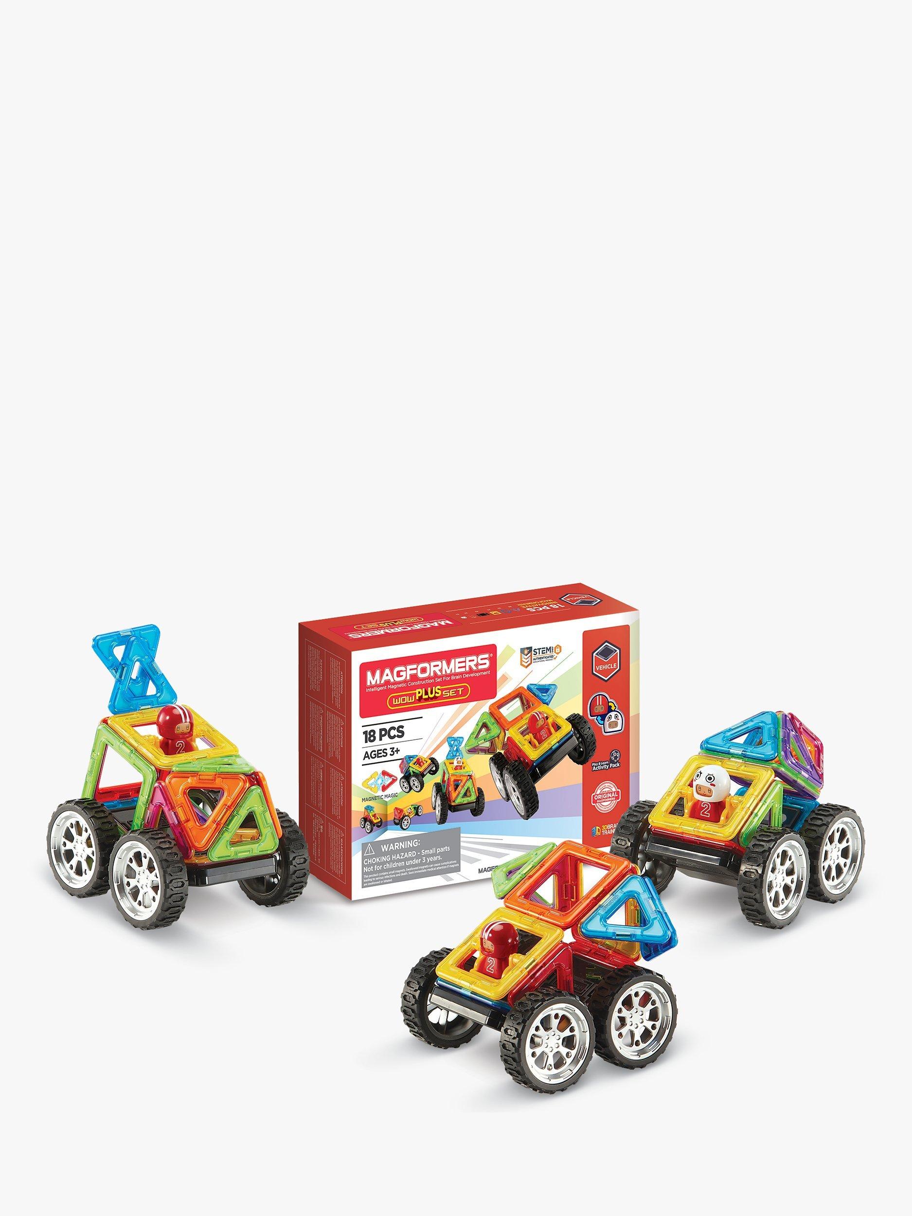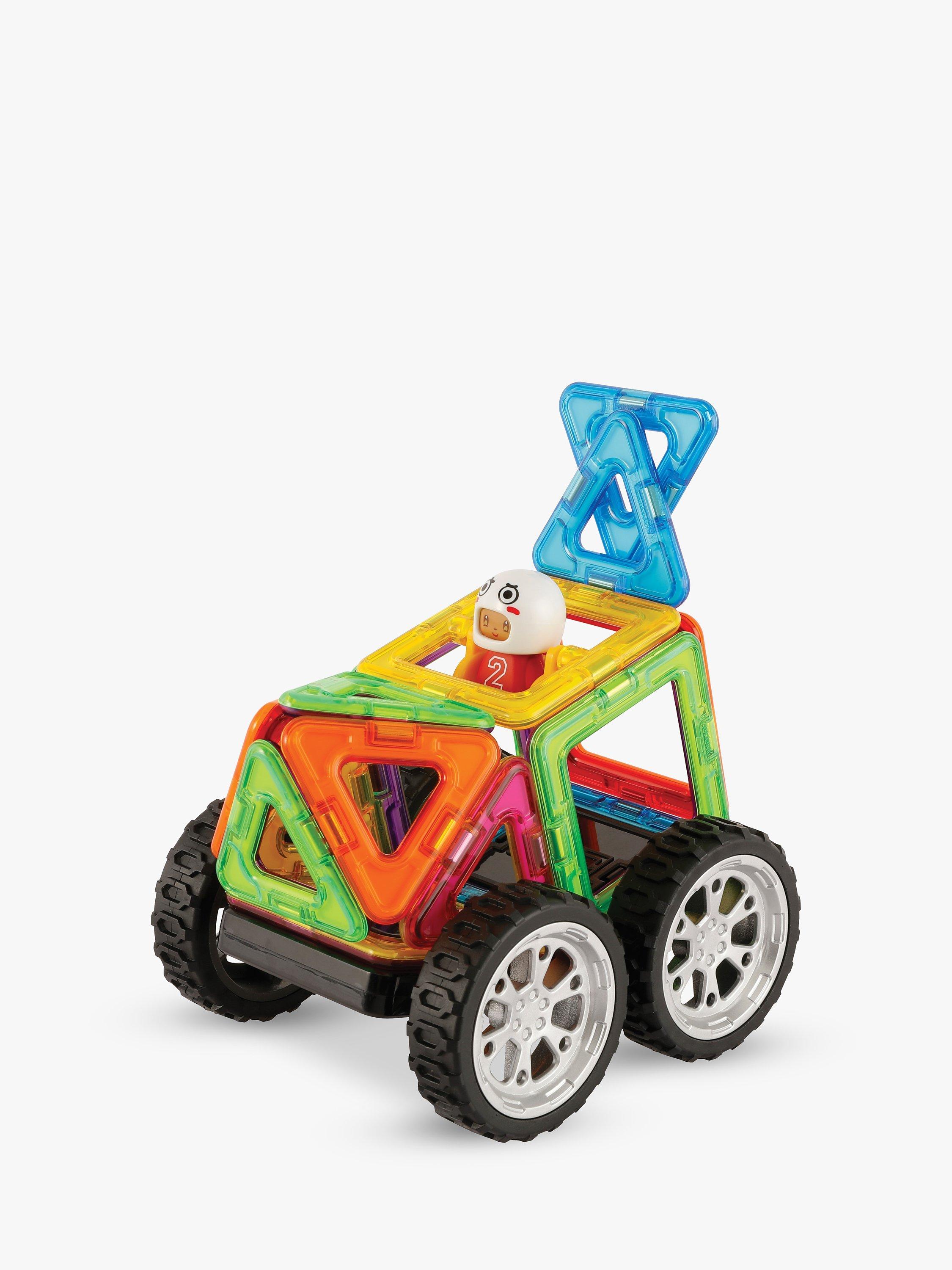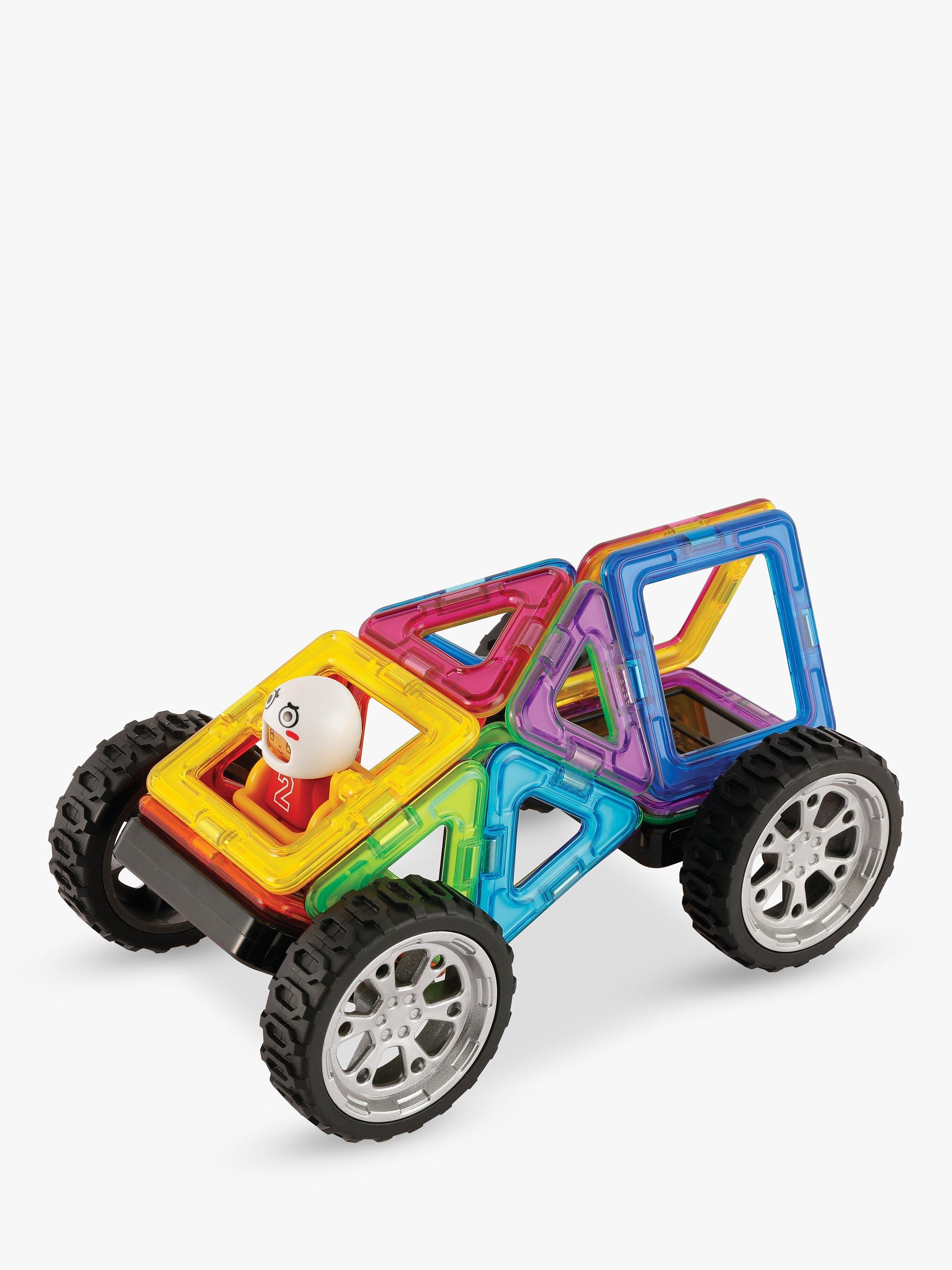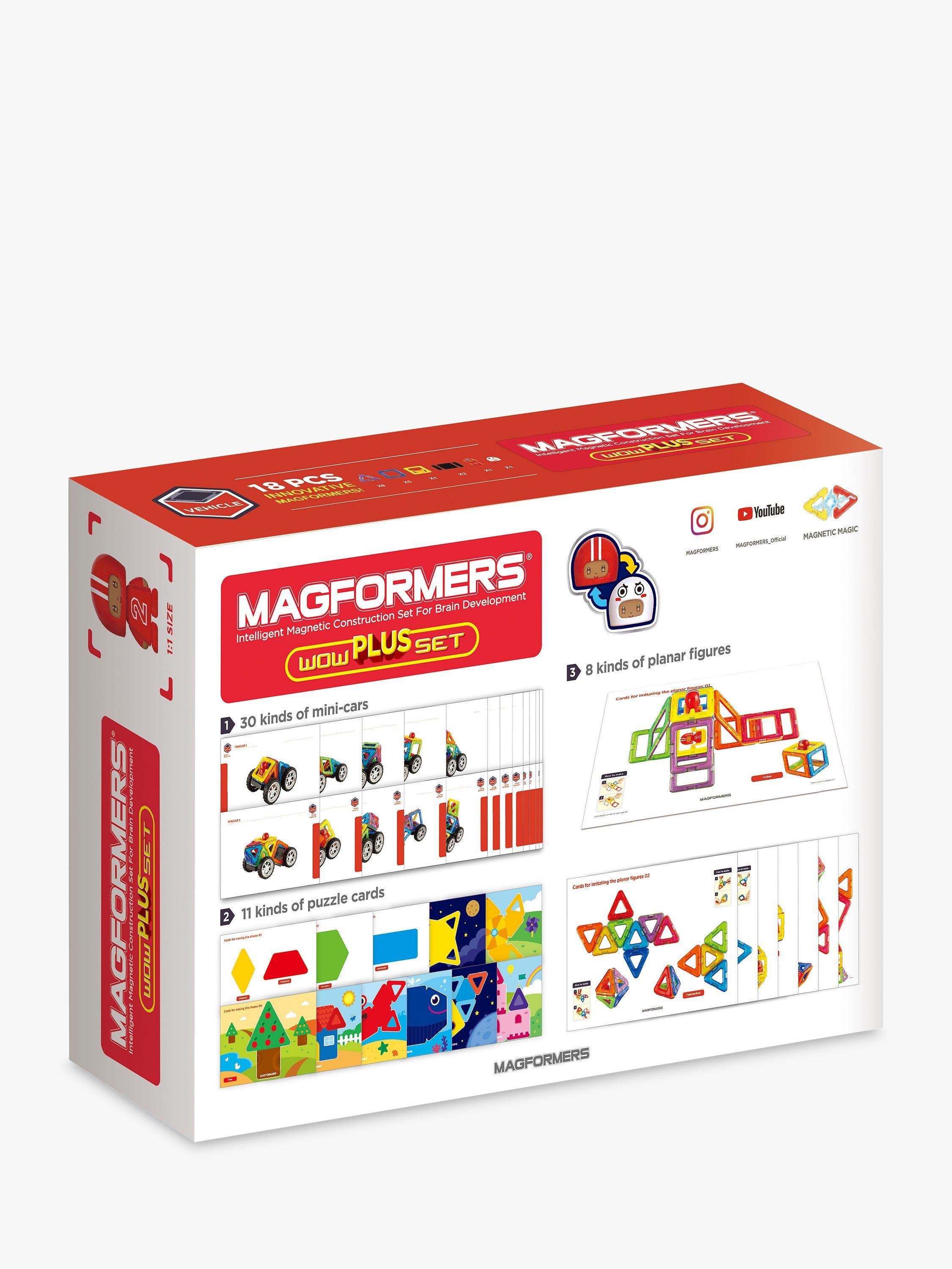 We've made vehicles with Magformers before, way back in 20-13, but this 2021-version has been upgraded to make even better models! The magnetic wheels have been replaced with click wheels for more stable vehicle construction models, and there are extra puzzle and shape sorting cards to bring additional play value. And a whopping 30 different vehicle models can be made!