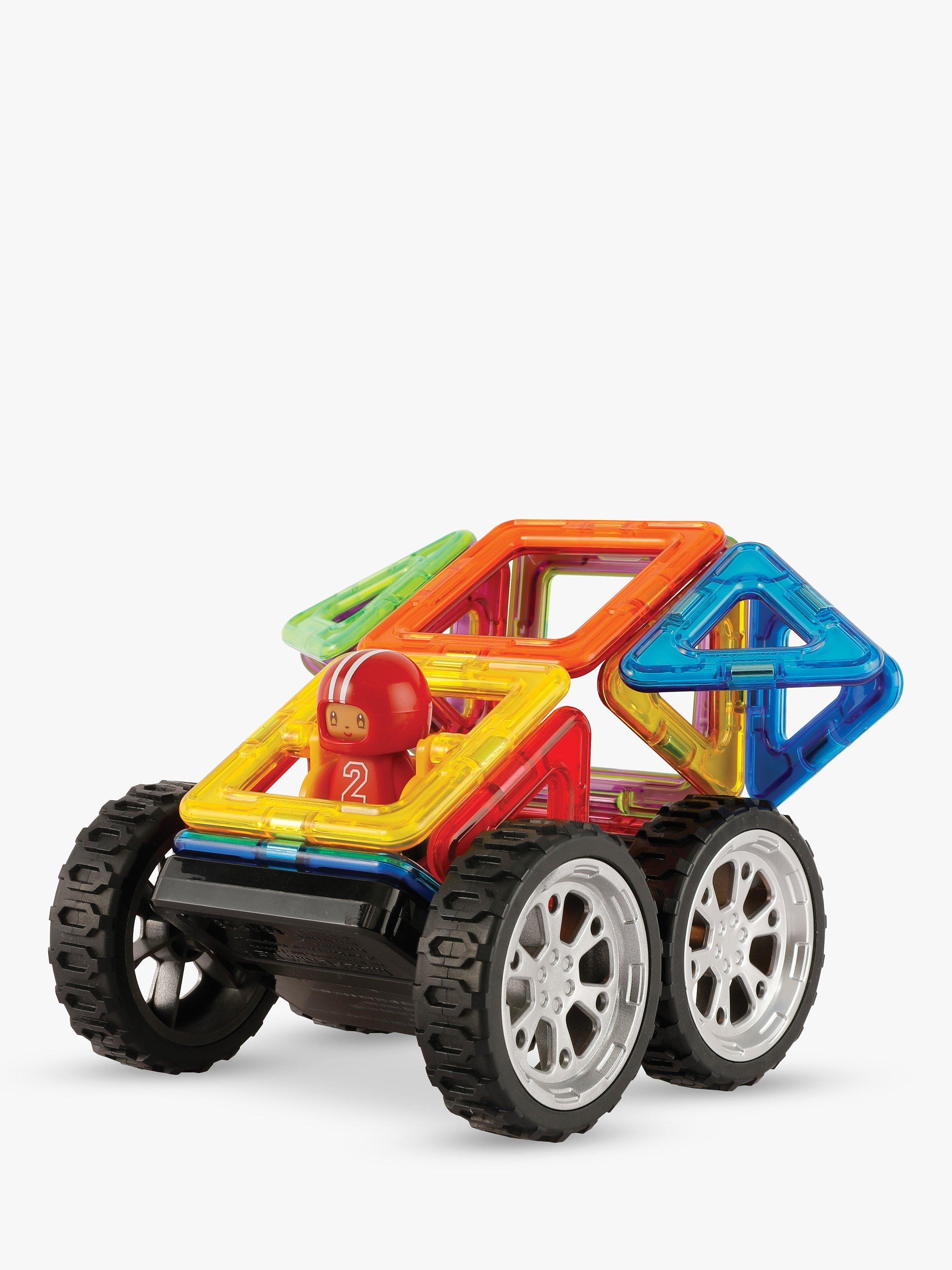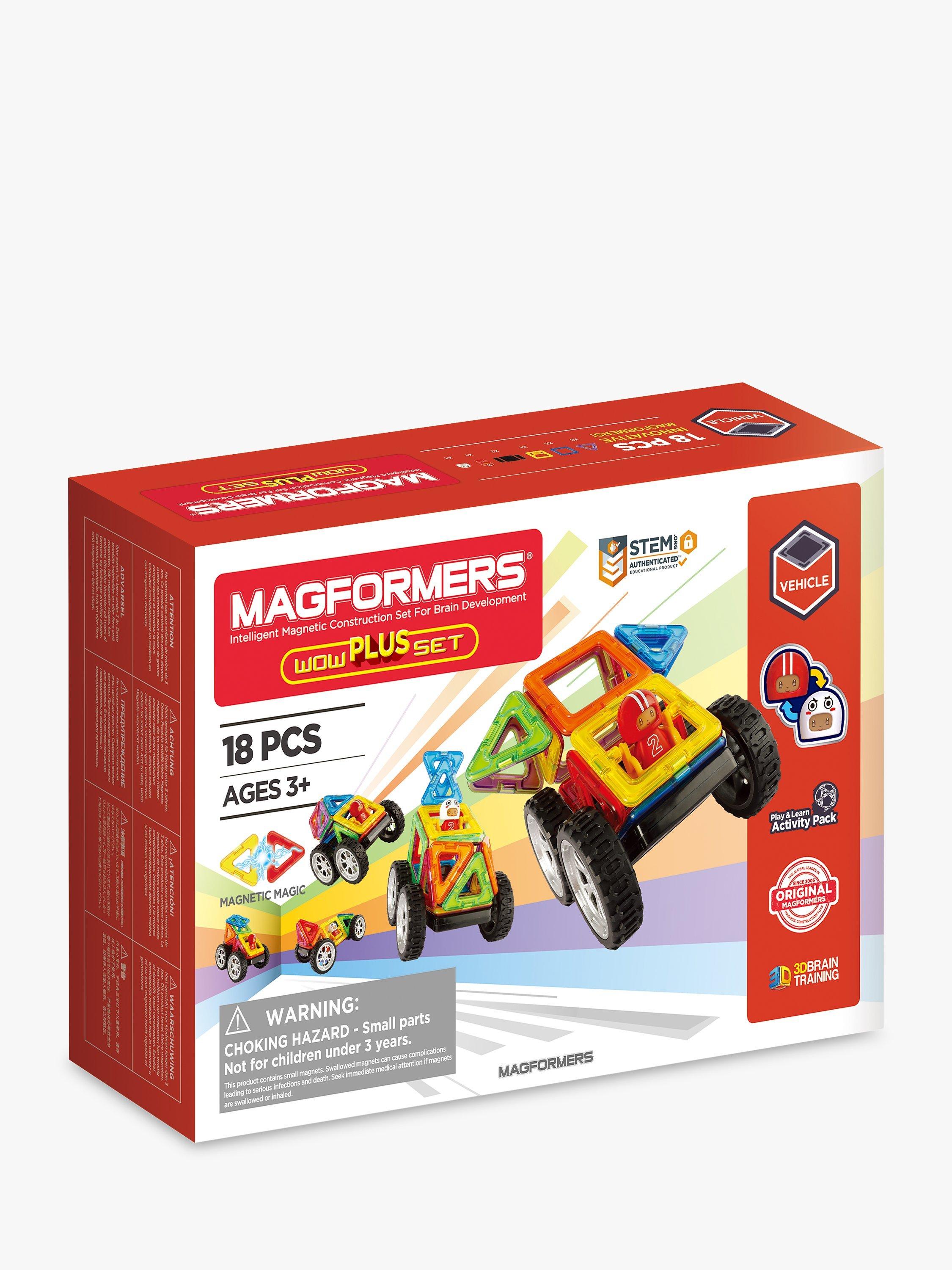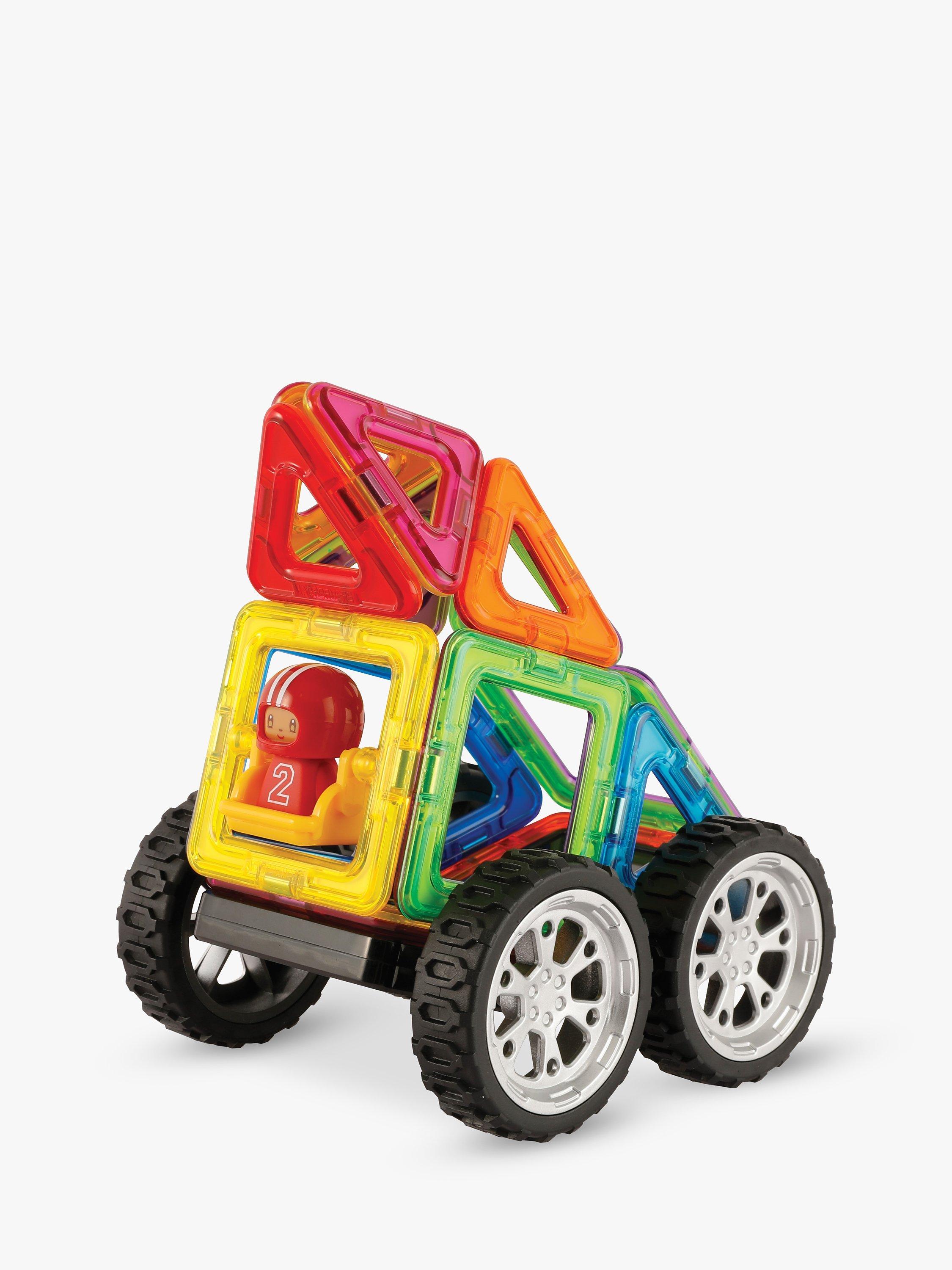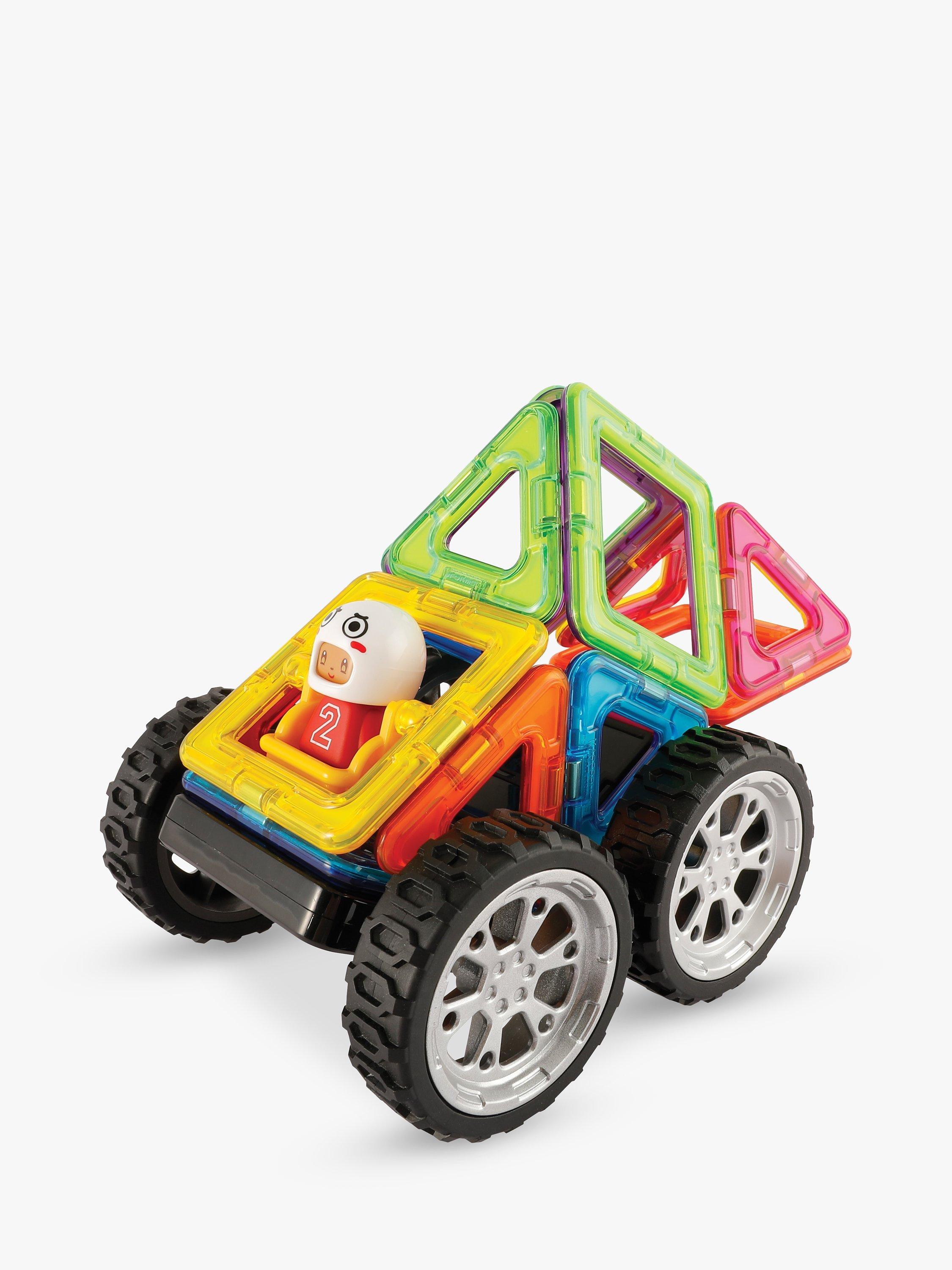 We've made vehicles with Magformers before, way back in 20-13, but this 2021-version has been upgraded to make even better models! The magnetic wheels have been replaced with click wheels for more stable vehicle construction models, and there are extra puzzle and shape sorting cards to bring additional play value. And a whopping 30 different vehicle models can be made!