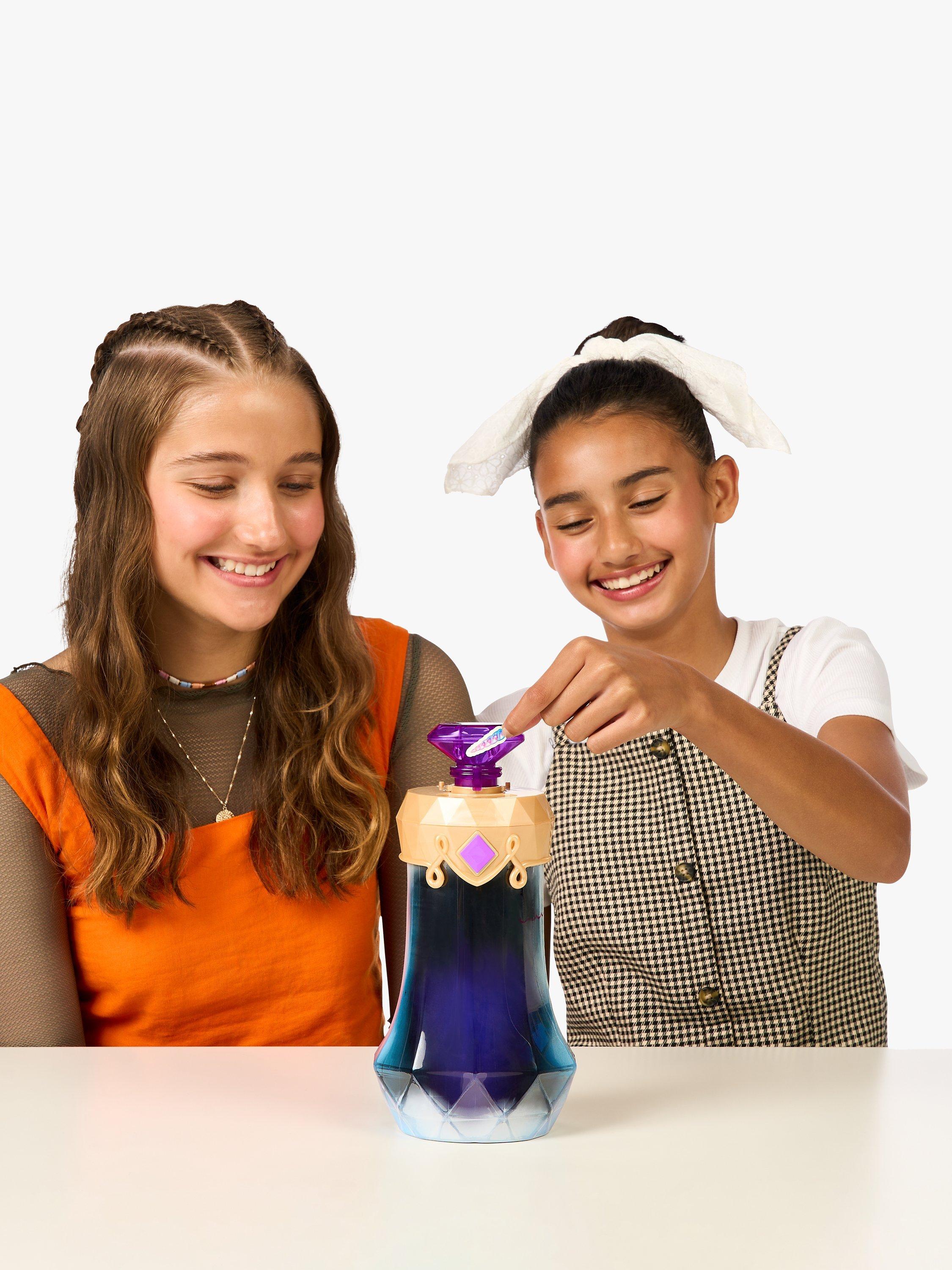 To create the potion, combine water with the magical ingredients included in the potion bottle. Swirl and mix to become a deep dark blue colour, then say the magic words, "Magicus Mixus", while turning, then pressing the crystal gem.