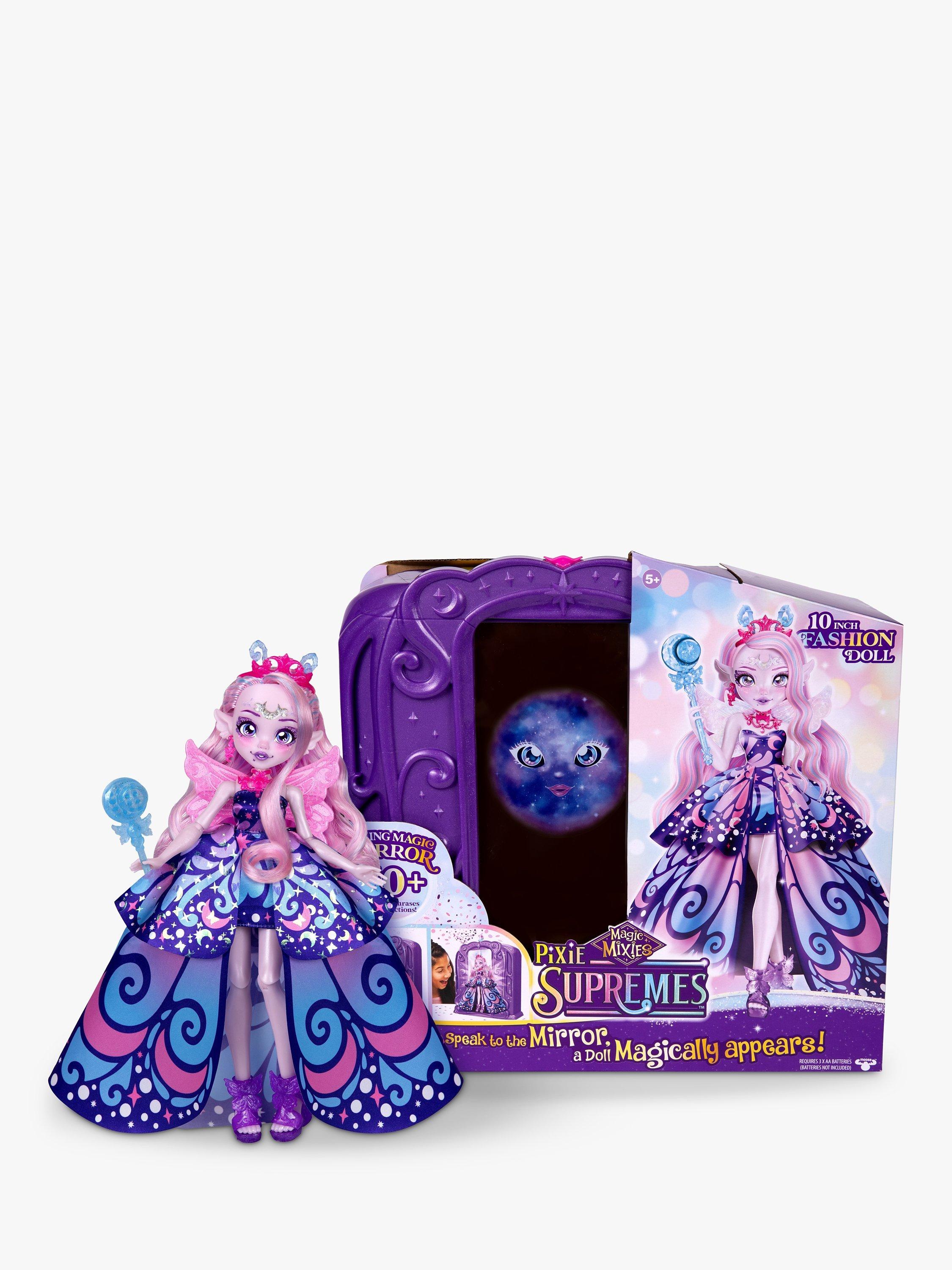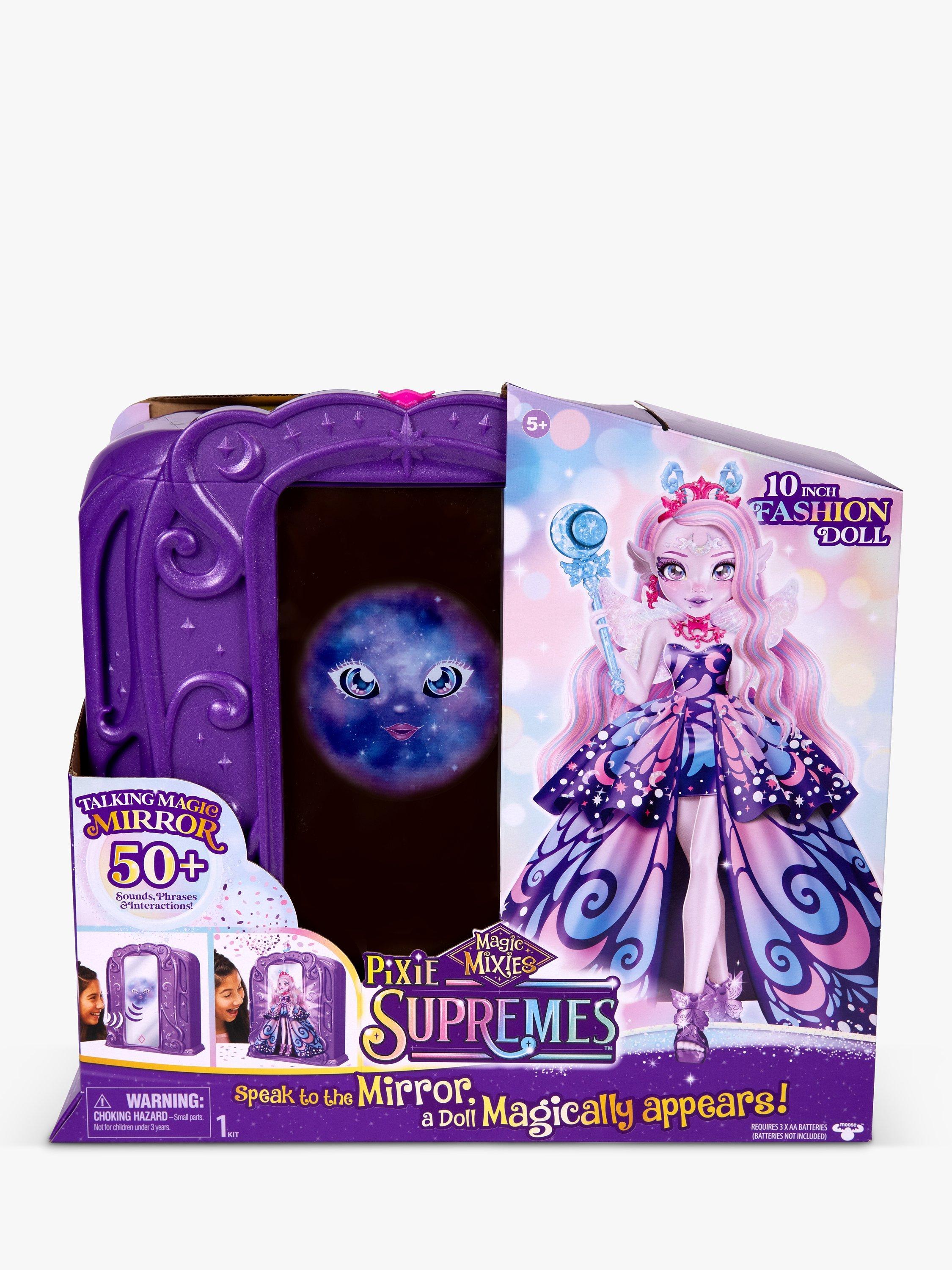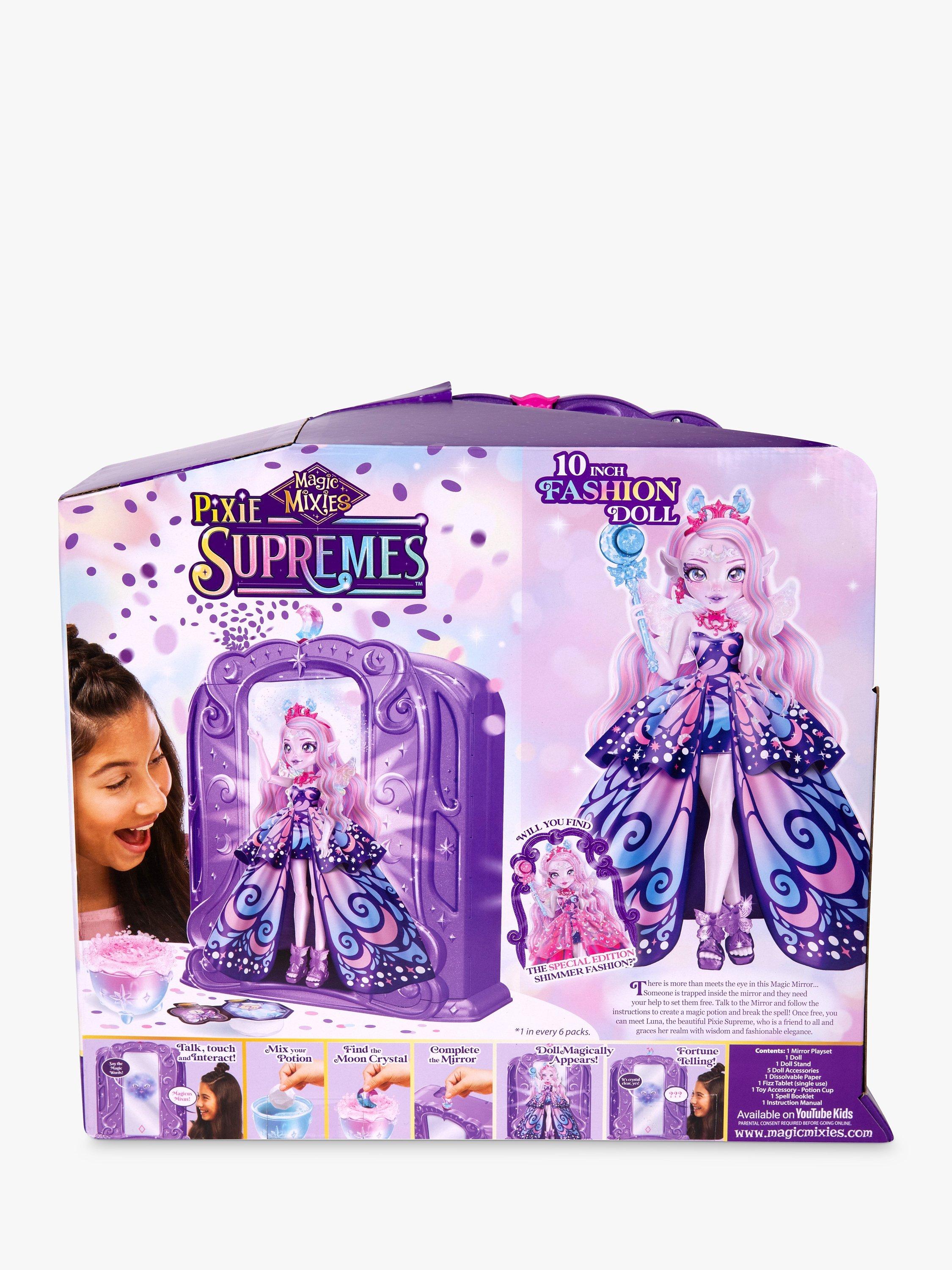 Awaken the Magic Mirror and release the beautiful Pixie Supreme trapped inside. Magic Mixies Pixie Supremes are 10-inch (25cm) fashion dolls with stunning detail and an enchanting style. But they need your help to set them free. The Magic Mirror will give you the instructions to create a magic potion and break the spell to release the beautiful Pixie Supreme.