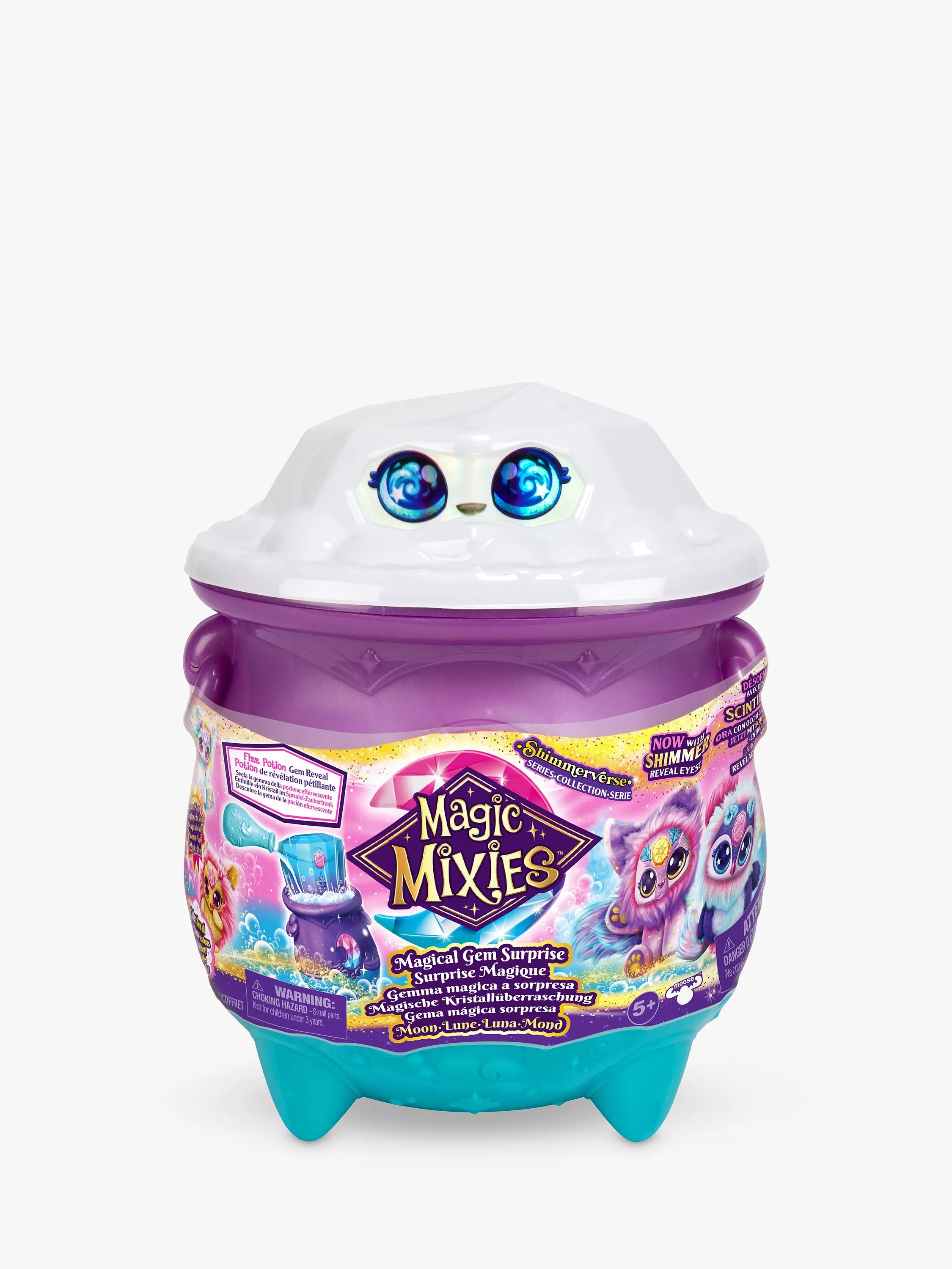 Welcome to the world of Magic Mixies Shimmerverse Cauldron! You will be amazed to see what magically appears from your cauldron once you've added your magic ingredients and finished casting your magic spell! Which Magic Mixie Plushie will you create first? Once you've mixed your ingredients and cast your spell, your new Moon Mixie Plushie will be revealed right before your eyes! Push the crystal gem on its forehead to see a beautiful shimmer effect in the Mixie's eyes. With 4 new Mixie Plushies Cauldrons to collect, the world of magical shimmer is yours to explore.
