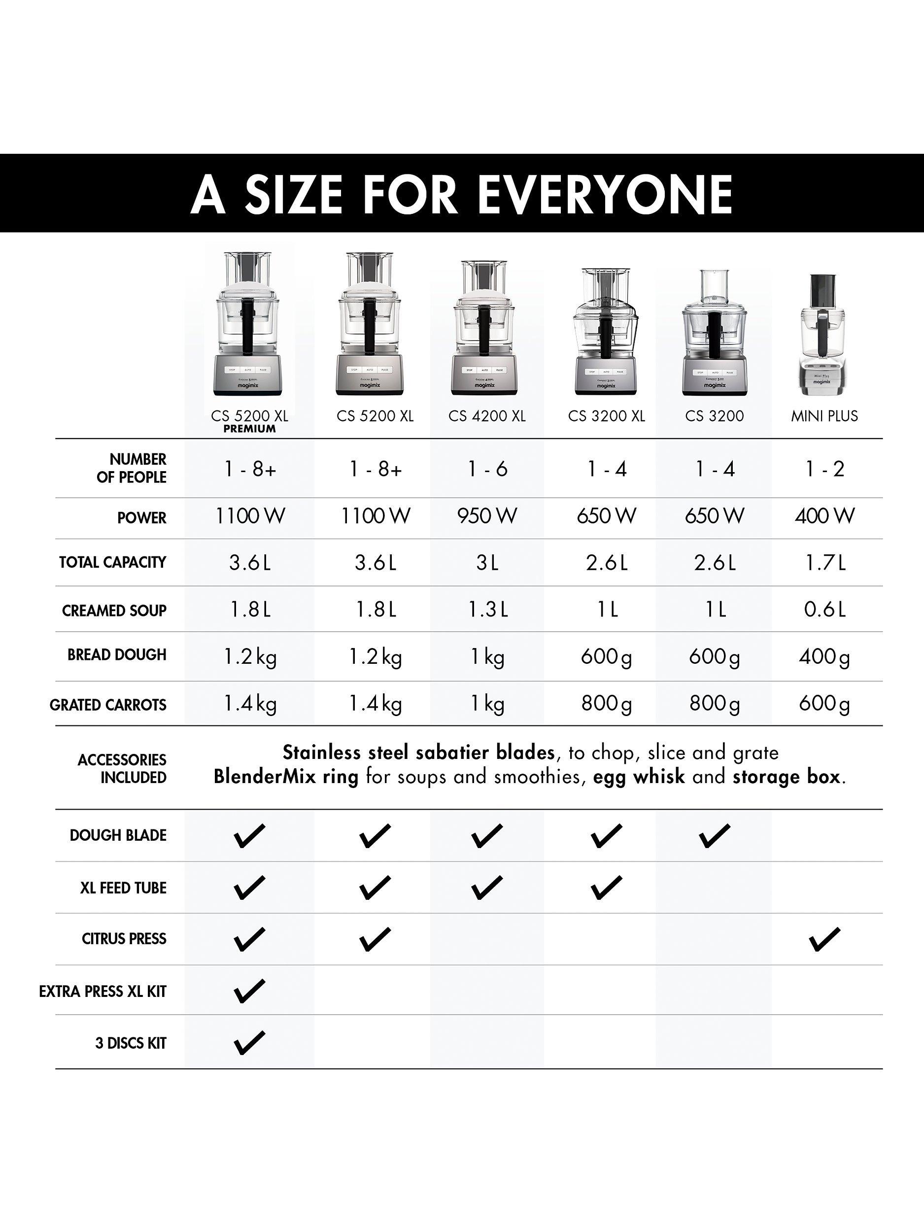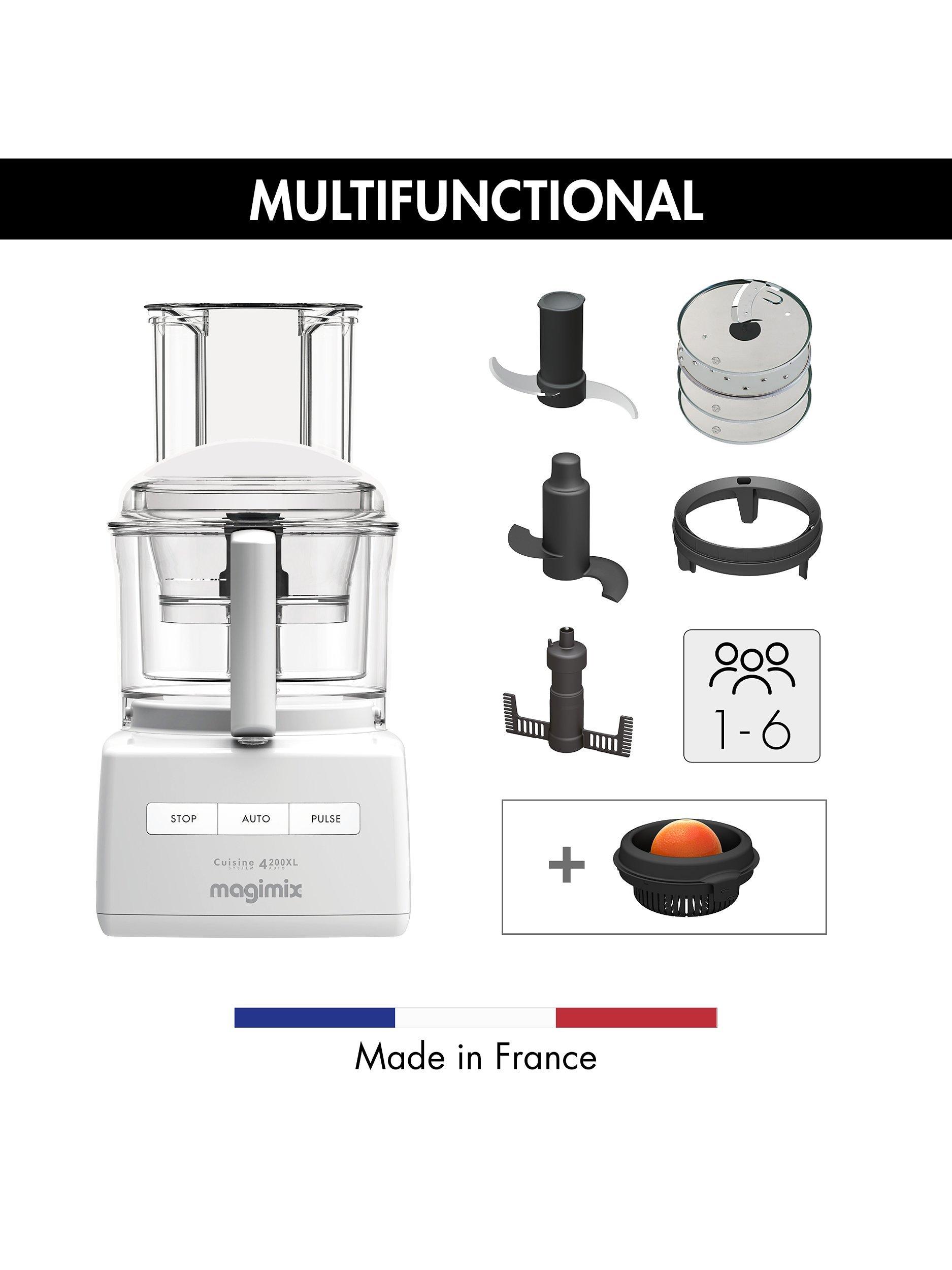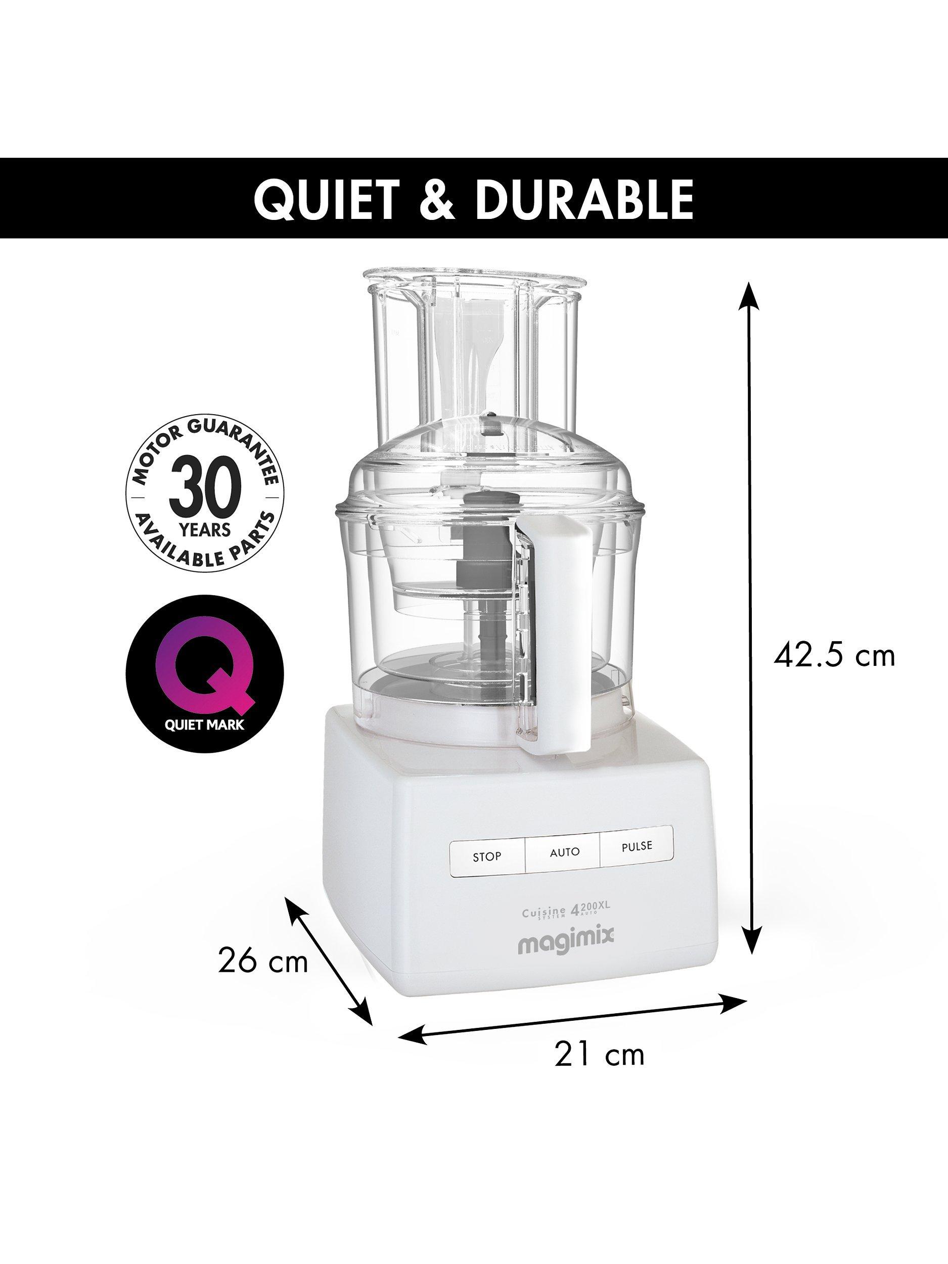 Revolutionise your kitchen skills and discover the ease and pleasure of cooking from scratch with an iconic Magimix Food Processor. The Magimix 4200XL Food Processor is perfect for catering up to 6 people. With a minimal footprint for such a powerful and versatile machine, the 4200XL kneads up to 2 loaves (1kg) and grates up to 1kg vegetables in the main bowl.