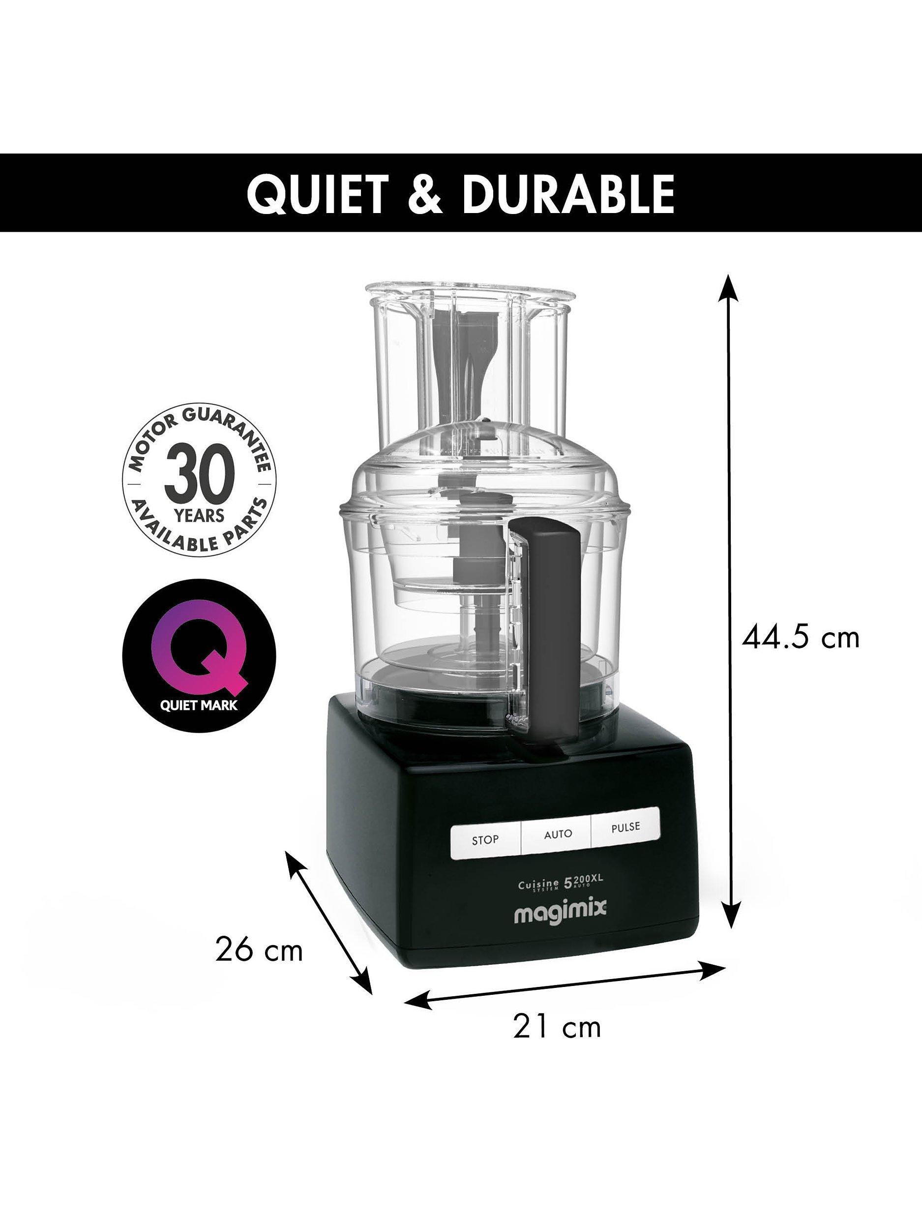 Built better to last longer, the Magimix 5200XL has a quiet commercial grade induction motor with a 30 year guarantee. All parts and accessories also come with a 3 year guarantee.