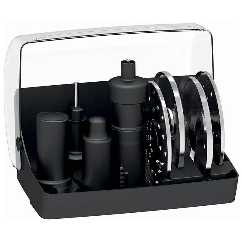 Main blade, dough blade, egg whisk, midi bowl, mini bowl with mini blade, 2mm slicing disc, 2mm grating disc, 4mm slicing disc, 4mm grating disc, BlenderMix attachment, citrus press, triple pusher, SmoothieMix, Dice & French-Fry kit & 3 discs kit-1mm slicer, 6mm grater