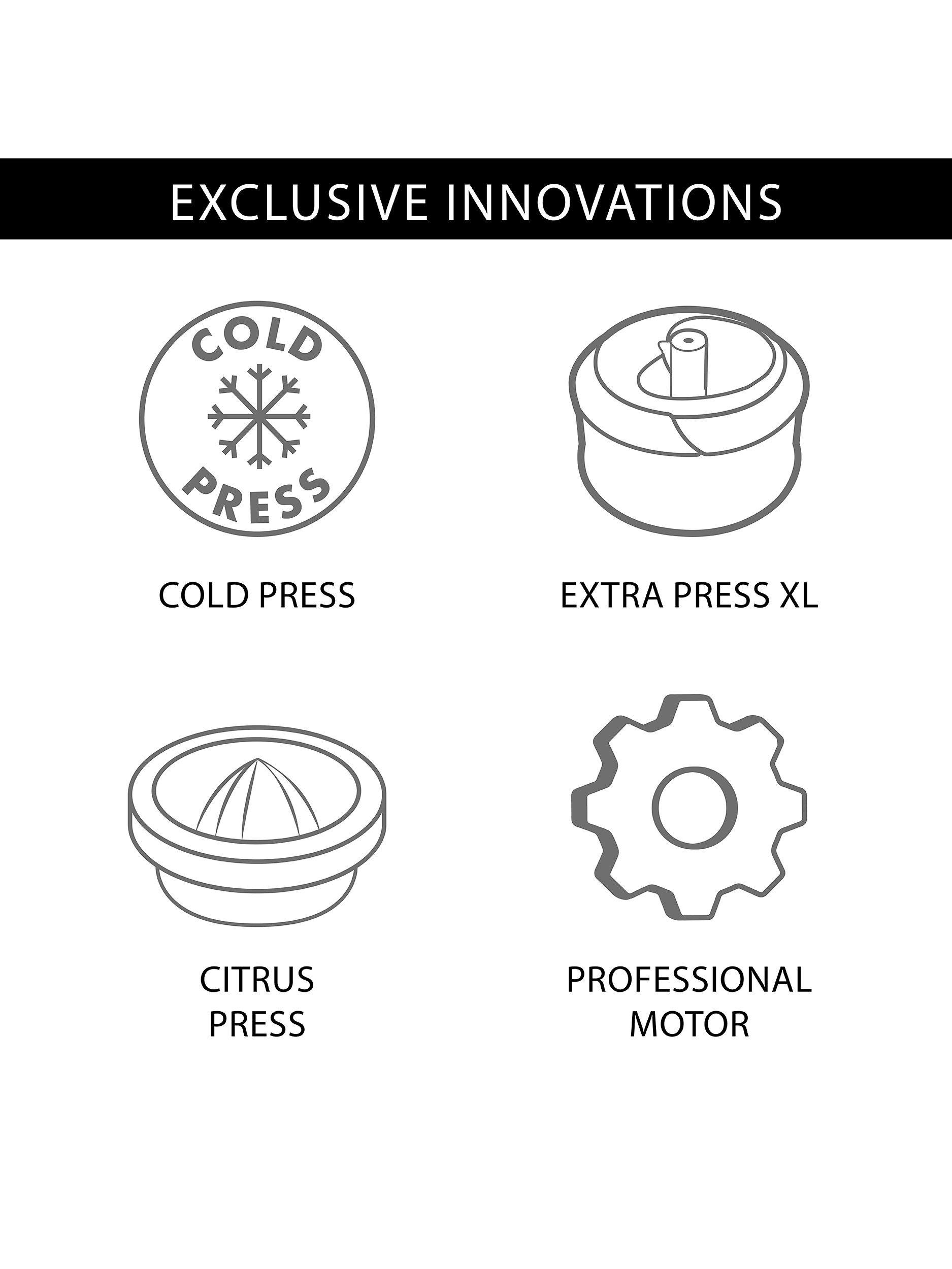 - Extra Press® XL: For deliciously smooth juices, milks and smoothies