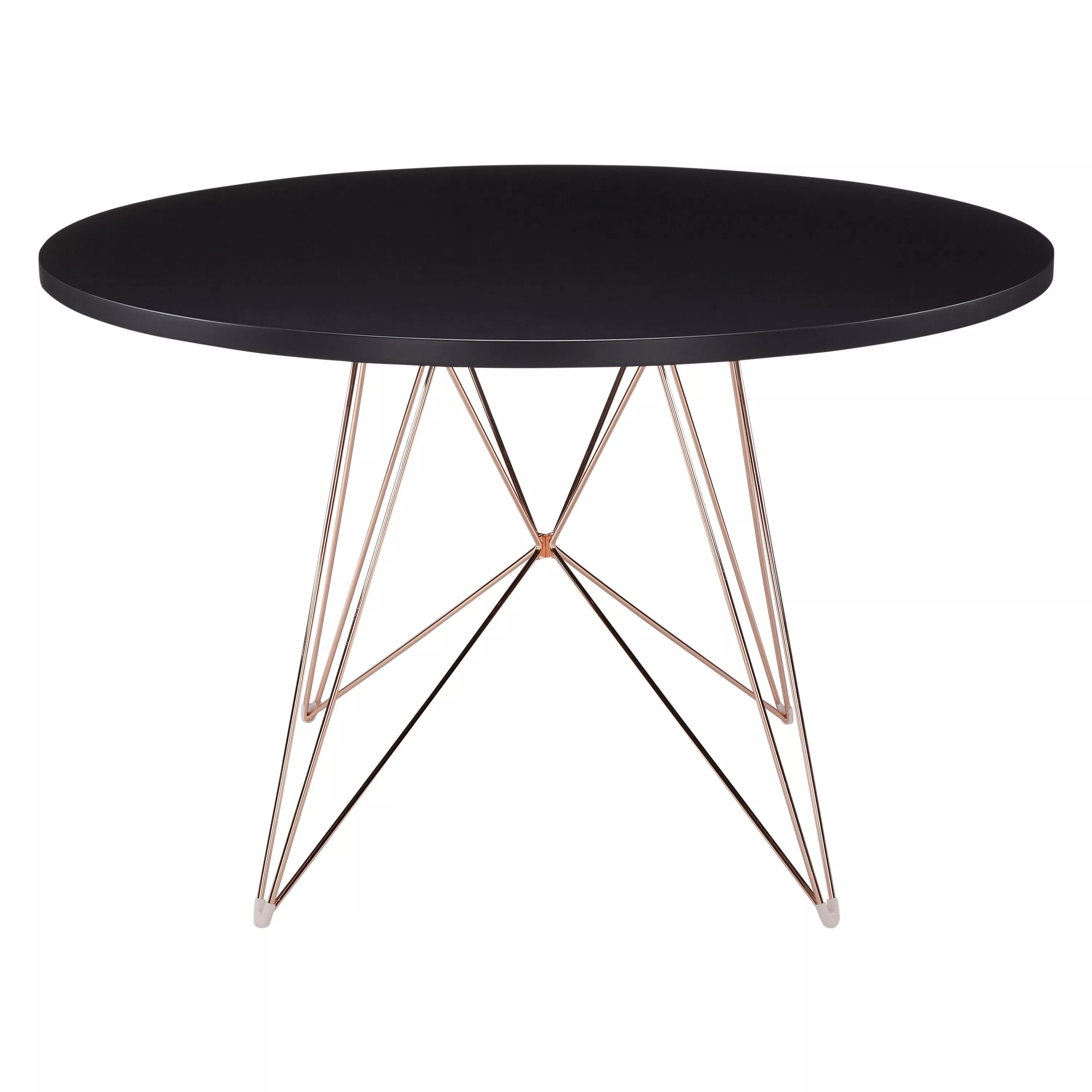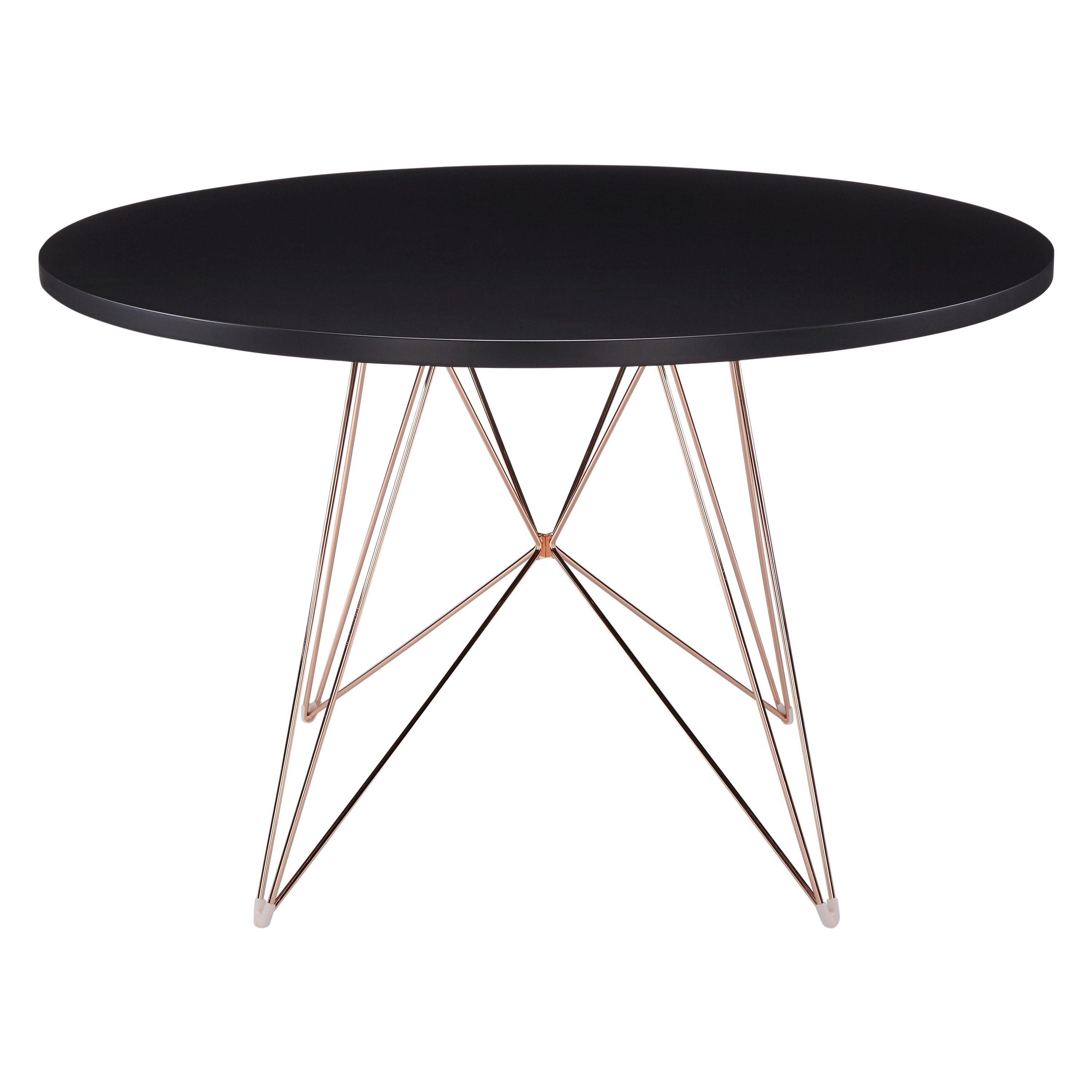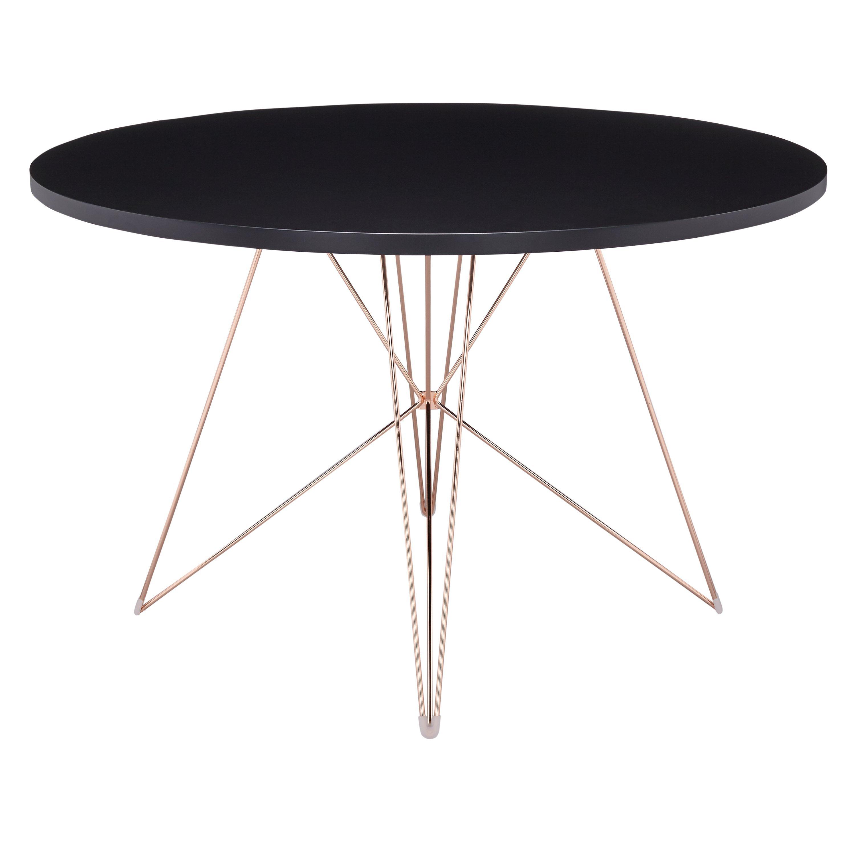 First developed by Magis in 1990, and later redesigned in 2003, the XZ3 table exhibits an architectural style with a graphic convergence of lines found in the striking leg frame, and a sleek round top. The legs are finished in a metallic epoxy paint, while the top is painted in a versatile, yet contrasting colour to create a modern and minimal aesthetic.
