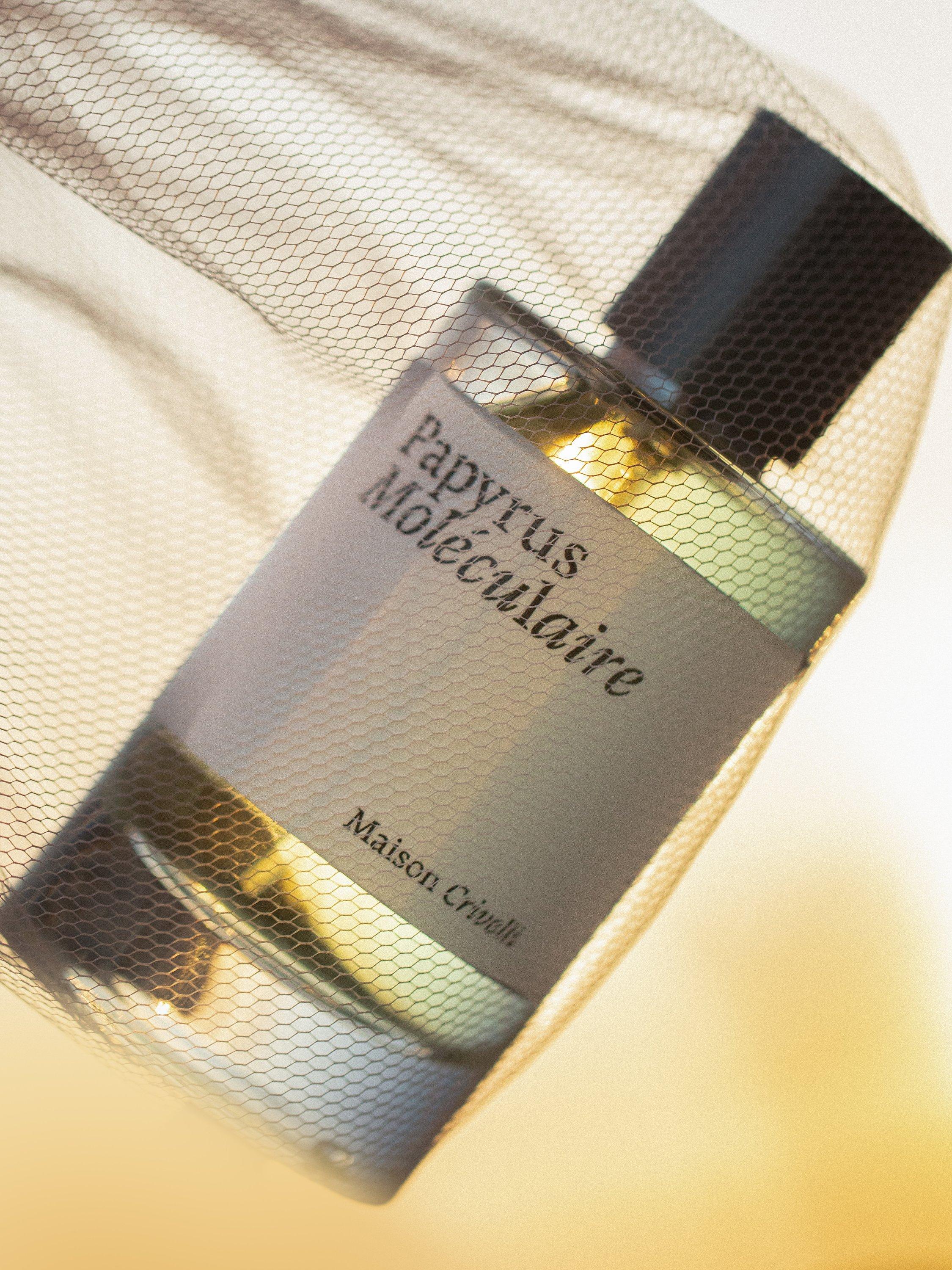 Inspired by a discovery of papyrus root powder with women smoking cigarillos, this creation will surprise you with its sensual combination of wood powder and tobacco leaves.