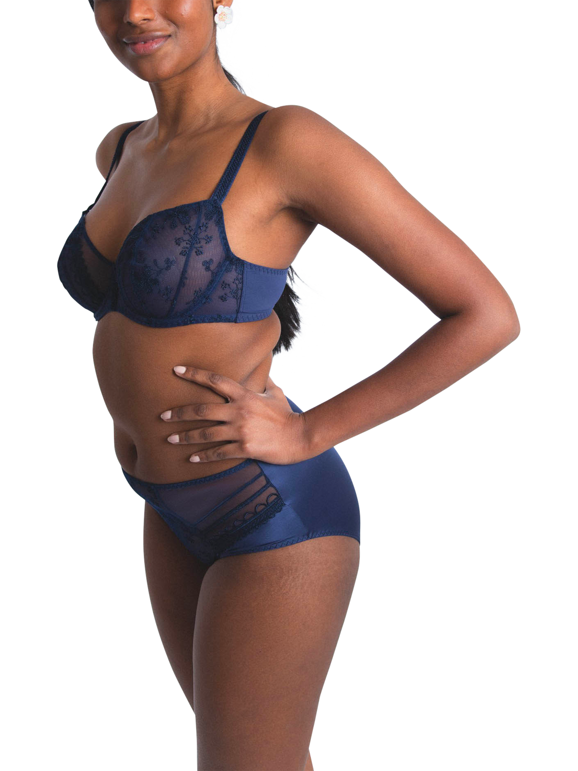 A full cup bra with underwires in floral embroidery, designed for larger sizes, combining femininity and everyday comfort.