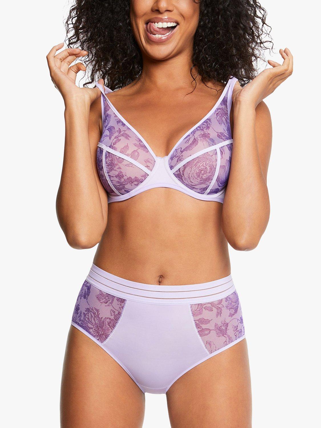 Designed with three sections made from a lightweight but hard-wearing voile, this full-cup bra from Maison Lejaby combines great coverage and support with an alluring and pretty finish. The centre gore is made with a double-layer opaque knit fabric for support and the sides in voile are completed with three stretch bands. There is a full knit fabric back for extra support.
