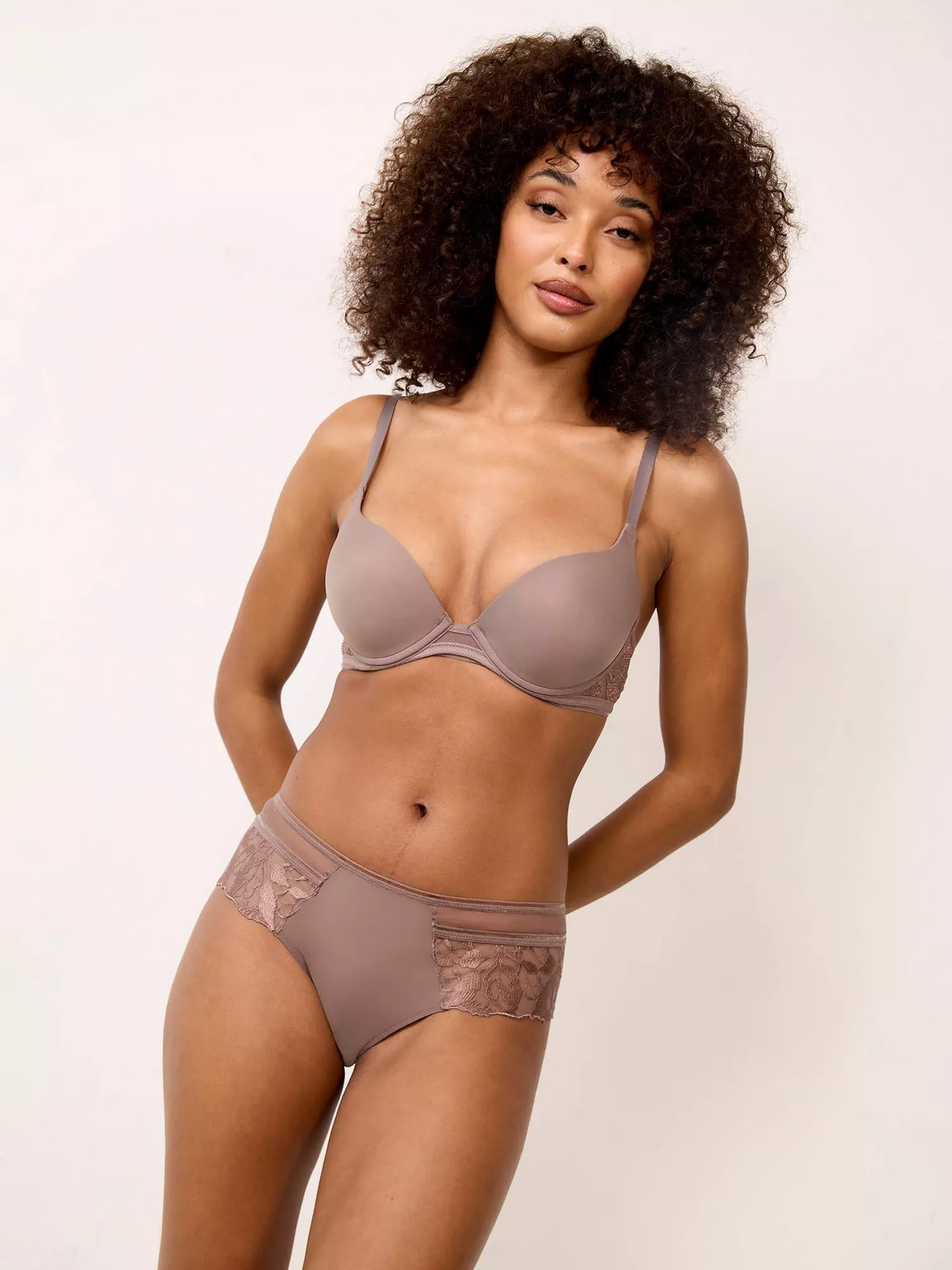 A push-up bra with cups fitted with progressive padding. Designed with tulle centre for an ultra-light effect and lined for support. A delicate and graphic stretch trim highlights the underband and back and it's finished with embroidered sides and back made of stretch tulle for comfort.