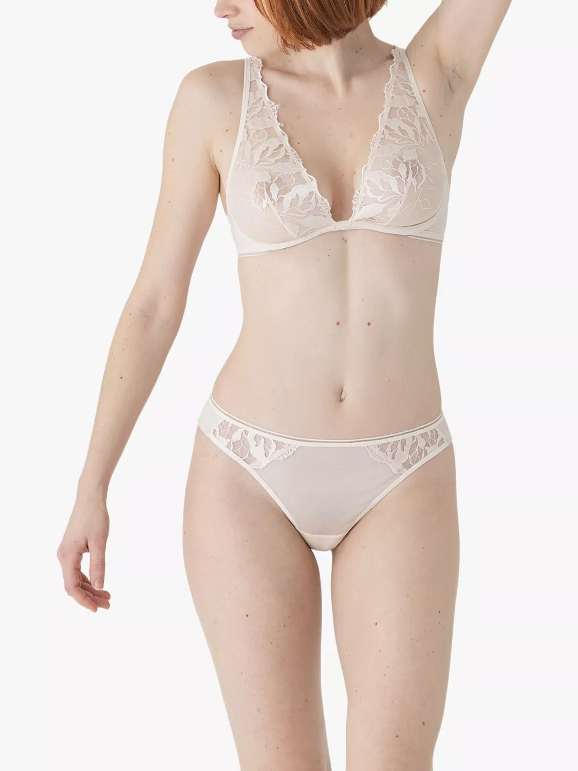 The Sin tanga briefs are an interweaving of mesh and floral lace, all scooped up to look like patterns made directly on your skin. Style with the coordinating bra for feminine appeal.