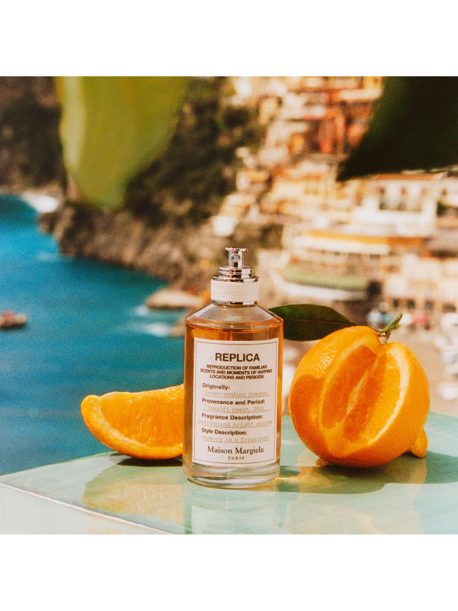Never-Ending Summer is shaped around Maison Margiela Fragrances’ unique Italian spritz accord, with this signature cocktail instantly recognisable for its uplifting citrus notes. The spritz accord intertwines with bitter orange, with its zesty, revitalising scent, evocative of a freshly peeled orange, and the vibrance of vetiver, whose sensuality captures Italy’s earthiness.