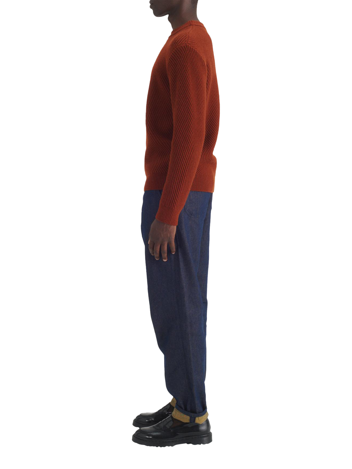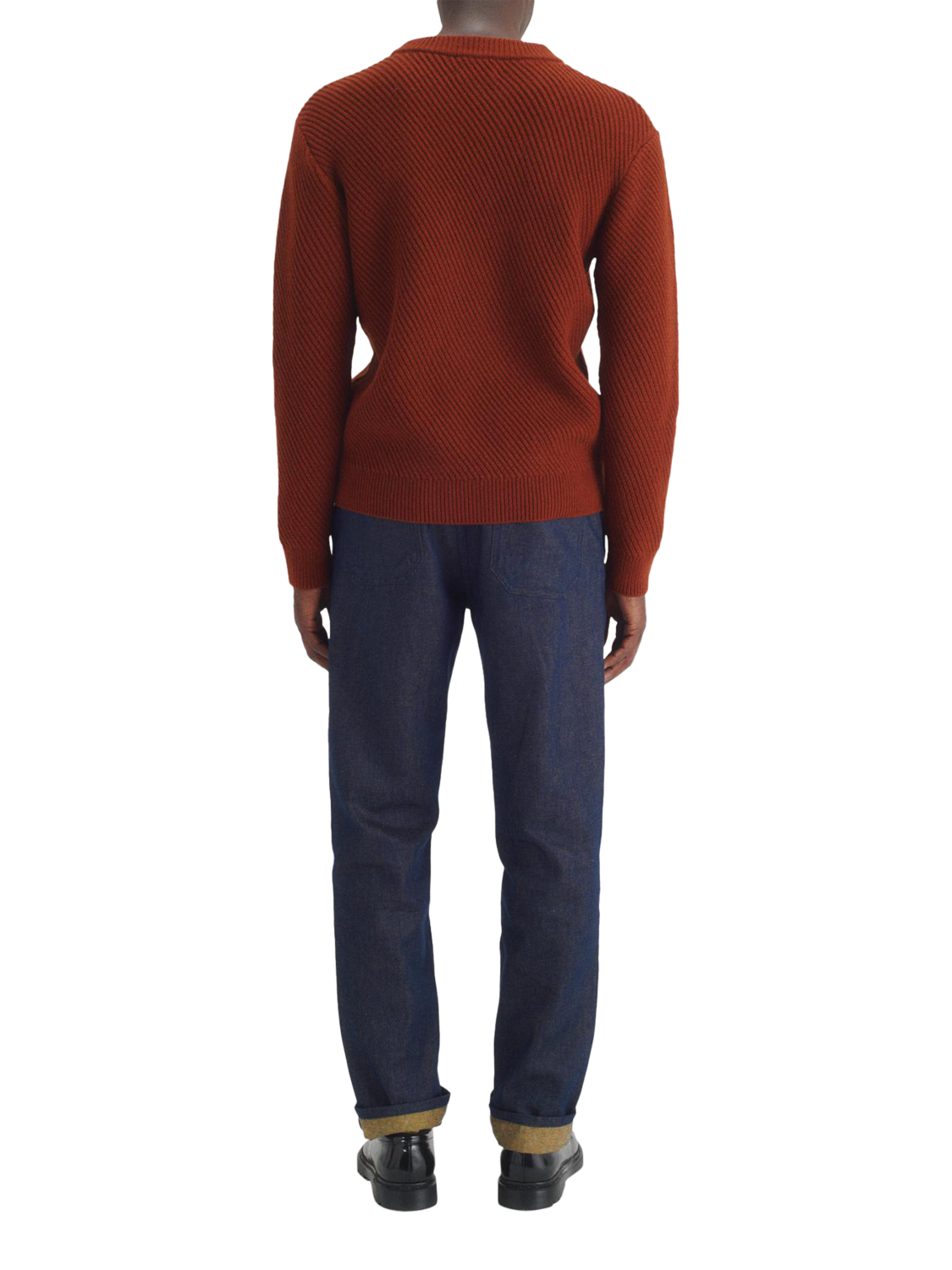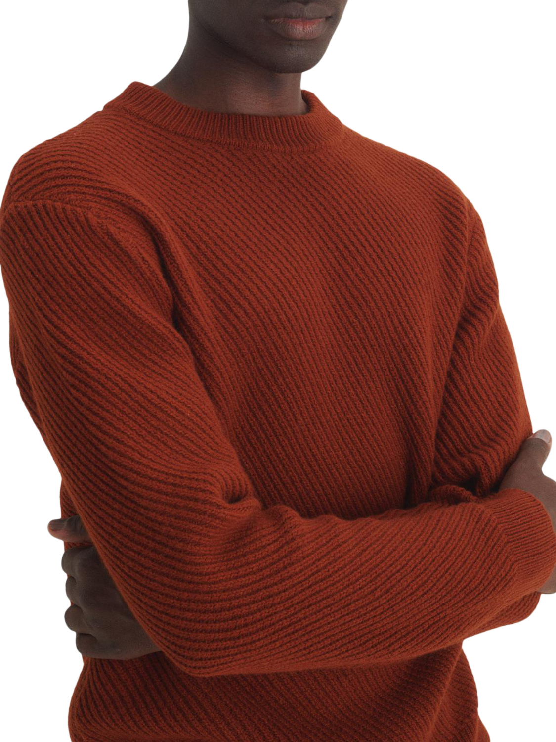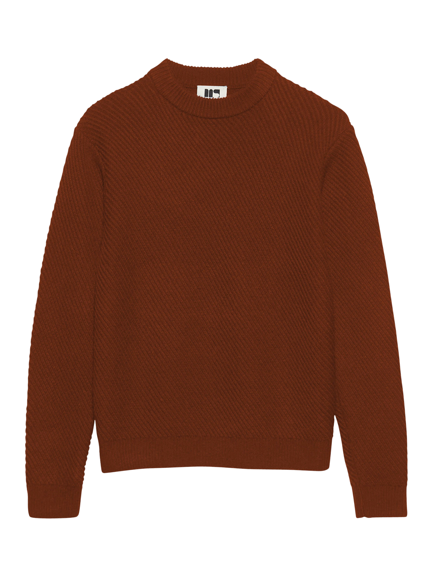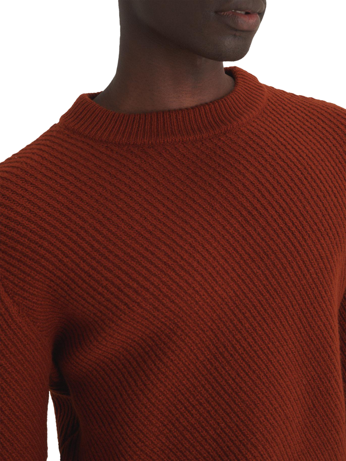 The unisex textured-knit sweater was designed to be worn by both men and women. Straight fit and knitted in diagonal ribs using a warm, soft-touch wool yarn. The classic crew neck has ribbed finishes at the collar, cuffs, and hem.