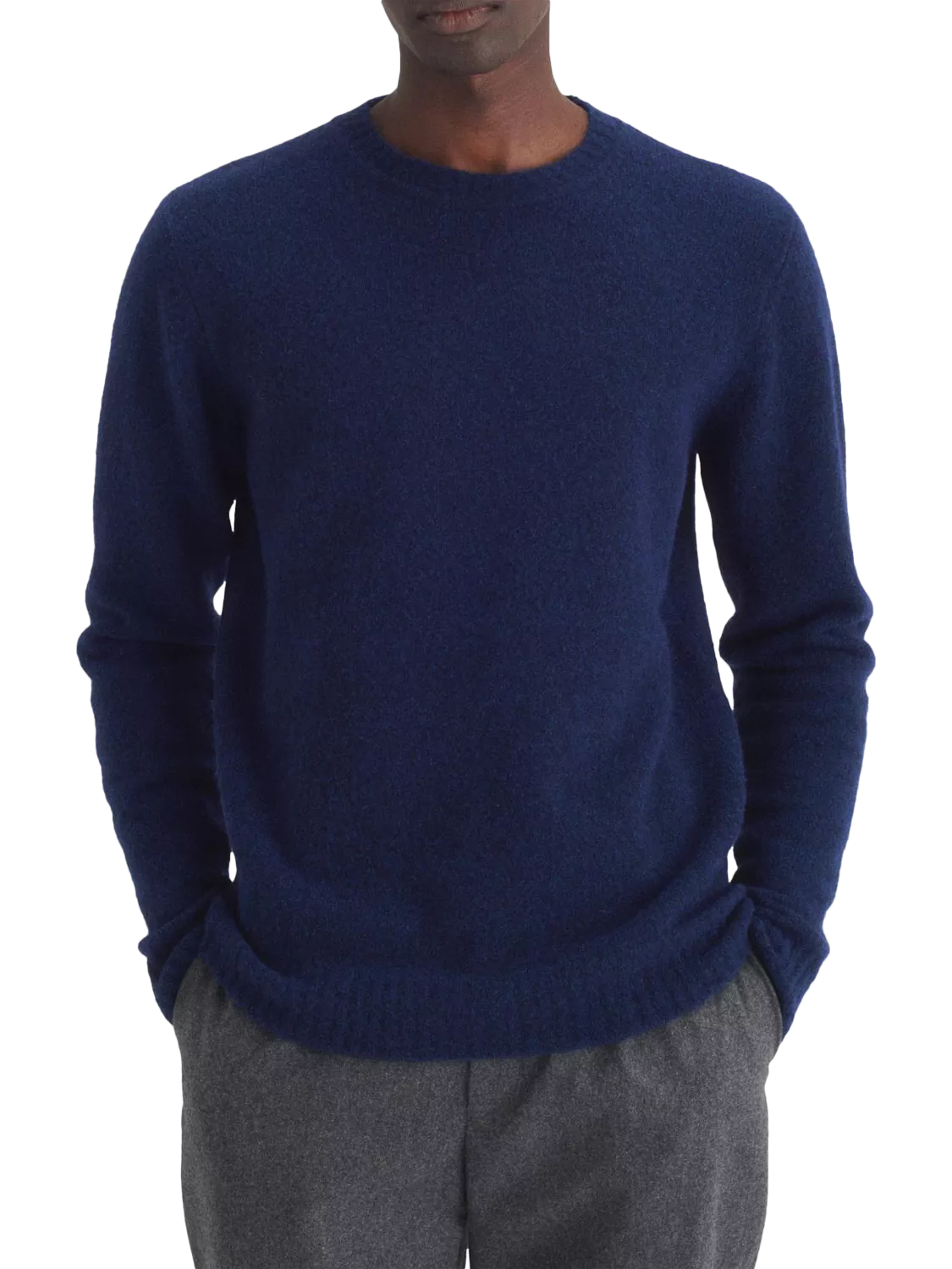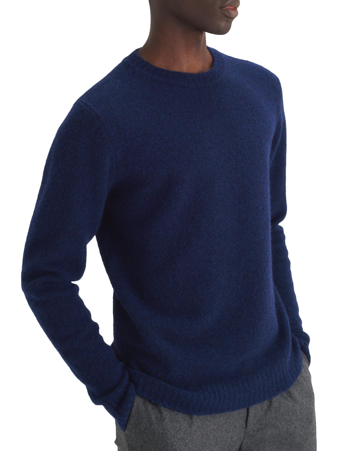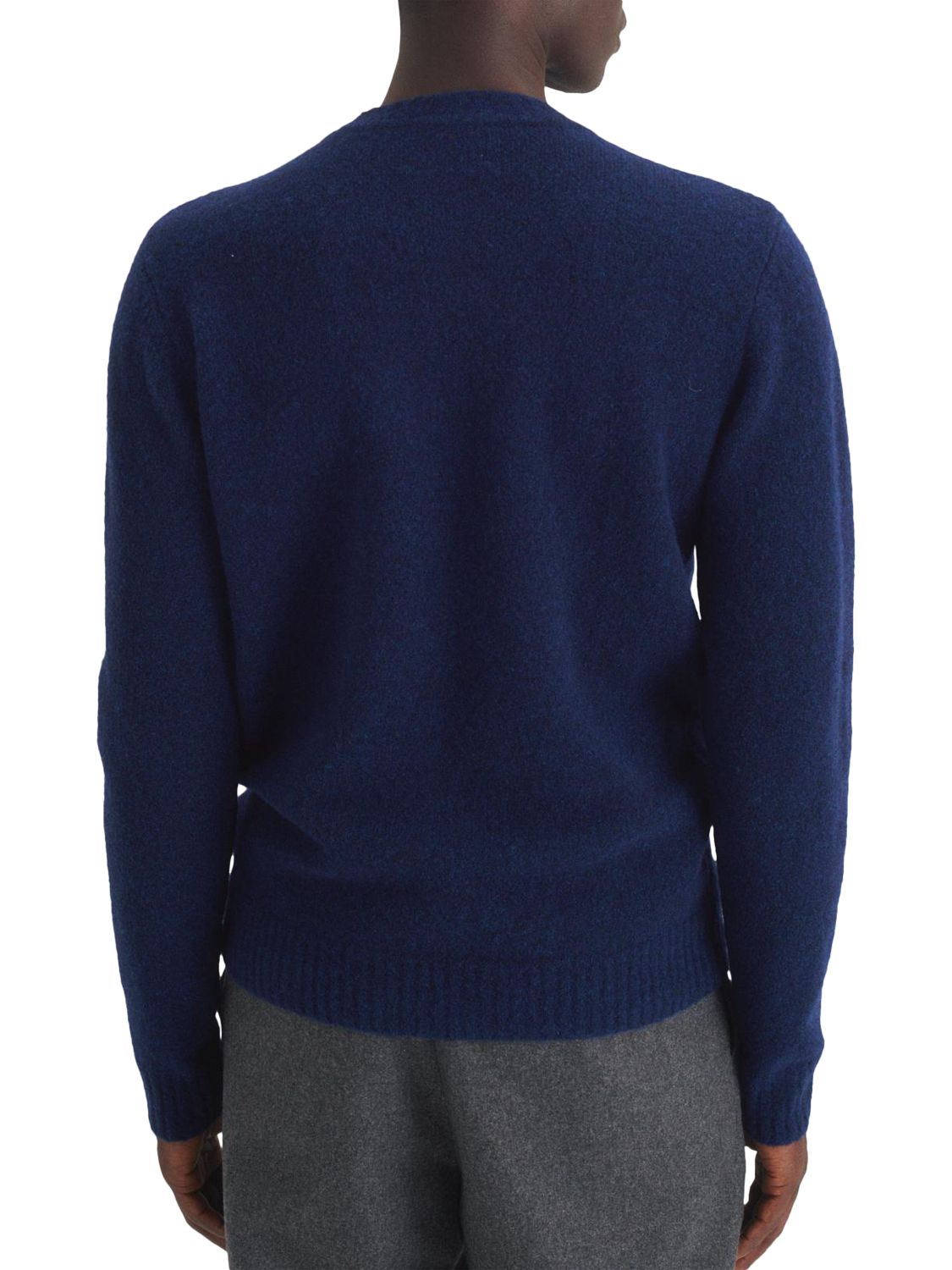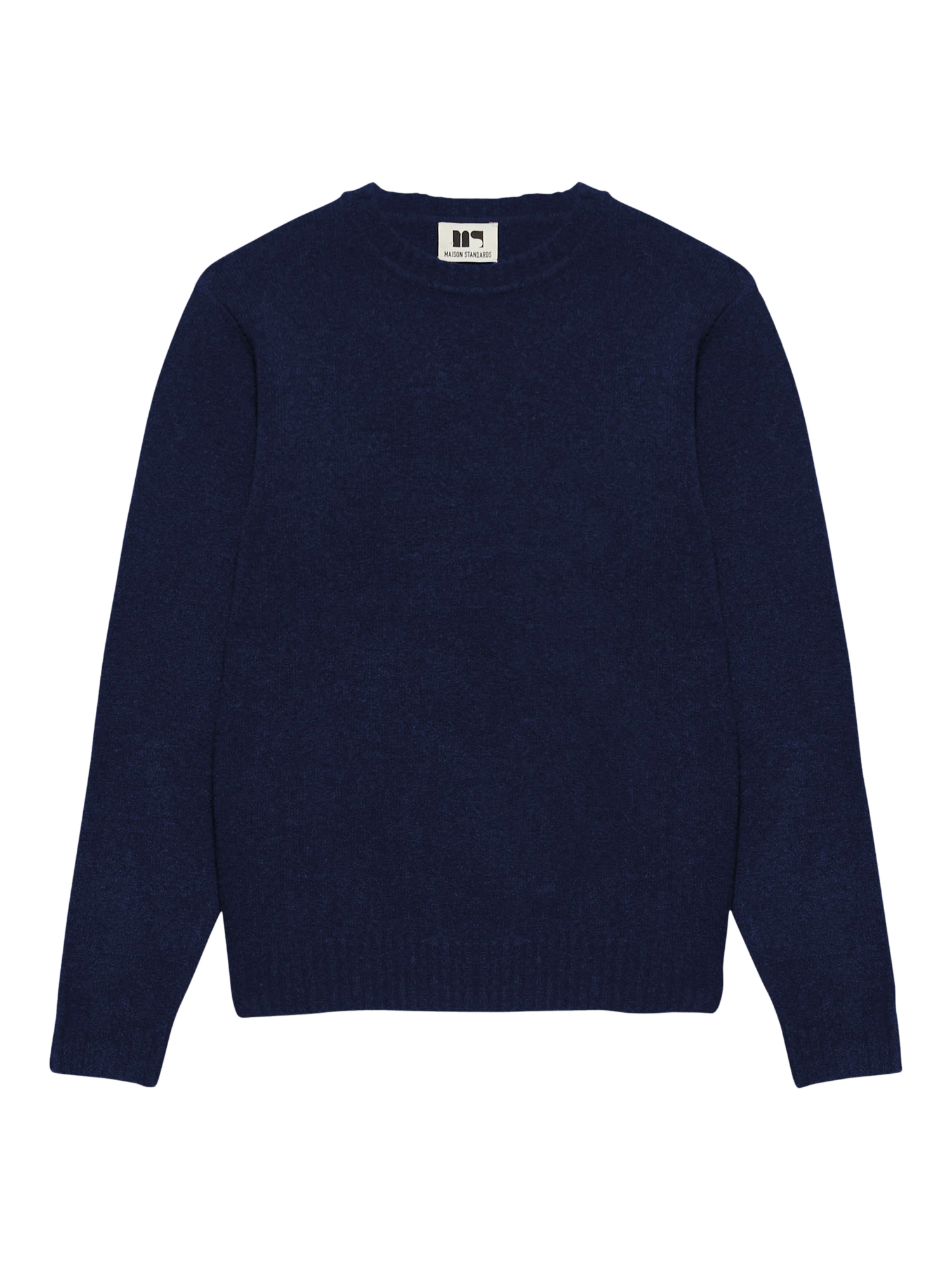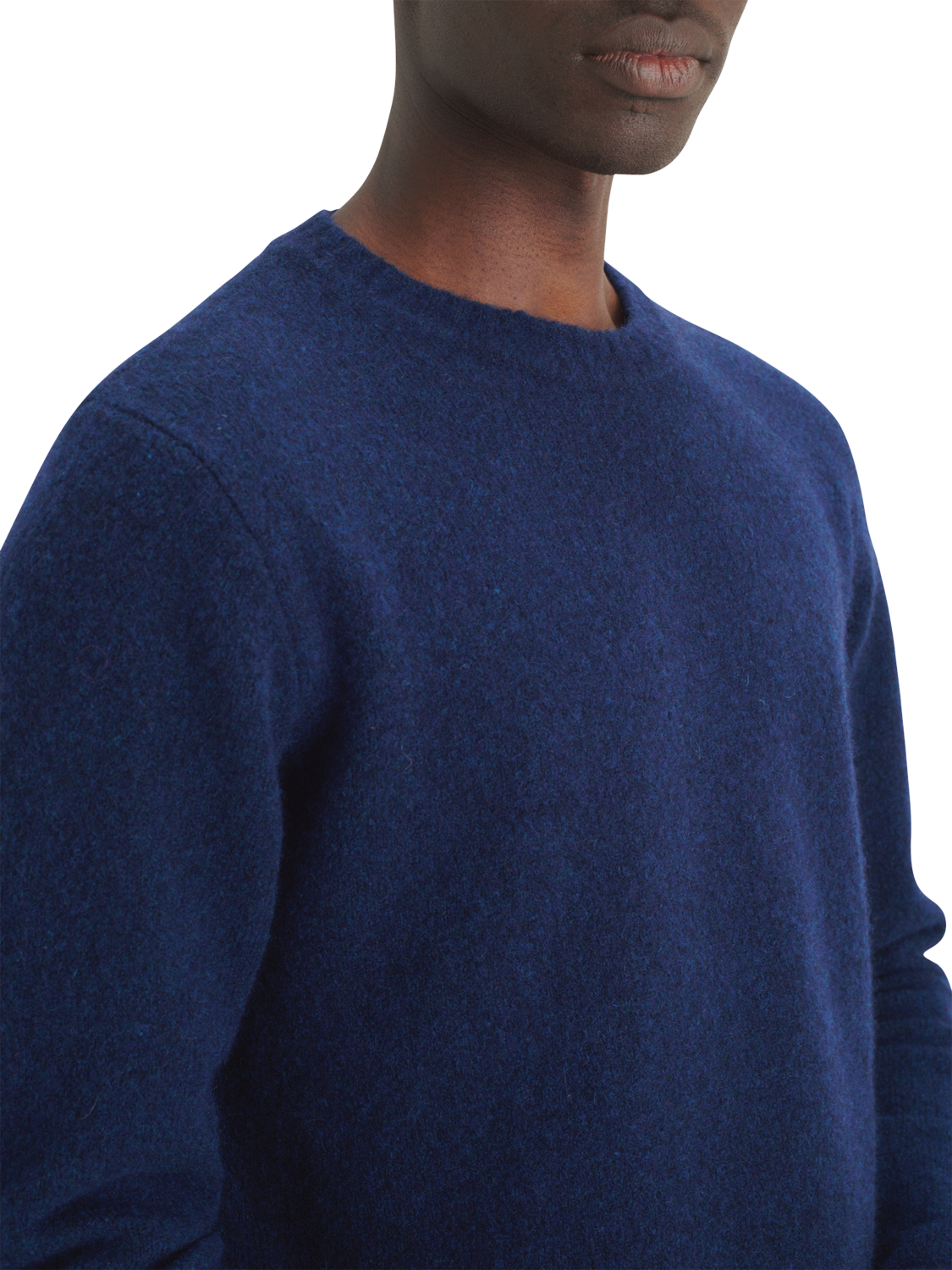 Designed to be worn by both men and women, this unisex crew neck jumper in lightly fluffy yarn is as stylish as it is comfortable. Knitted in jersey stitch using a soft, fuzzy yarn made of wool and recycled fibres.
