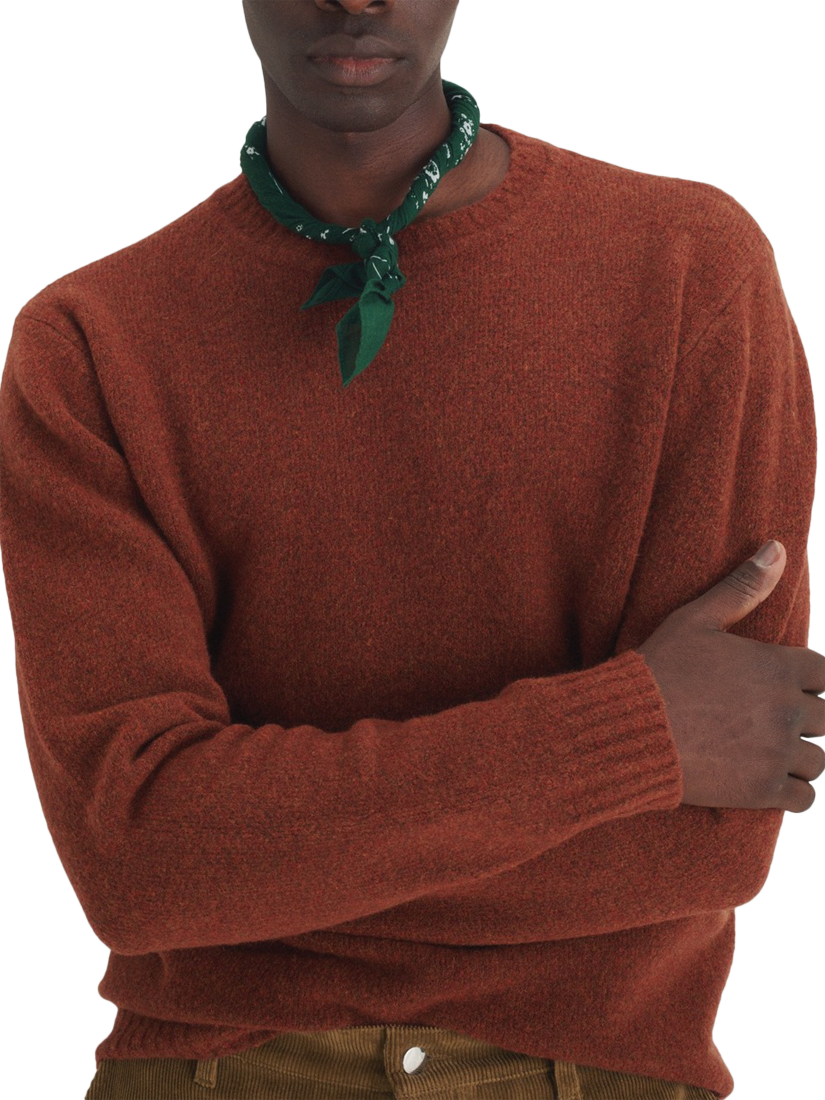 Designed to be worn by both men and women, this unisex crew neck jumper in lightly fluffy yarn is as stylish as it is comfortable. Knitted in jersey stitch using a soft, fuzzy yarn made of wool and recycled fibres.