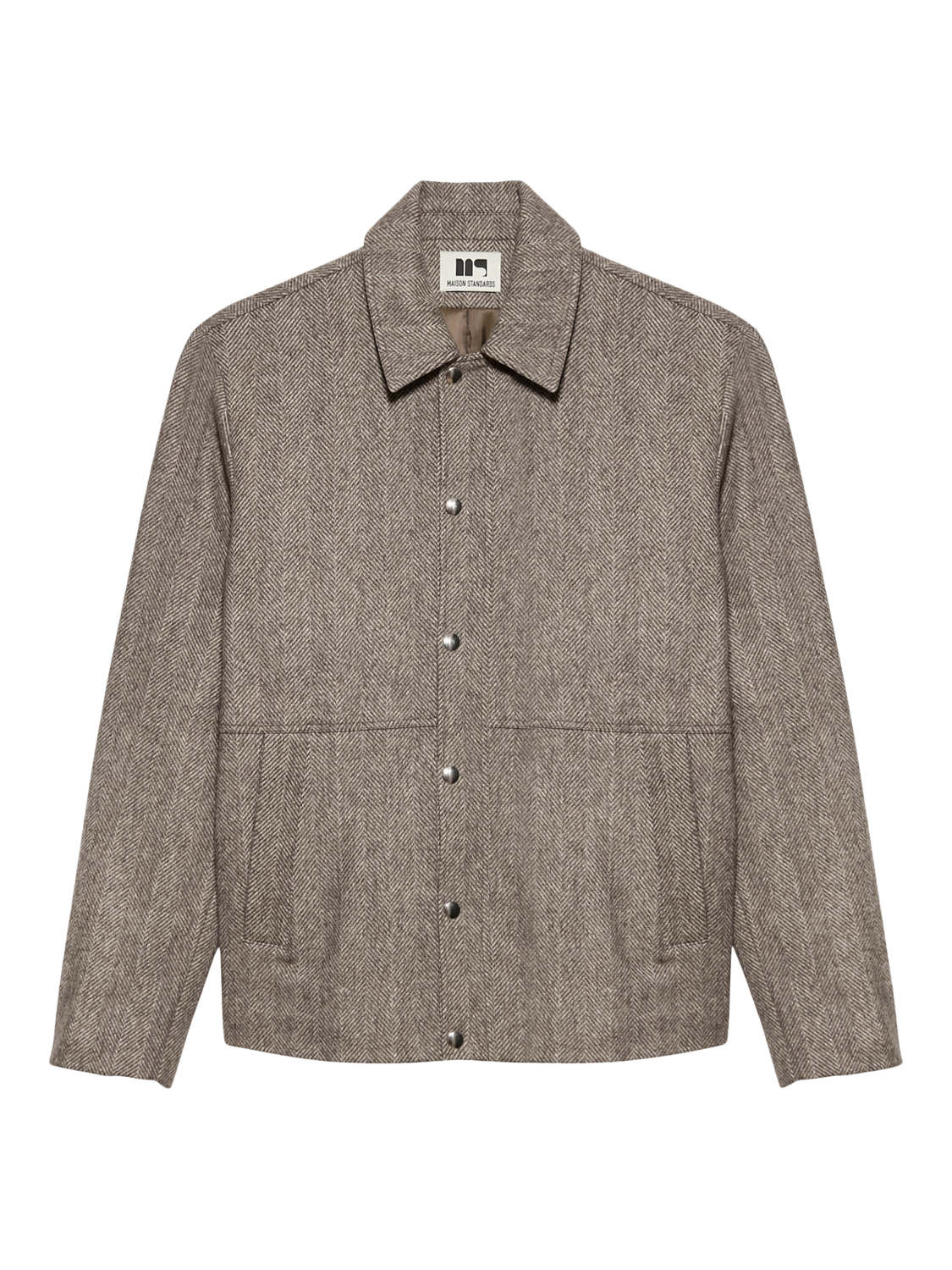 This versatile wool jacket suits any gender with a straight fit and classic collar, ensuring timeless urban style. Ideal for winter warmth with its padded design.