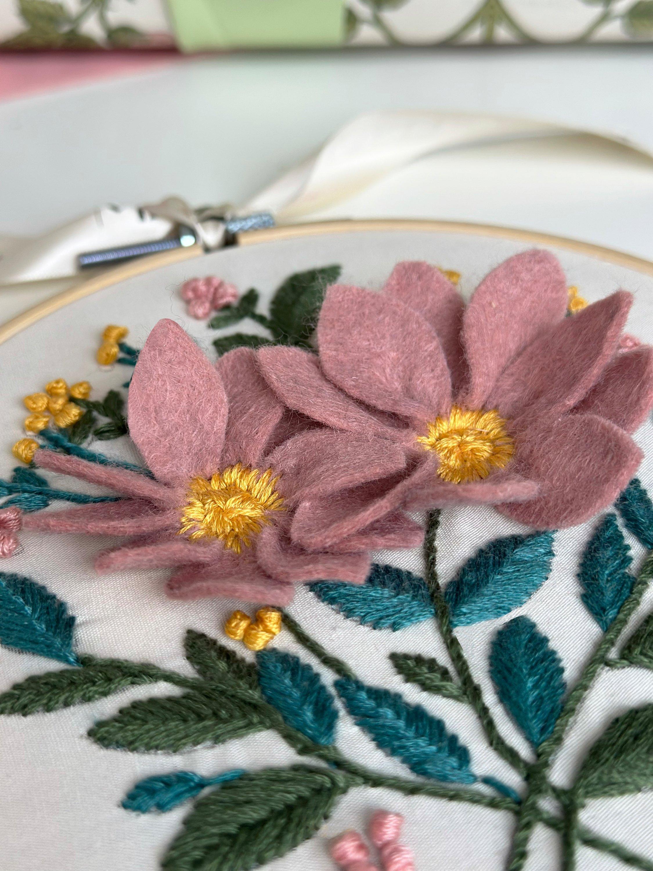 The embroidery hoop is made with high-quality materials, ensuring durability and longevity. The felt petals are soft to the touch and maintain their vibrant hue over time.