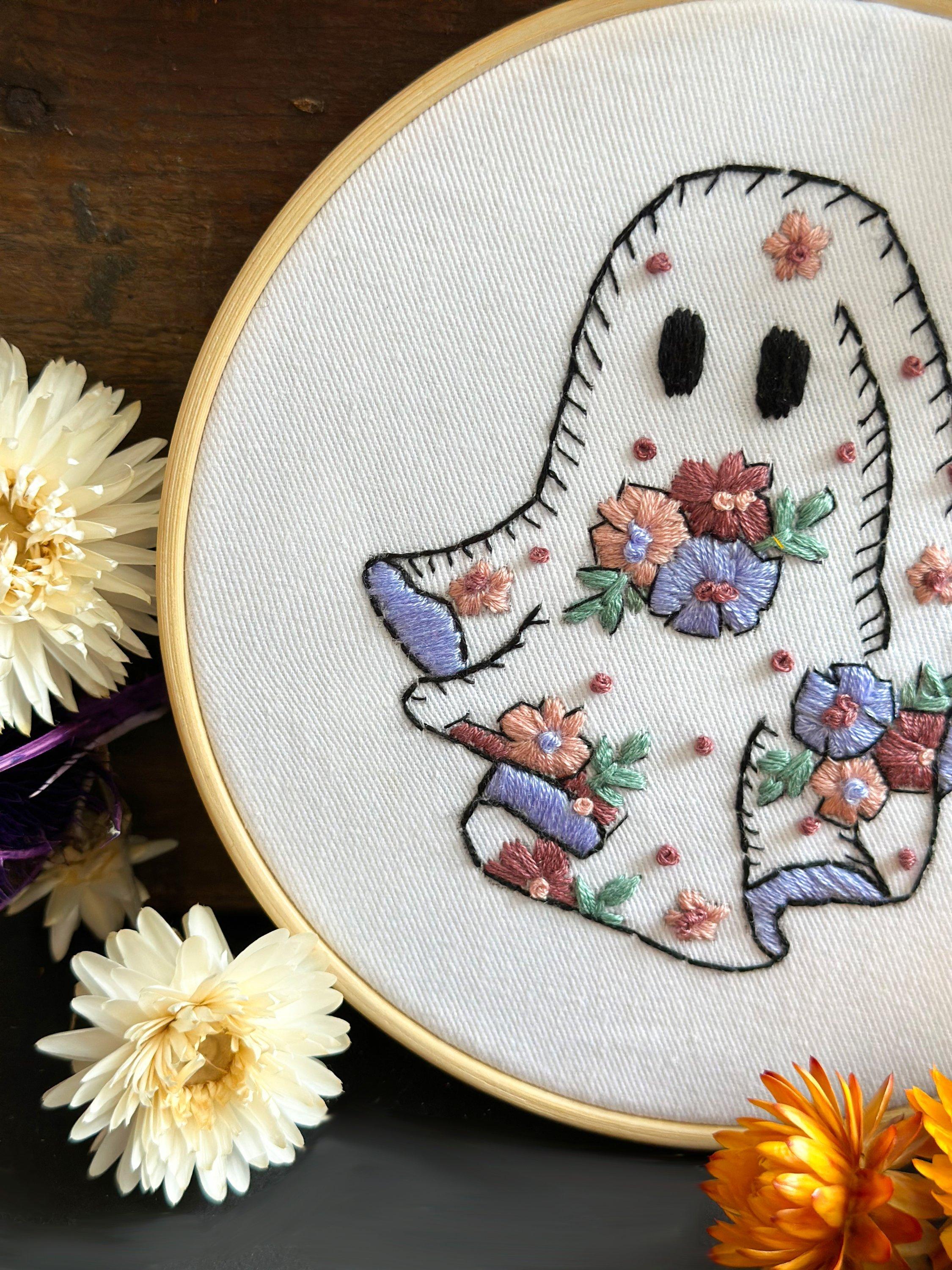 Embrace the magic of autumn with the Floral Ghost embroidery kit. This whimsical ghost, adorned with vibrant floral designs, brings warmth and charm to your décor. Perfect for cosy evenings, the kit includes a 6-inch hoop and simple stitches, making it ideal for both beginners and experienced crafters.Enjoy the process of creating a delightful centrepiece for your home. Once completed, your floral ghost will add playful elegance to any space, whether adorning your wall or given as a thoughtful gift.