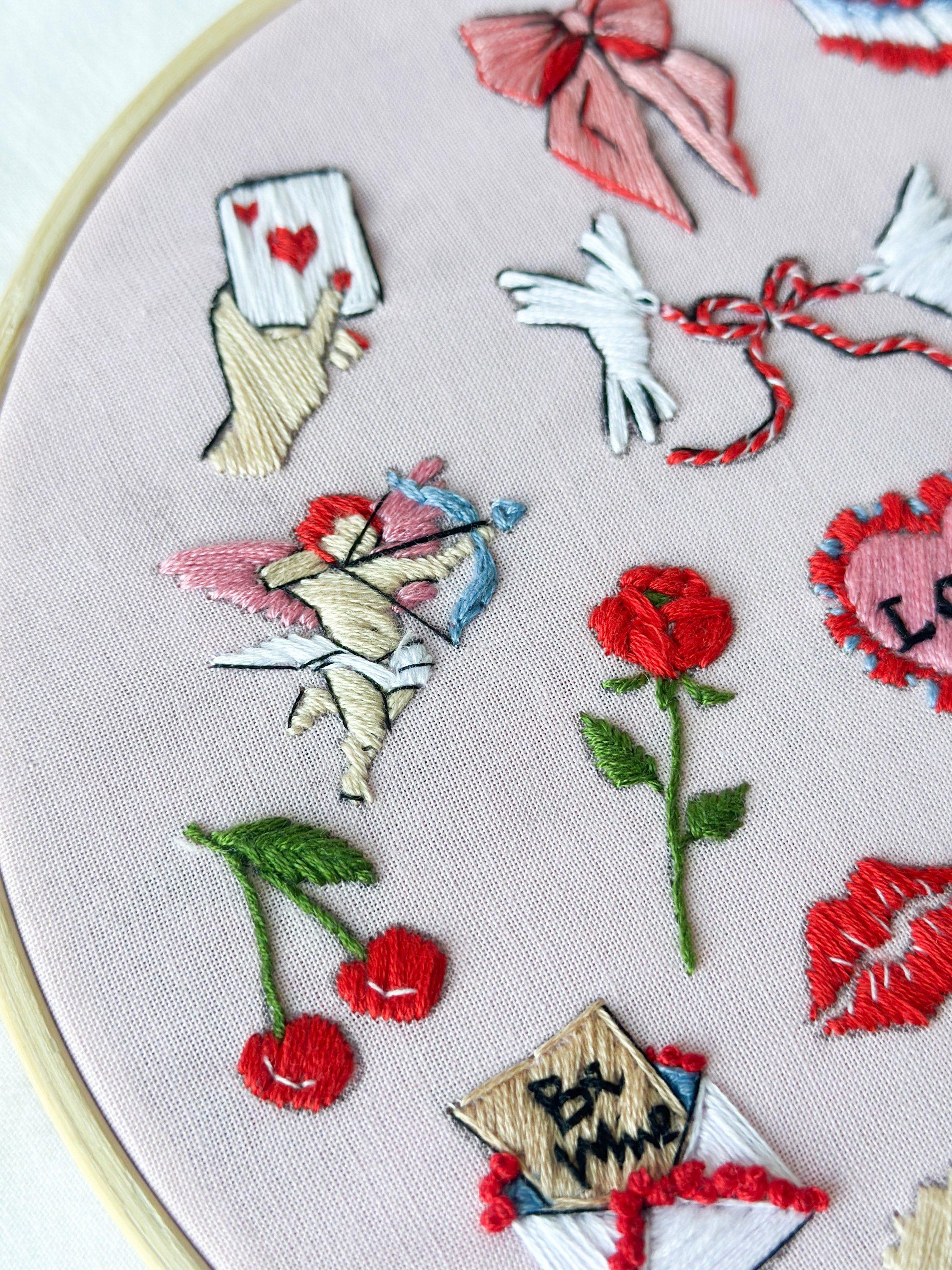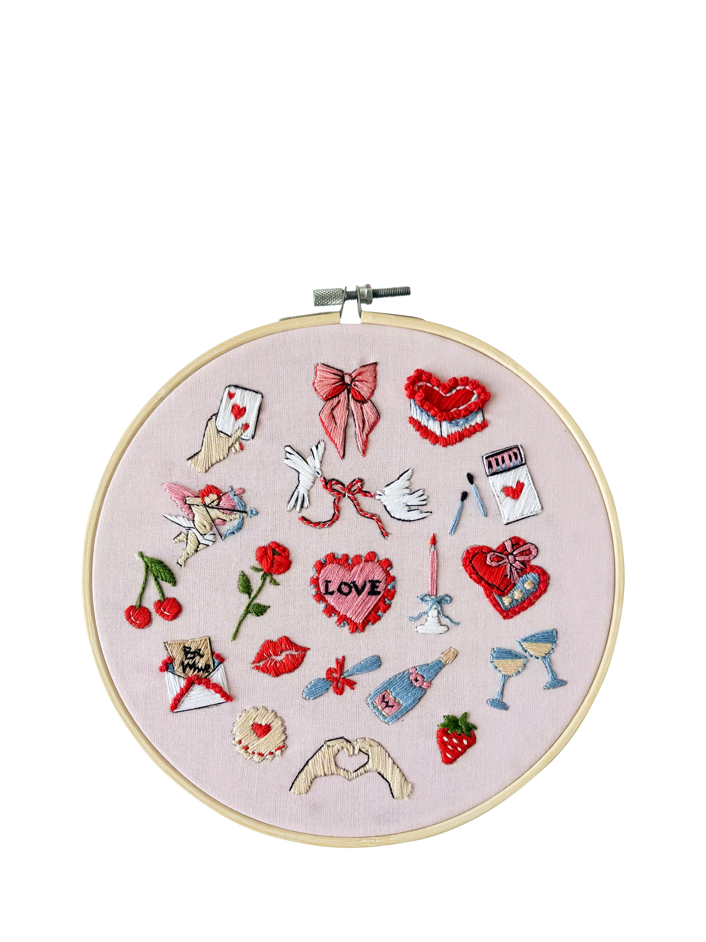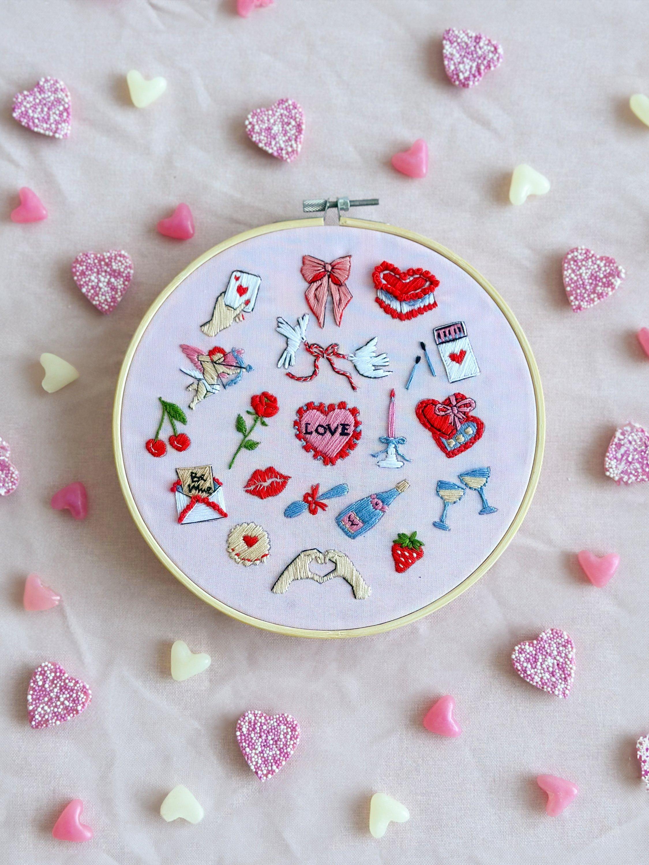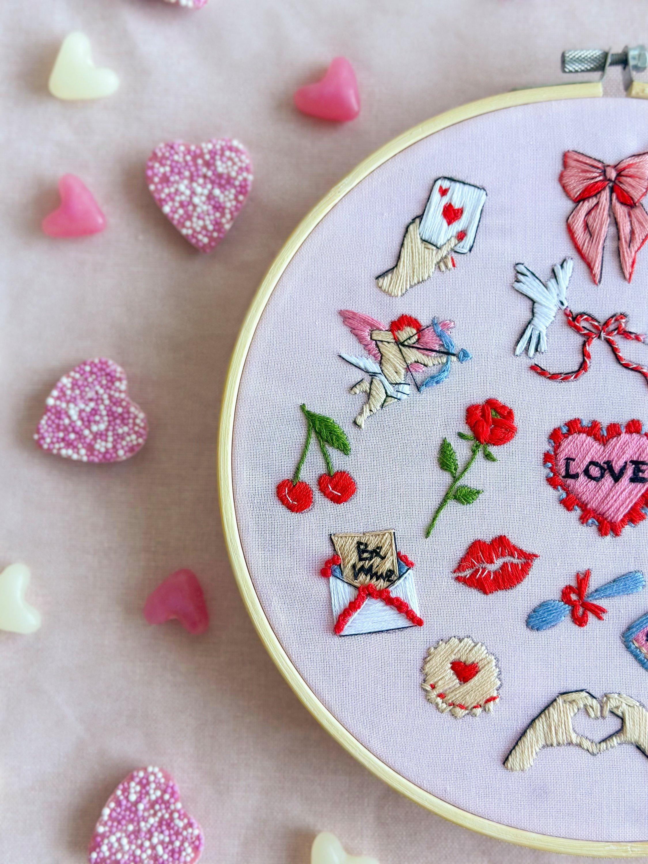 Craft your own keepsake of affection with this romantic 8-inch embroidery sampler, exquisitely designed to capture the essence of timeless romance. Inspired by the beautiful tradition of antique love tokens, this project becomes a treasured, personal gift for Valentine’s Day, a cherished anniversary, or a unique wedding present.