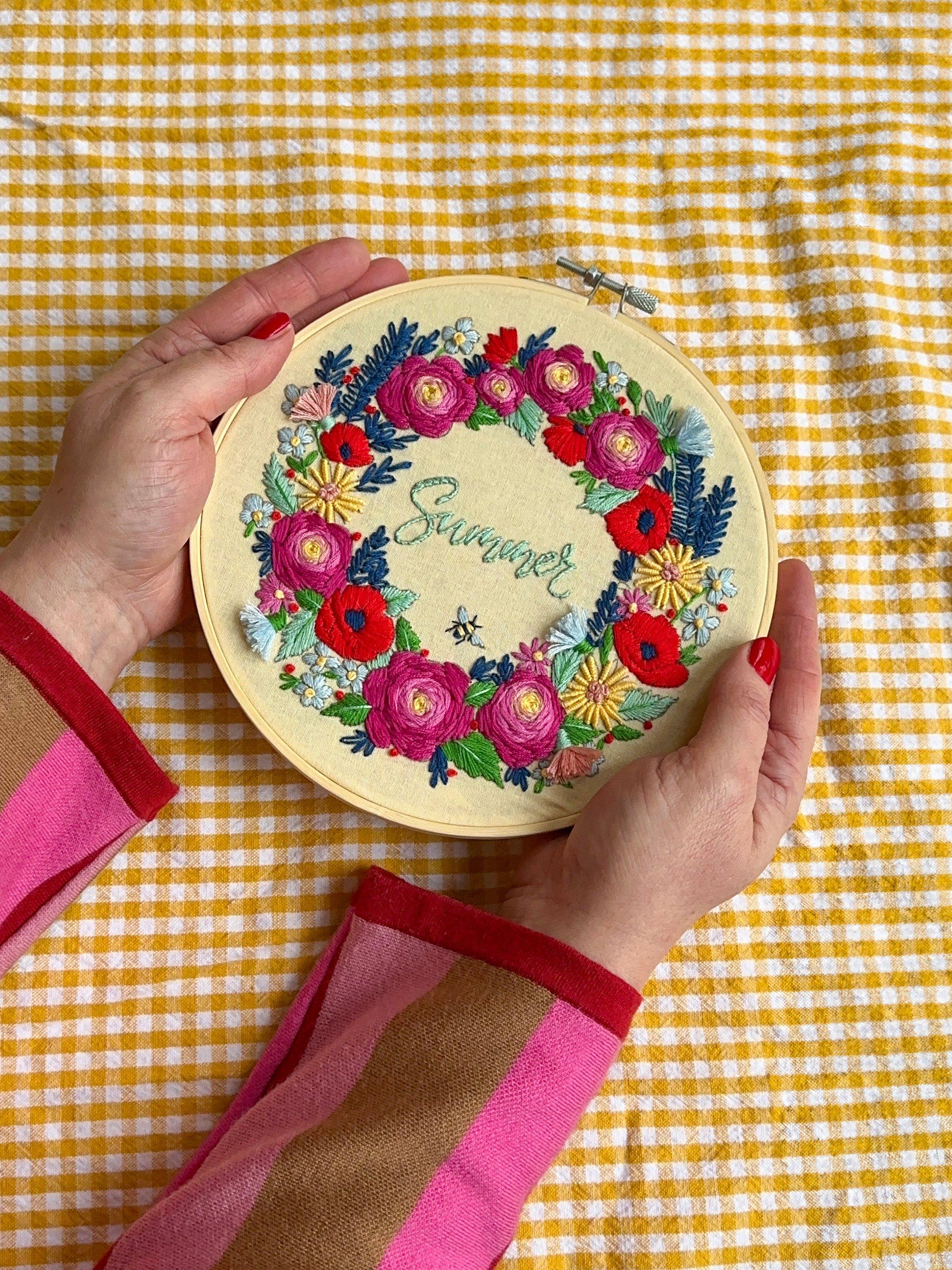 The Summer Floral embroidery is a love song to those long, golden days, brimming with nature's joyful abundance and brought to life with every stitch.