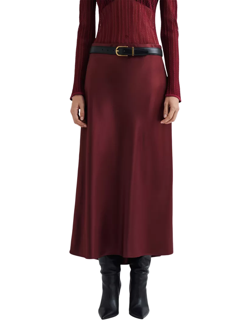 Chic and versatile, the Aubree Satin Skirt is the quintessential piece for your smart-casual and weekend looks. Crafted with a lustrous blend of fabrics, it offers a smooth silhouette for timeless elegance.