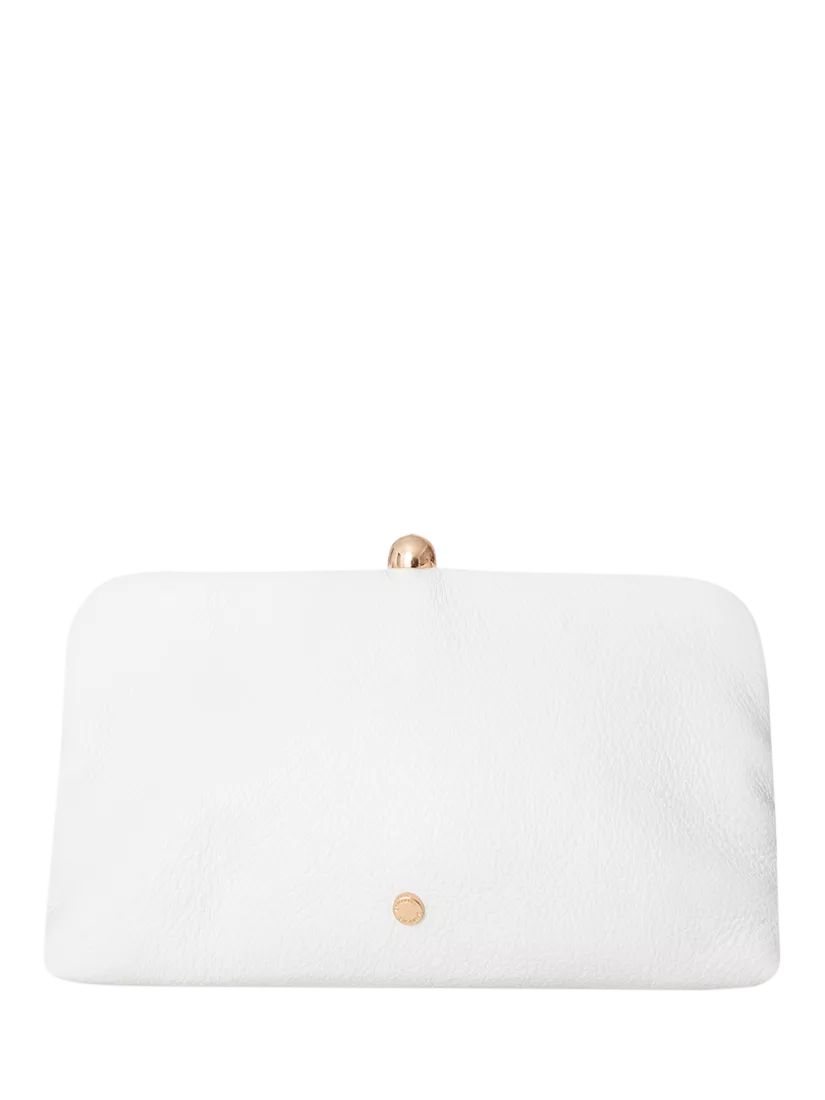 The perfect clutch for the bride! The bag is made of leather and with gold details, wear it as a clutch or with a gold chain.