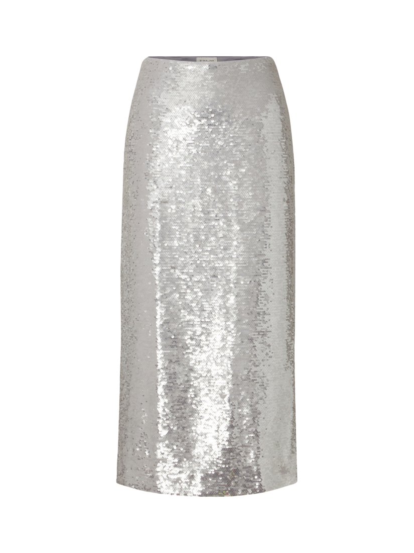 Dazzle in the Clarisse Maxi Skirt, featuring a stunning sequin design. Perfect for evening wear, its straight fit and side slit enhance elegance and movement.
