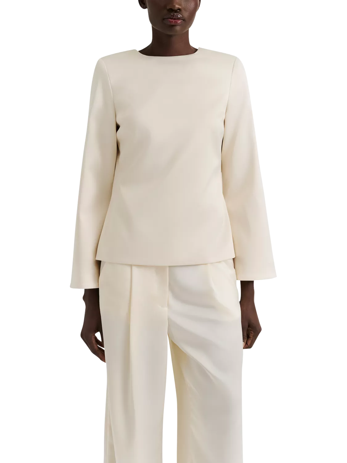 A blouse by Malina. Featuring a round neck and long sleeves, it comes in a mix-and-match ready plain colour. Effortless style for daily dressing.