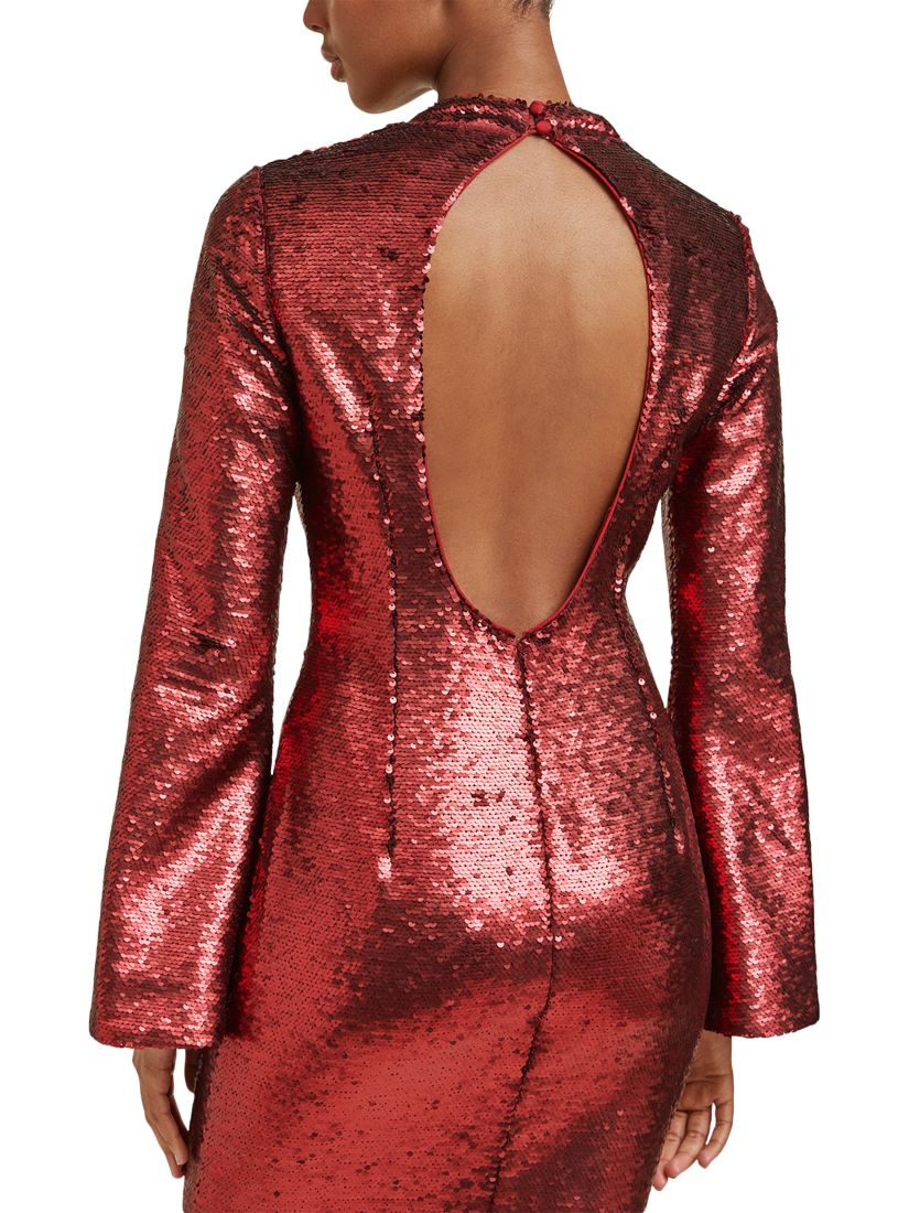 Captivating and elegant, this Liva Sequin Dress is perfect for a glamorous evening. A long sleeve midi dress with sequin design, hidden zipper and cut out detail in the back. It has a figure-hugging fit with dazzling sequins to make you stand out.