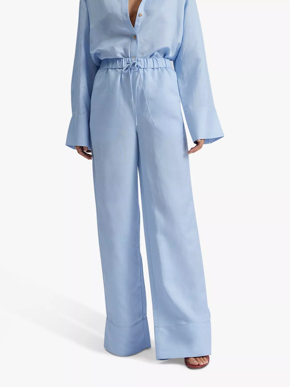 MalinaMaisie Linen Blend Wide Trousers, Pastel Blue