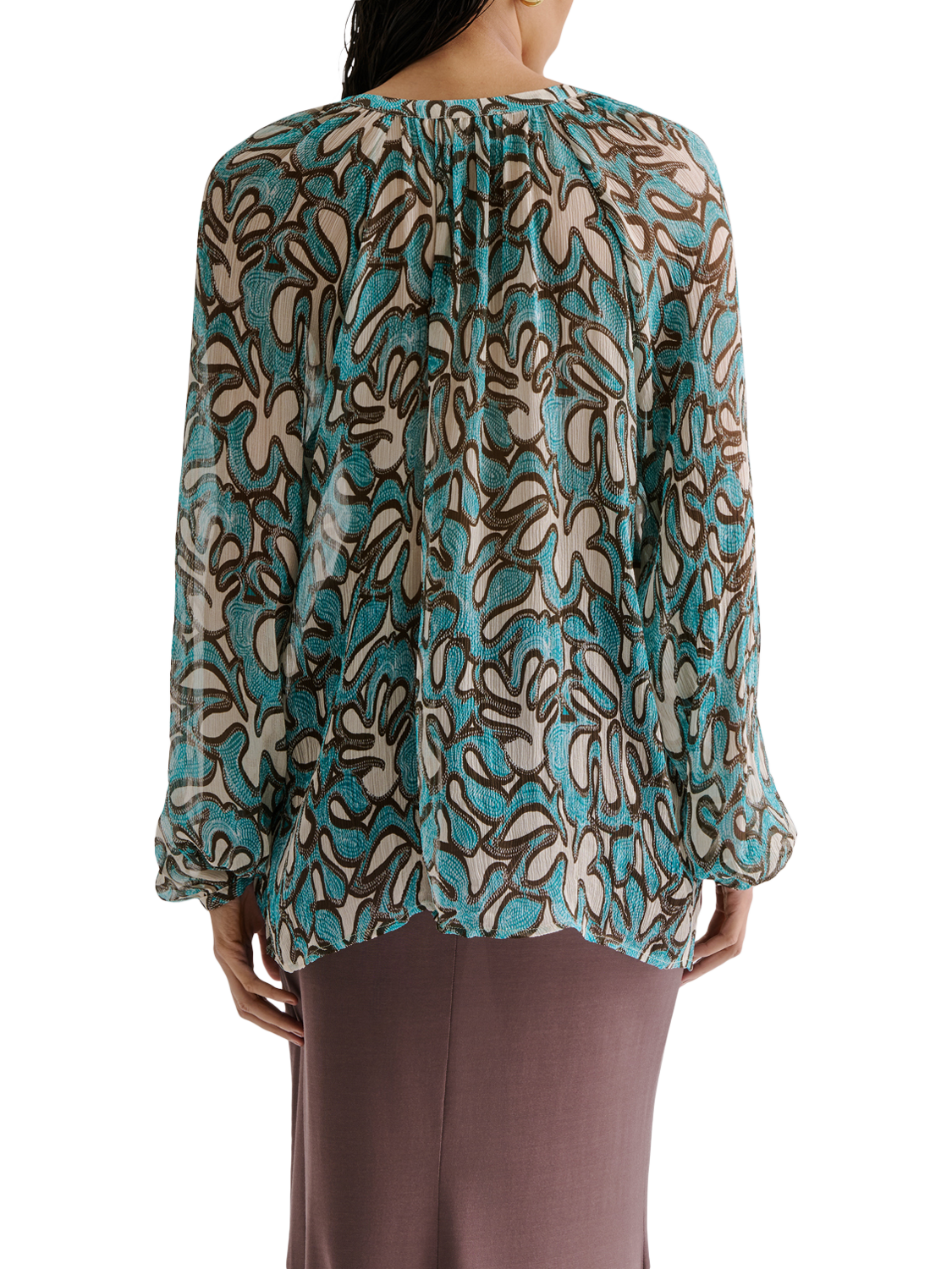Malina’s silk blouse makes a statement from sunrise to sunset. Crafted with an abstract pattern and elegant V-neck, its soft drape and imaginative details ensure your day feels extraordinary, whether you’re out exploring or embracing a moment of stillness.