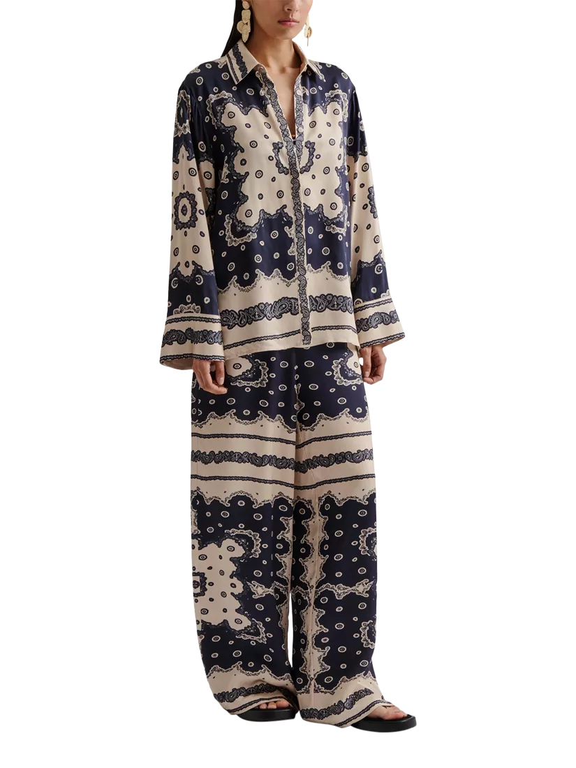 Stylish bandana print shirt with a wide fit and classic collar, ideal for casual outings and relaxed gatherings, crafted from lightweight materials for both comfort and style.