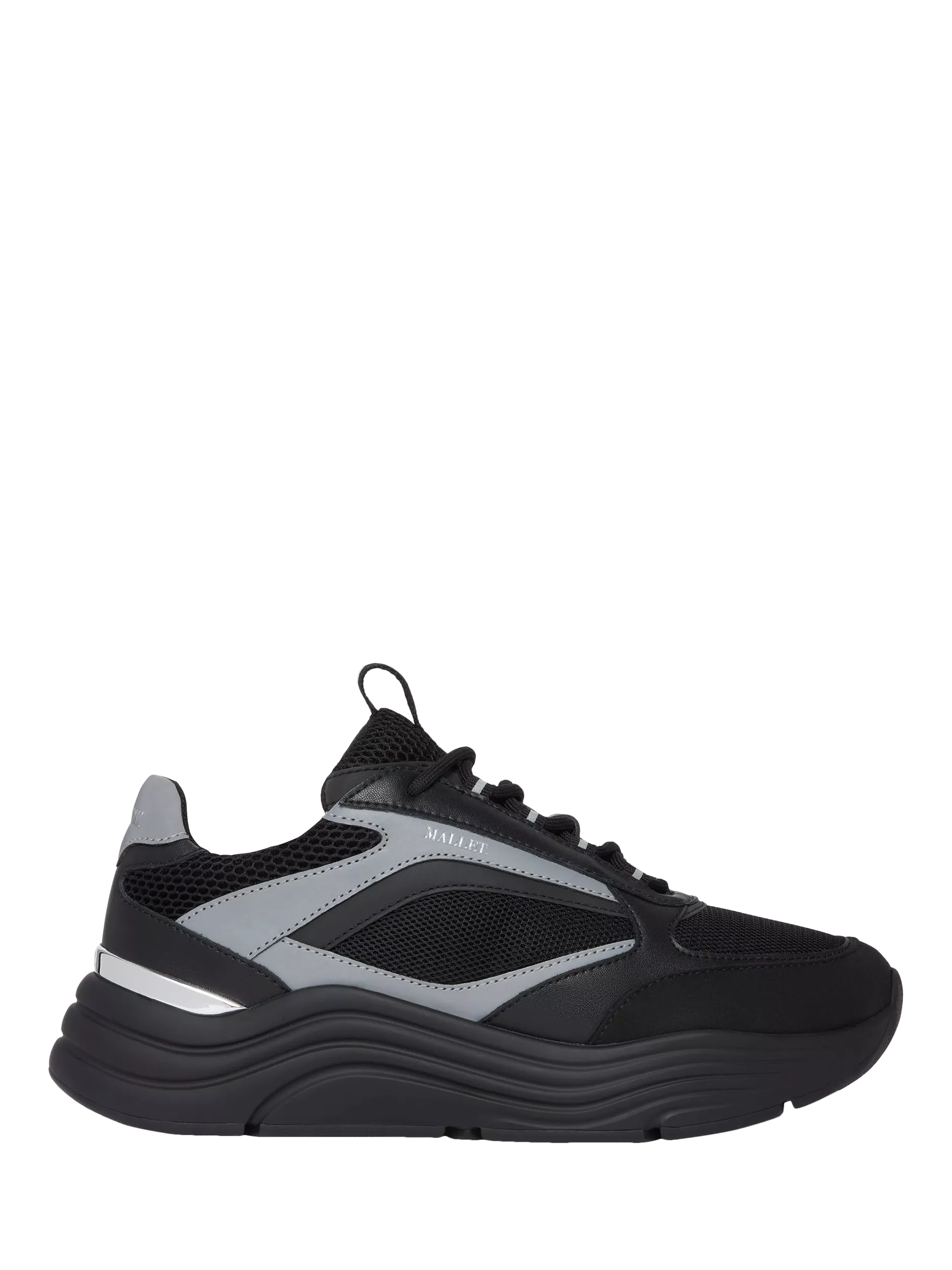 The design is enhanced with reflective grosgrain webbing on the tongue tab and eyelets. Foil branding and Mallet’s matching TPU heel clip adds a subtle yet stylish accent to the overall design.