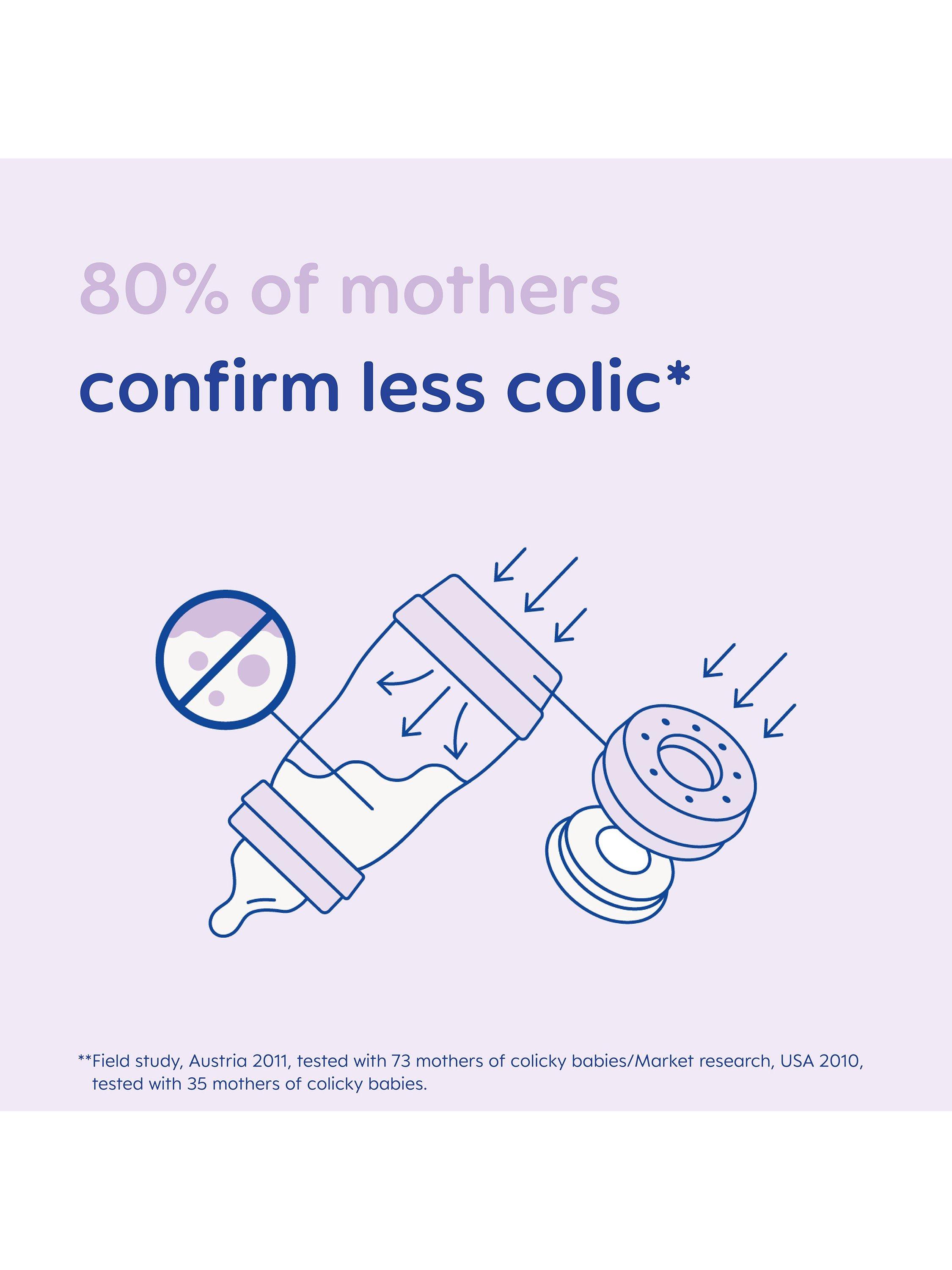 (*Market research 2009-2022, tested with 1,643 babies.) (**Consumer study USA 2010, tested with 131 mothers, Medical study of 73 infants with colic symptoms, Austria 2011)