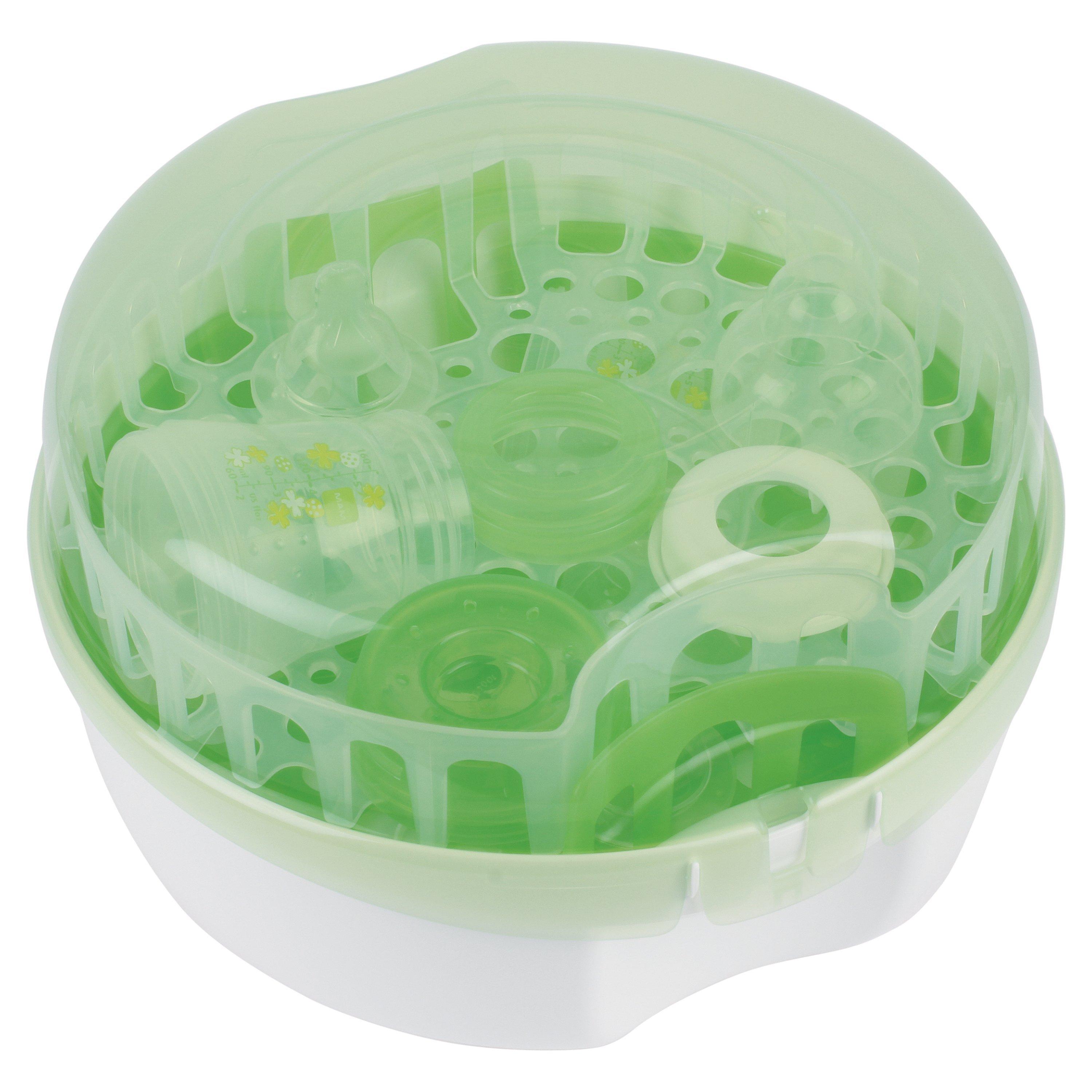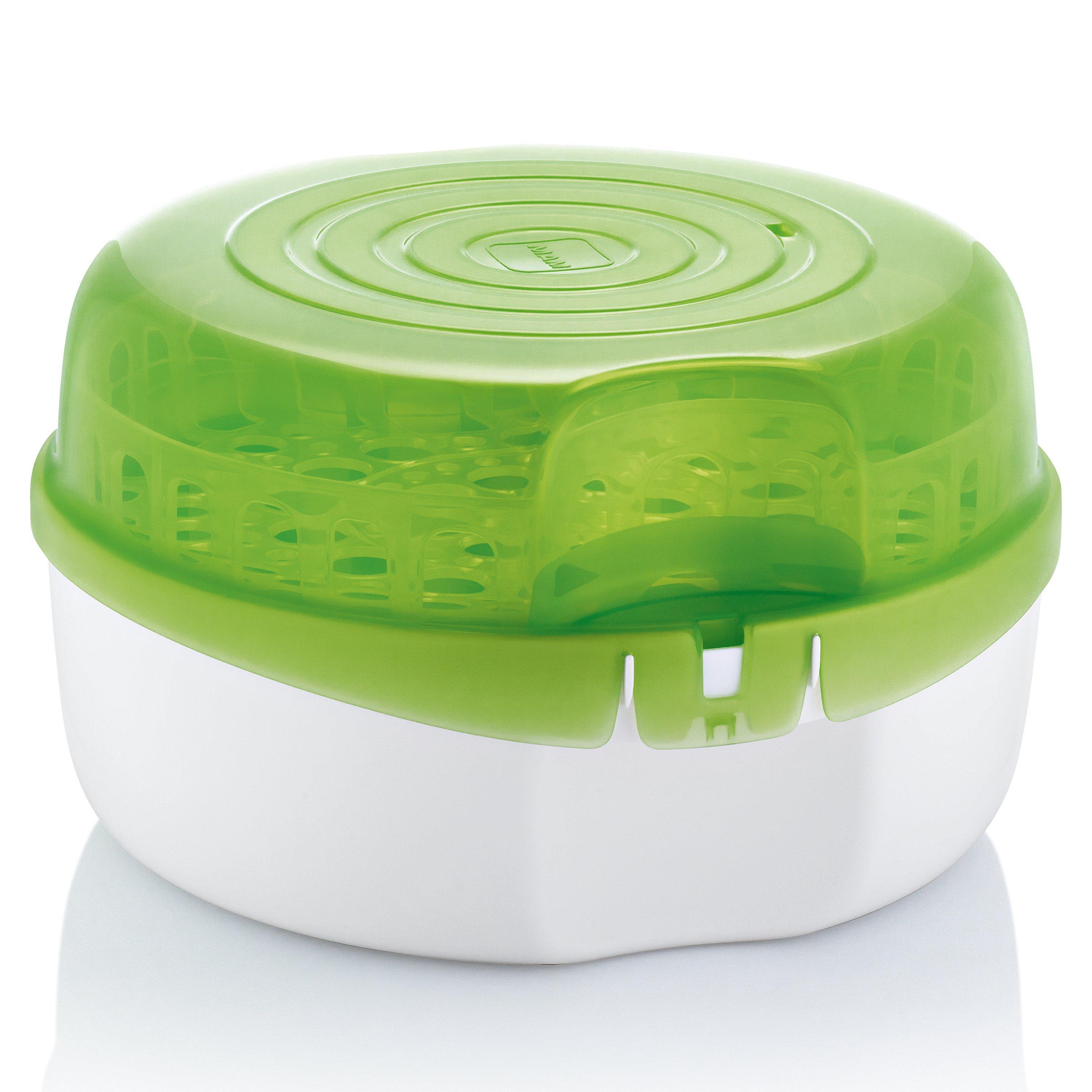 Suitable for the sterilisation of all MAM bottles, teats, and other baby products, the MAM Microwave Steam Steriliser not only ensures quick and safe sterilisation of warm and cold water at home, but is also ideal for use on the go thanks to its compact size and smart design.