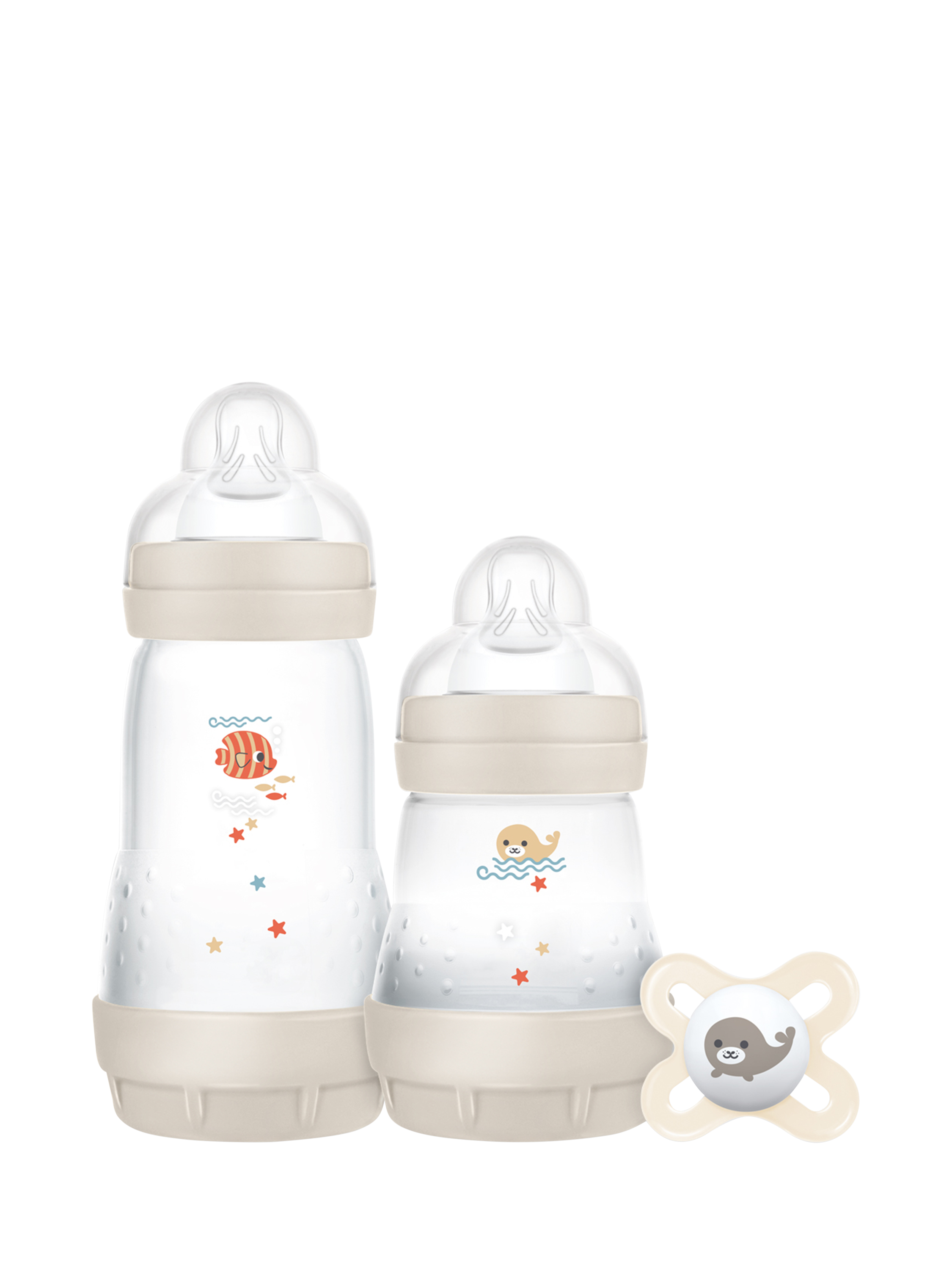 This Easy Start set includes 1 x 160ml bottle with slow flow teat, 1 x 260ml bottle with medium flow teat and 1 x 0+ original soother.