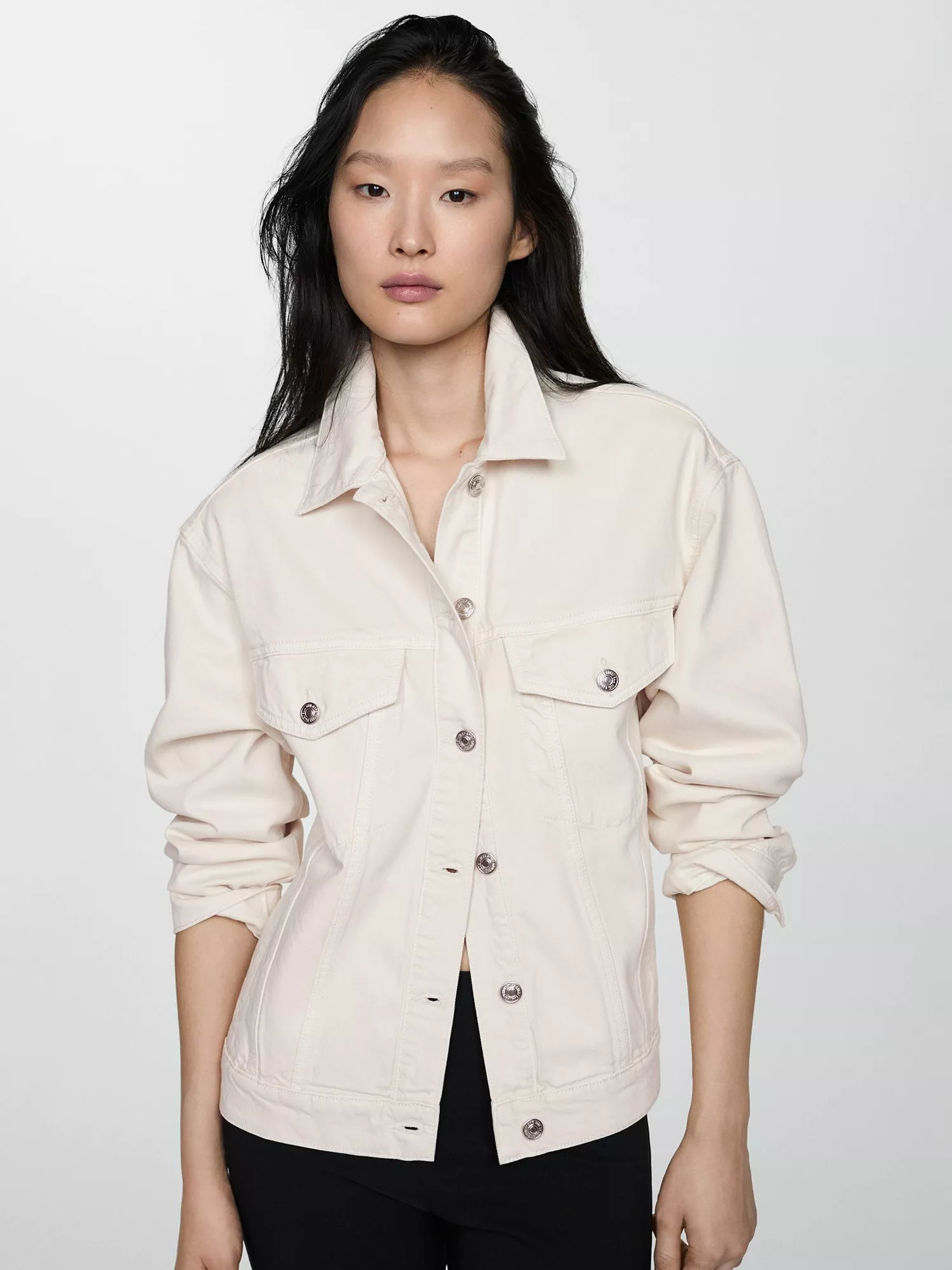 In a timeless style that goes with anything, this denim jacket by Mango sits at the hip for versatile coverage.