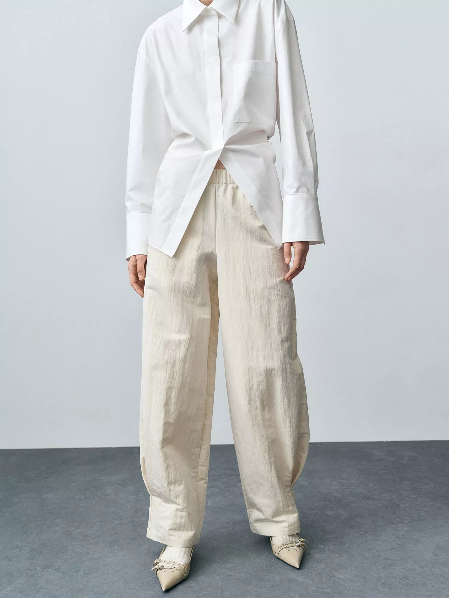 Casualwear made easy. This pair of trousers from Mango sit naturally on the hips and have a balloon leg fit. Made from a soft blend with an elasticated waist, they can be worn with patterns and prints thanks to their plain design.