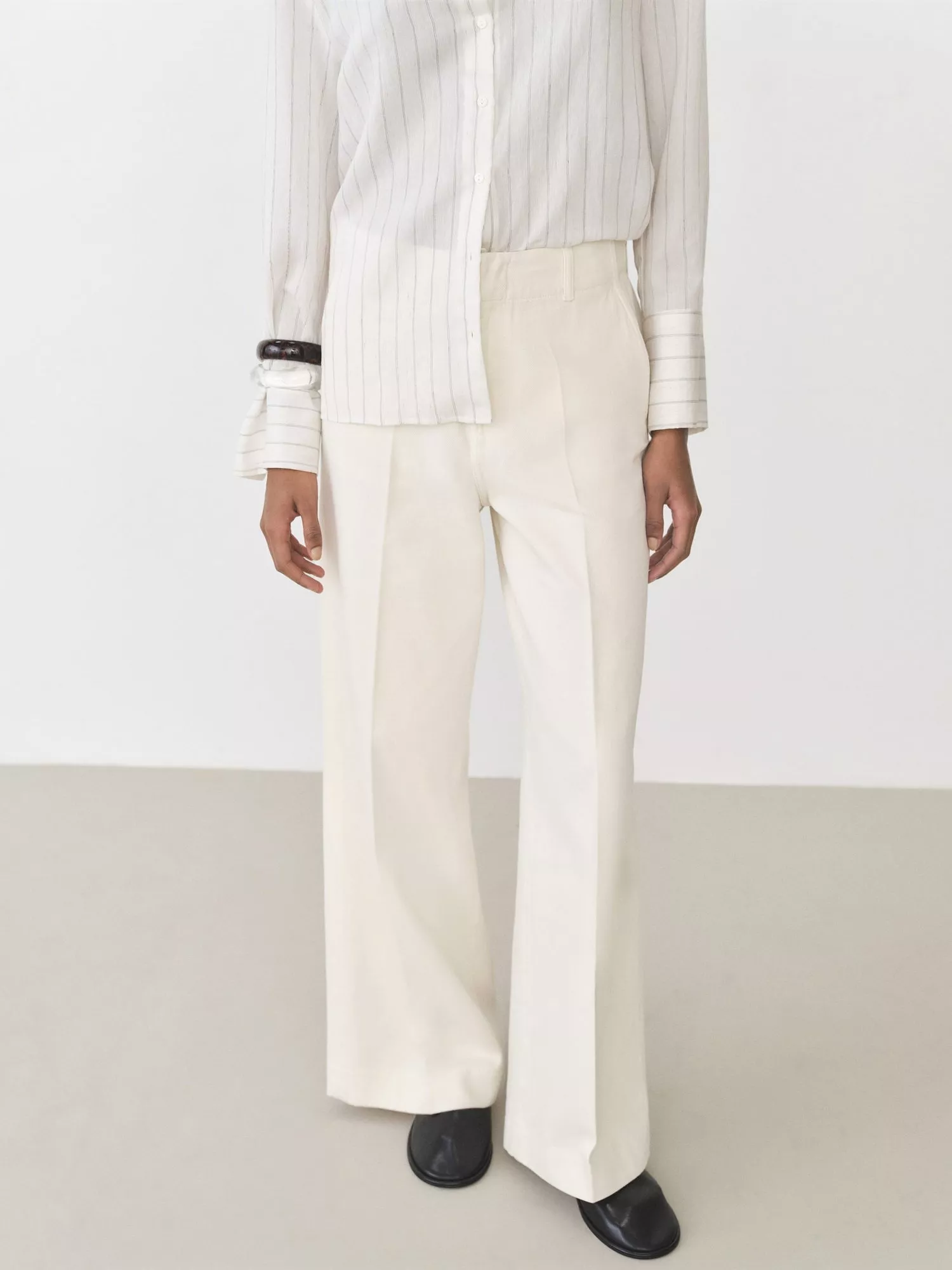 A pair of confident, exaggerated wide-leg trousers by Mango crafted from pure cotton. They are designed to sit high on the hips with a zip fly and a regular length.
