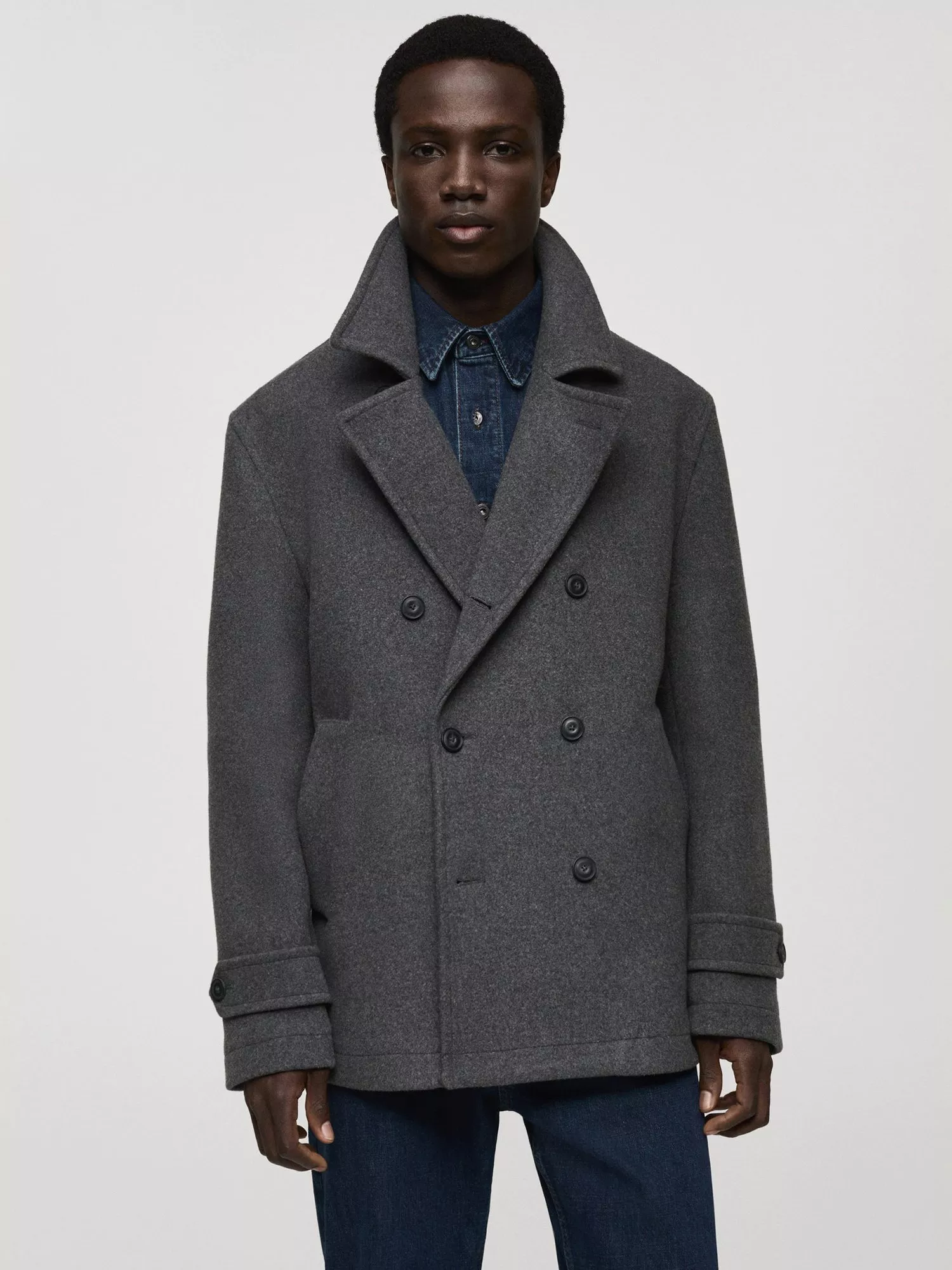 When temperatures begin to bite, turn to classic, fuss-free styles like this wrap peacoat from Mango.