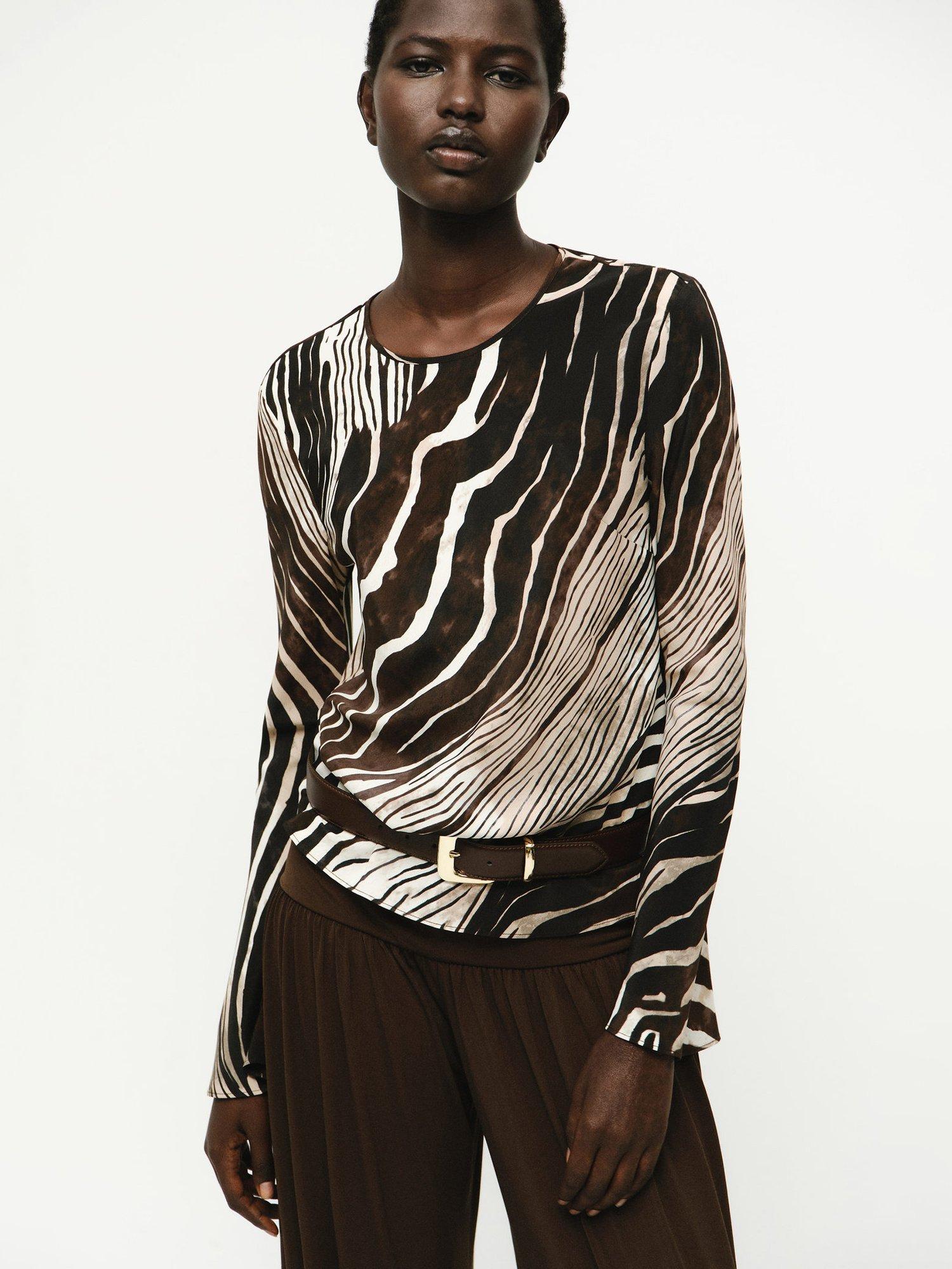 Brightening your day with an easy fit and vibrant zebra print, this blouse from Mango features a round neck, long sleeves and is ideal for relaxed daytime wear.