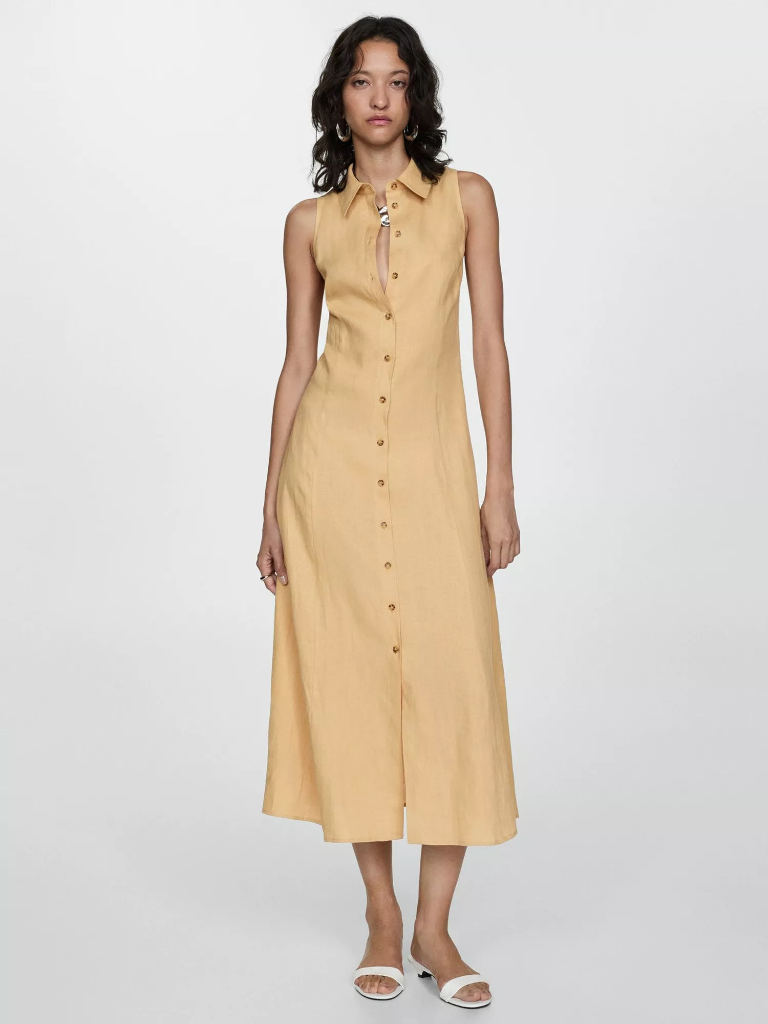 A classic style you can rely on again and again, this midi dress from Mango is whisked up from pure linen. Smartened with a collar neckline, this style is the epitome of sheer minimalism.