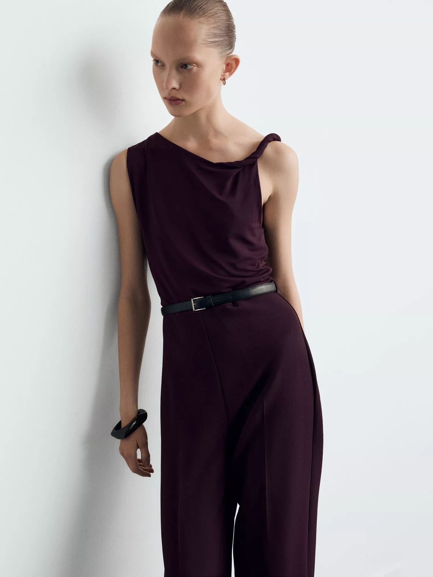 Defined with an asymmetric neckline, this sleeveless jumpsuit by Mangois whipped up from a lightweight fabric and belted to accentuate your profile.