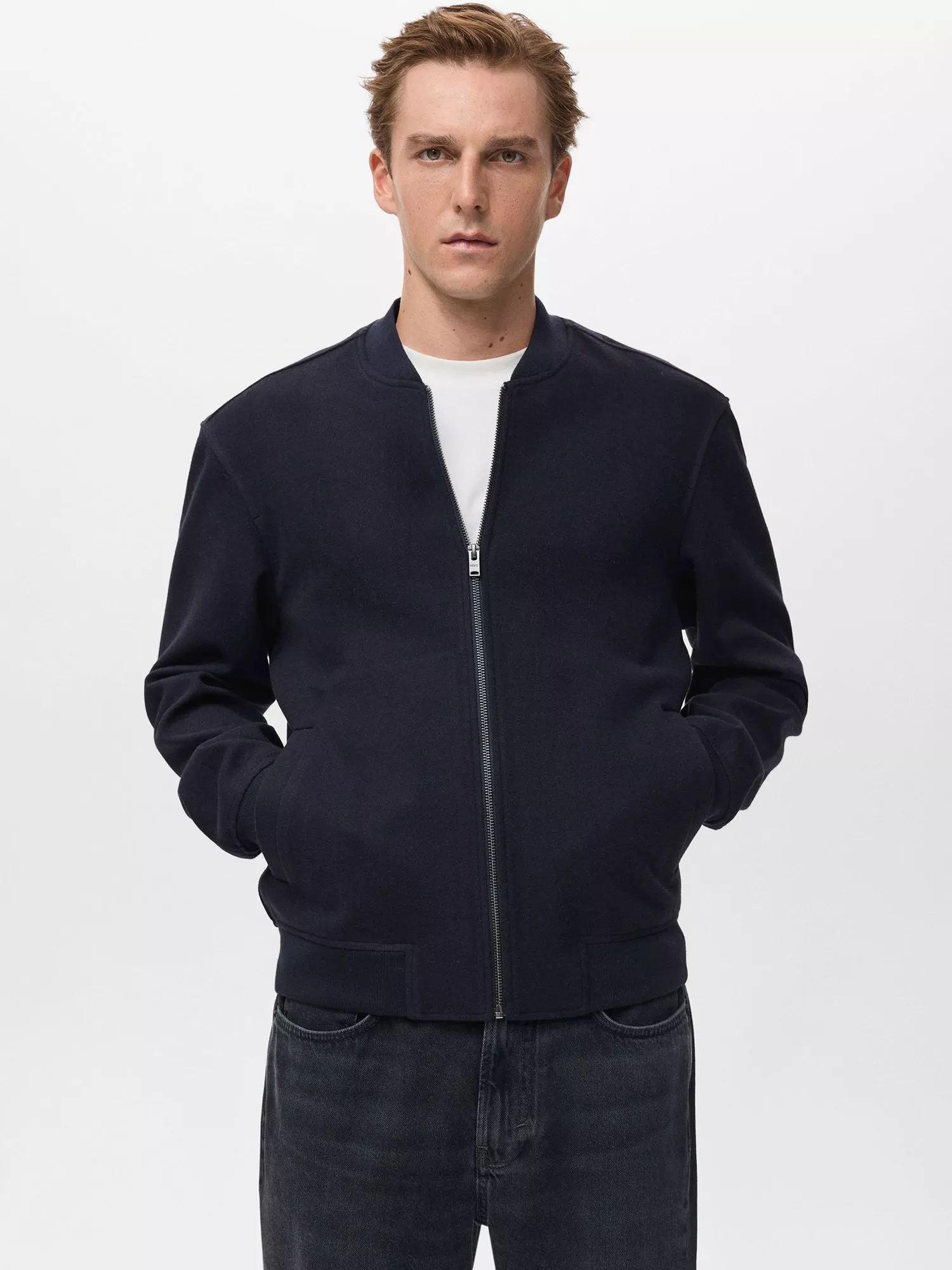 This zipped bomber pairs smart details with a comfortable regular fit. The stretch collar adds a refined touch, while pockets keep essentials close. Ideal for layering.