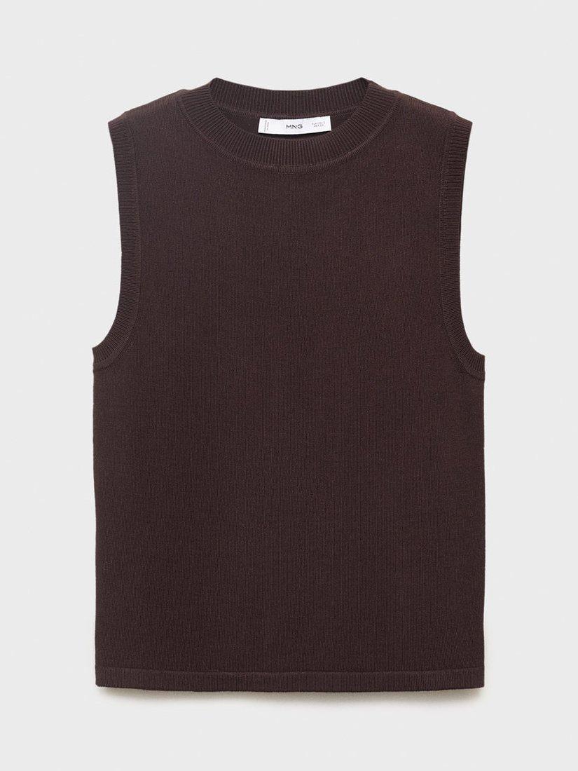 This knit top from Mango allows for endless styling opportunities. Accented with a high neckline and a sleeveless design, it is made from a light yet durable blended fabric and is an everyday wardrobe essential.