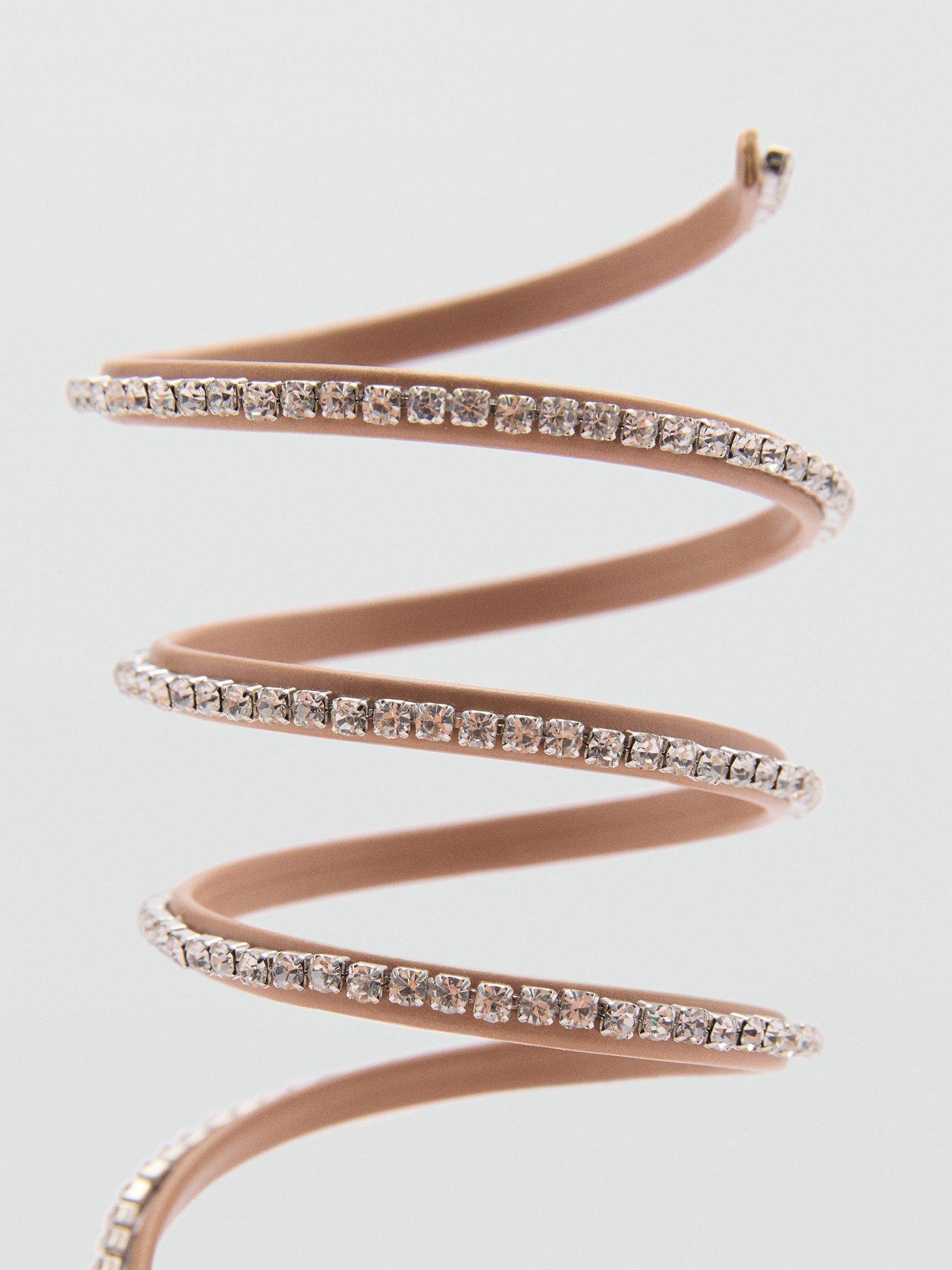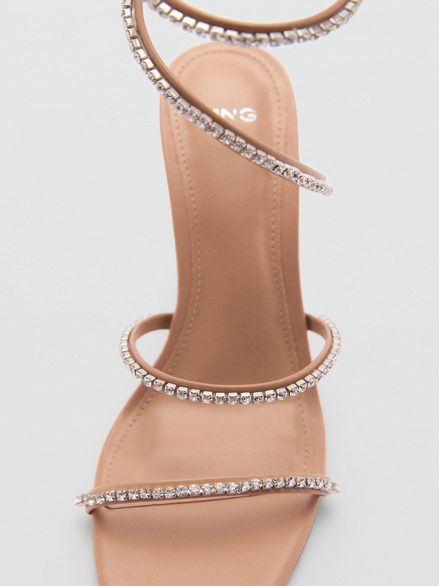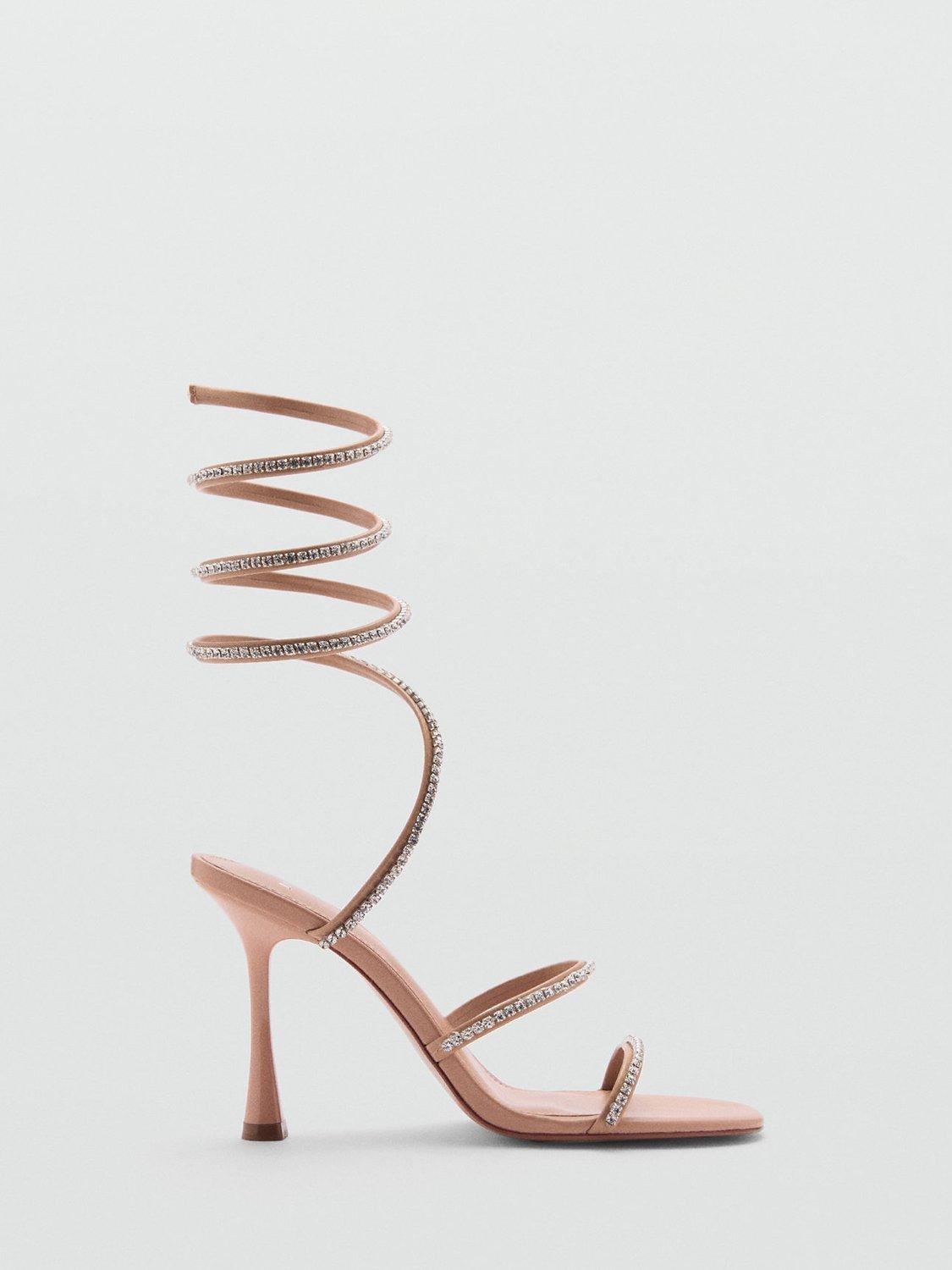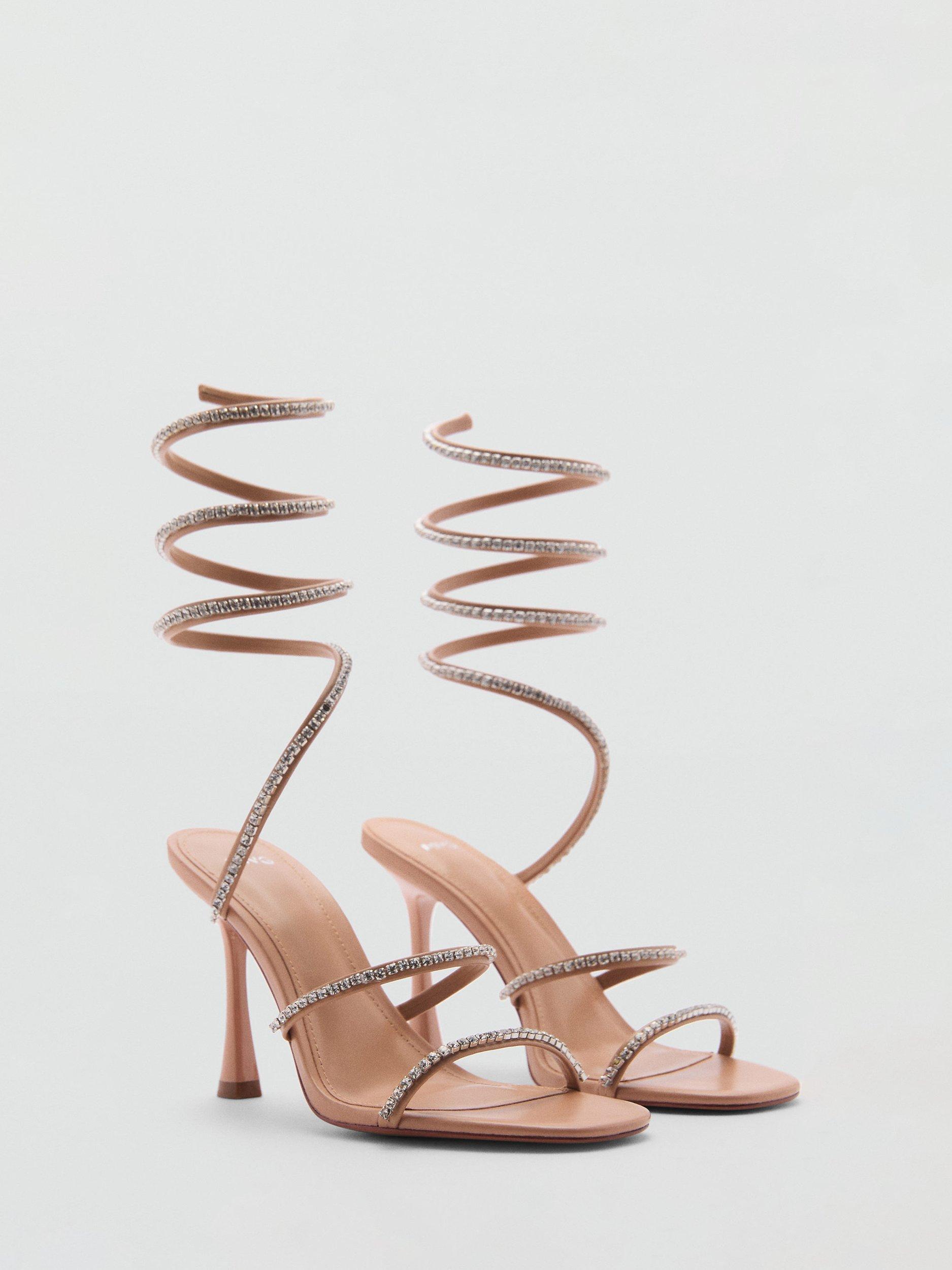 With embellished straps spiralling up the leg, this pair of heels from sit on a flared heel and are finished with a rounded square toe.