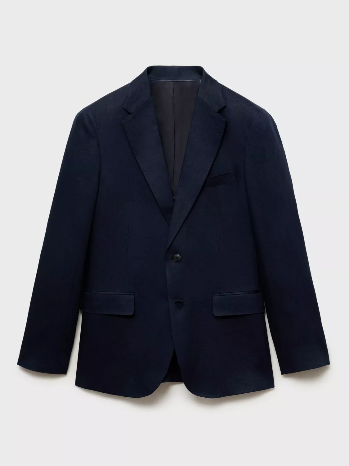 Crafted from 100% linen fabric for lightness and breathability, the Amalfi blazer from Mango has a slim fit, with notch lapels and a buttonhole. Inner-lined, it has a welt pocket on the chest, two front flap pockets ad inner pockets too.