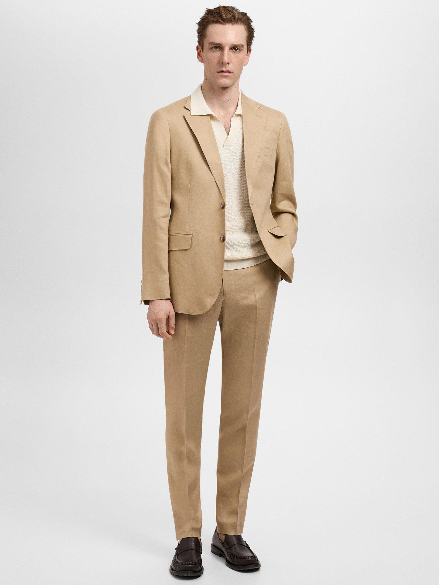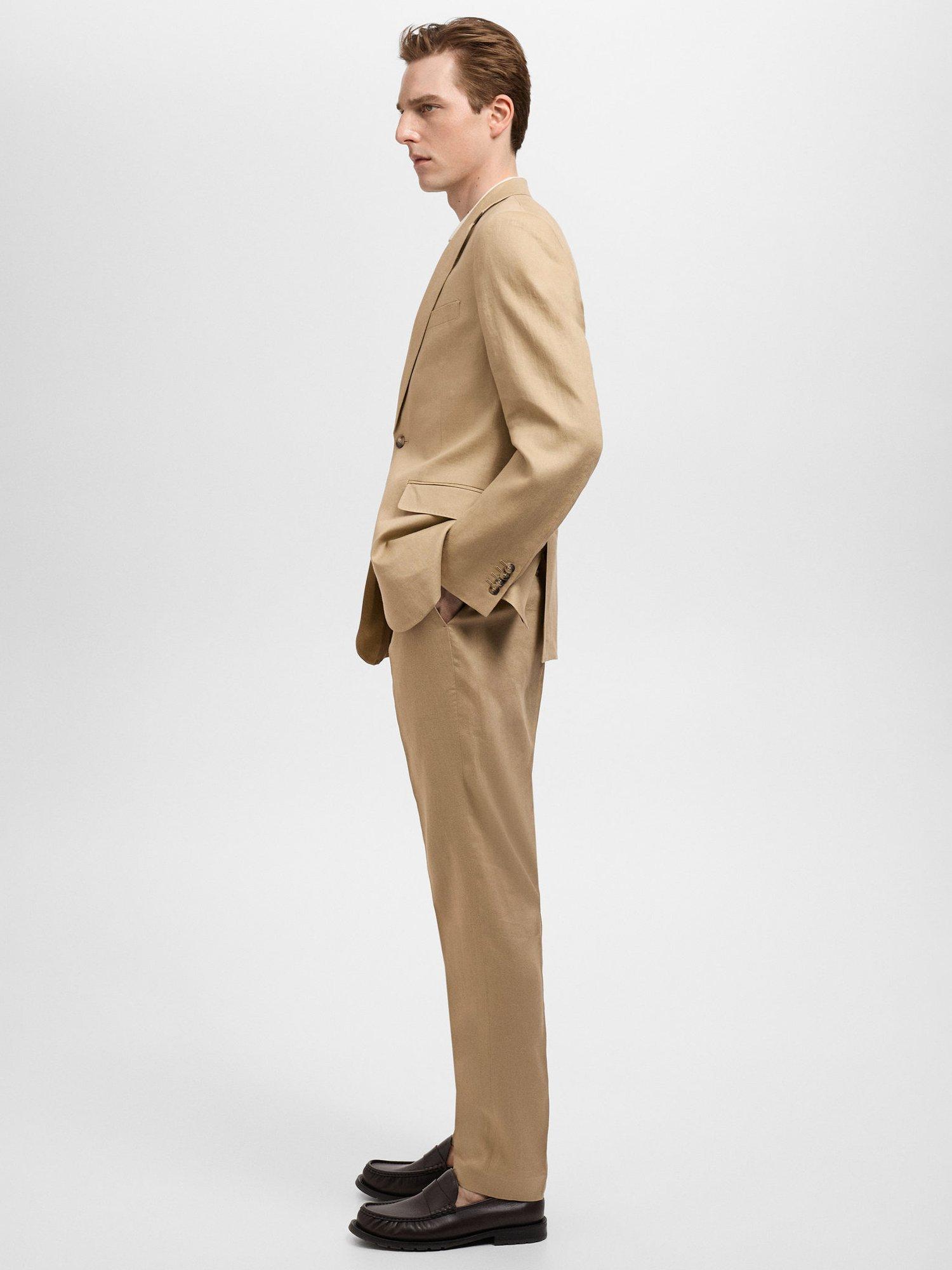 MangoAmalfi Linen Slim Trousers, Light Beige