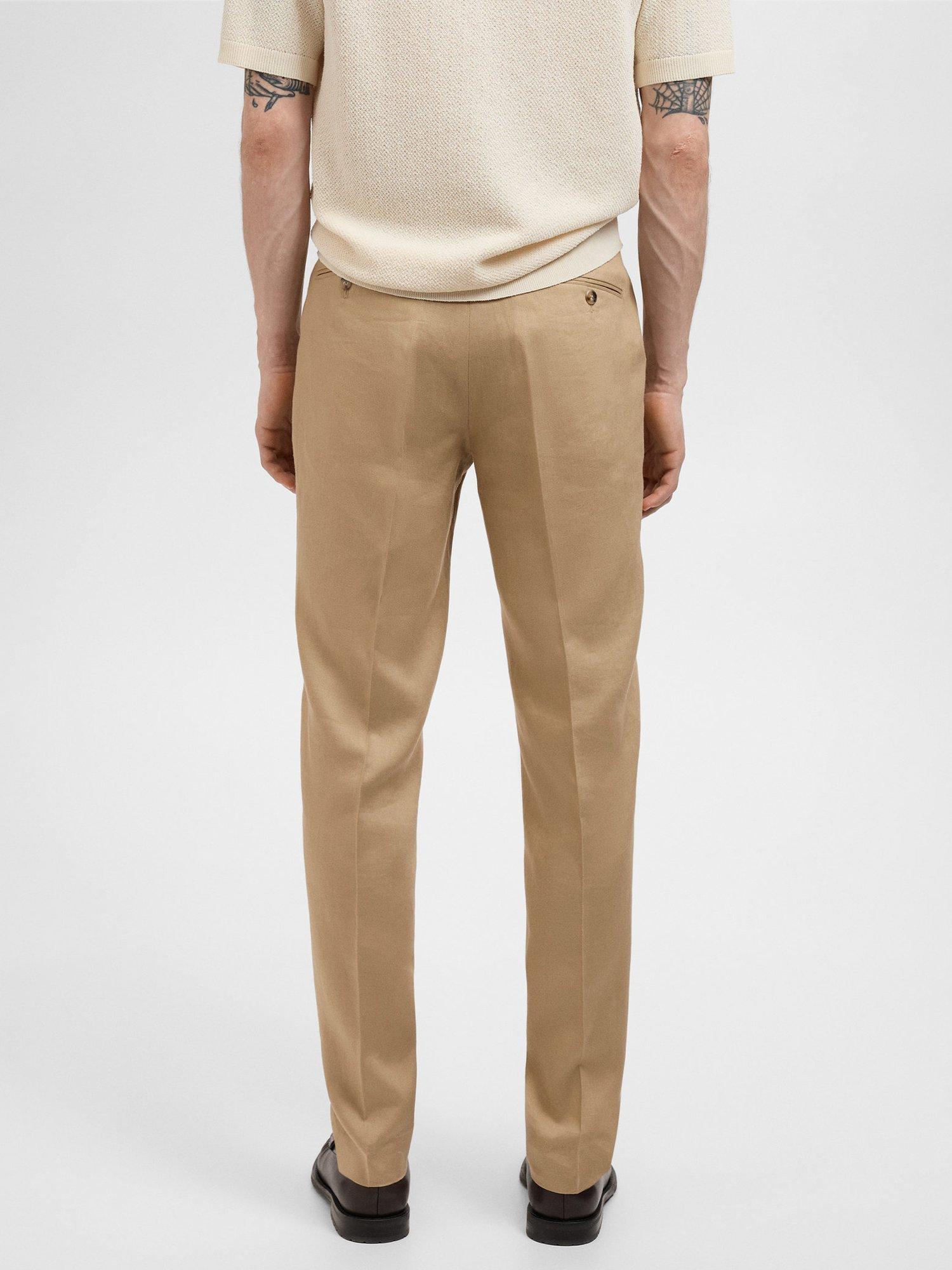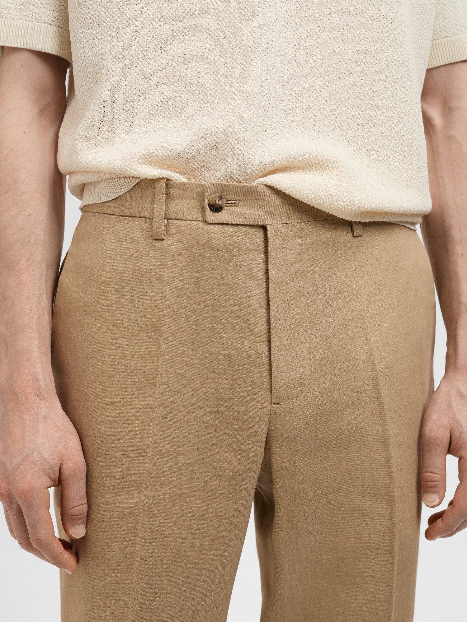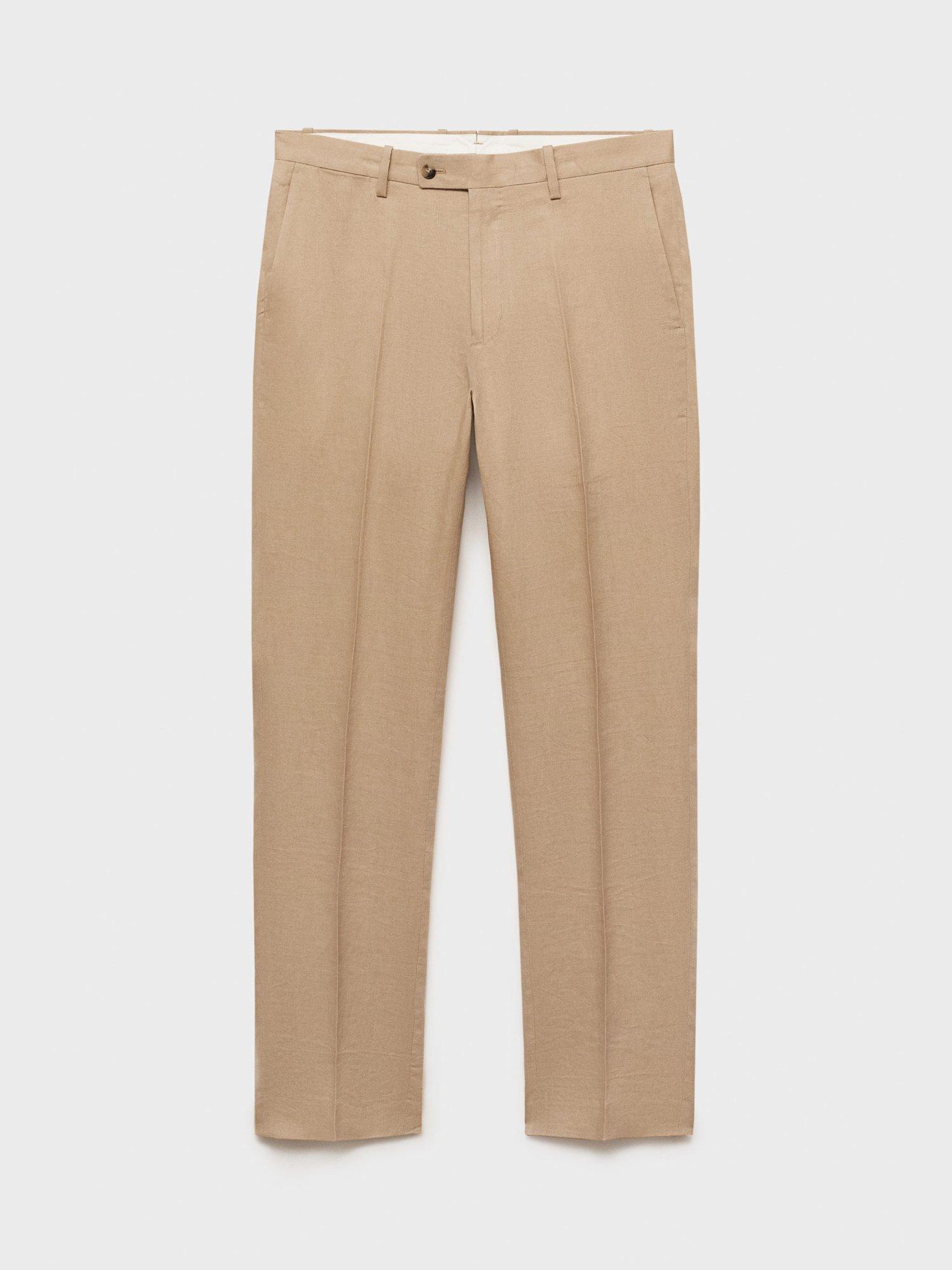 A masterclass in everyday tailoring, these slim fit trousers from Mango are fashioned from pure linen for light and breathable wear. Features include belt loops, side and welt pockets, a double-breasted and zipped front closure and an ironed stripe detail at the front and back.